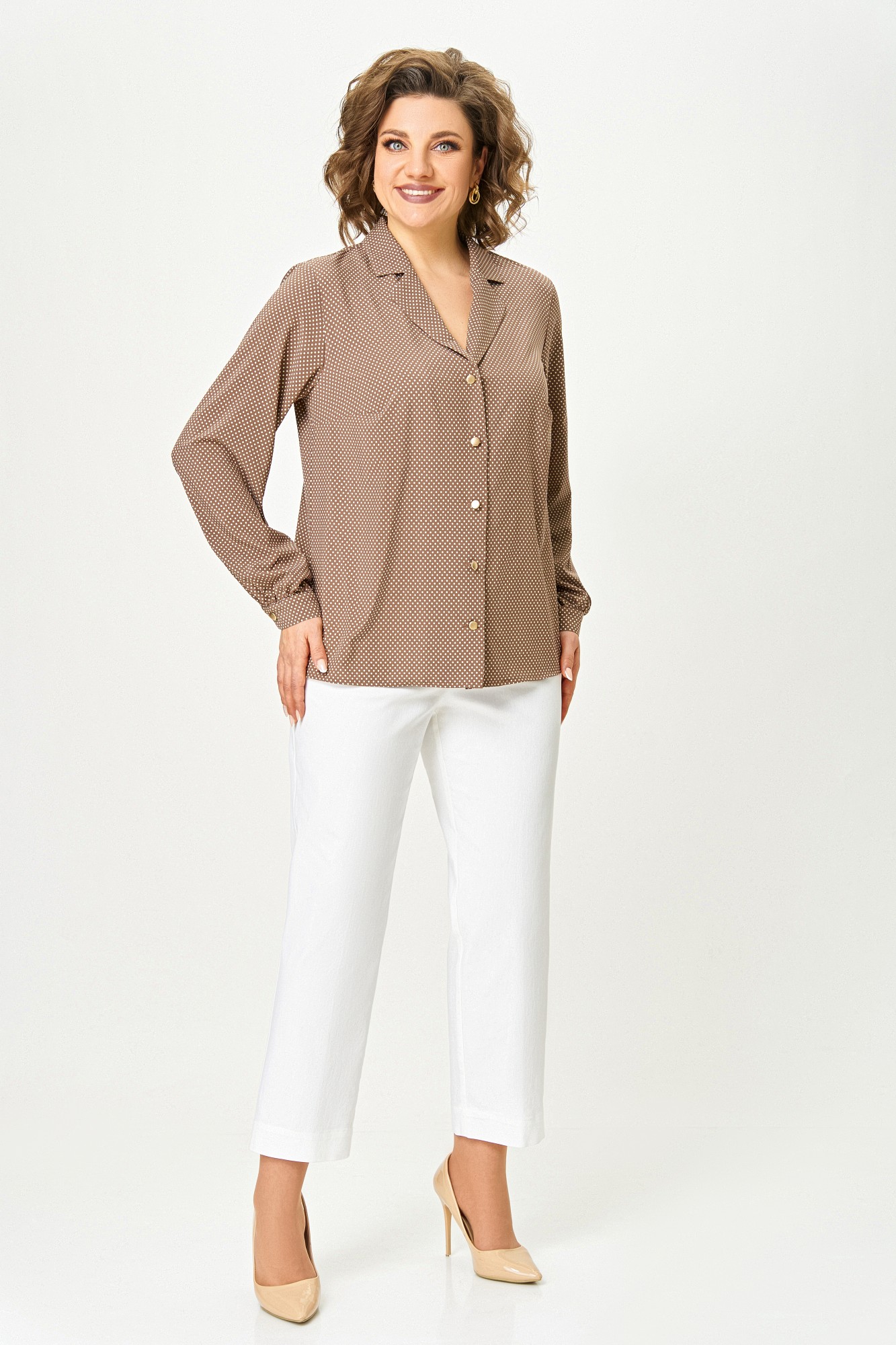 Блузка Swallow 842 Коричнево-бежевый, мелкий горошек