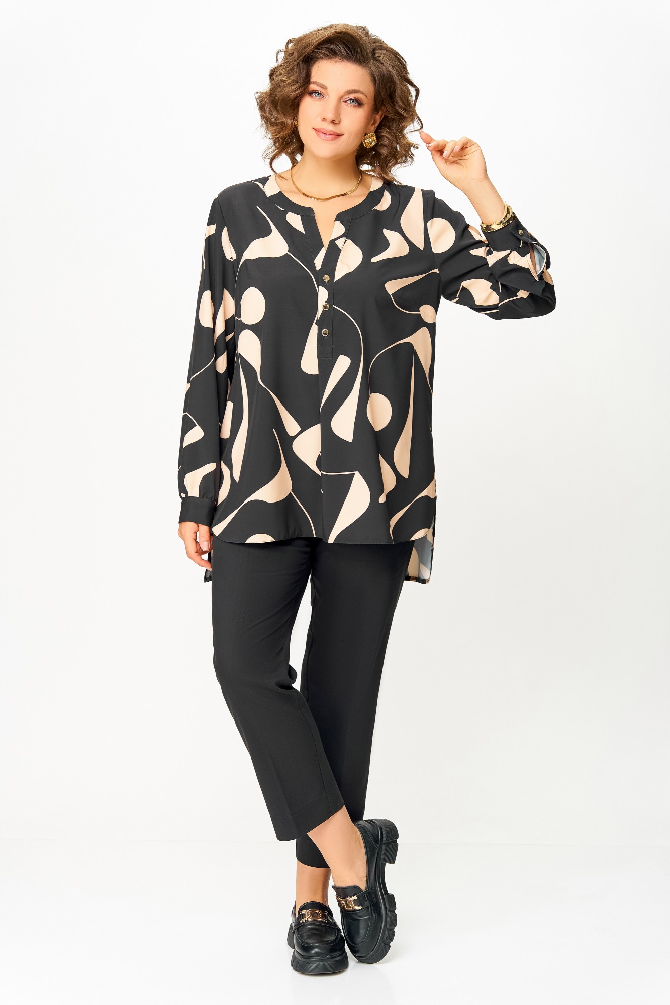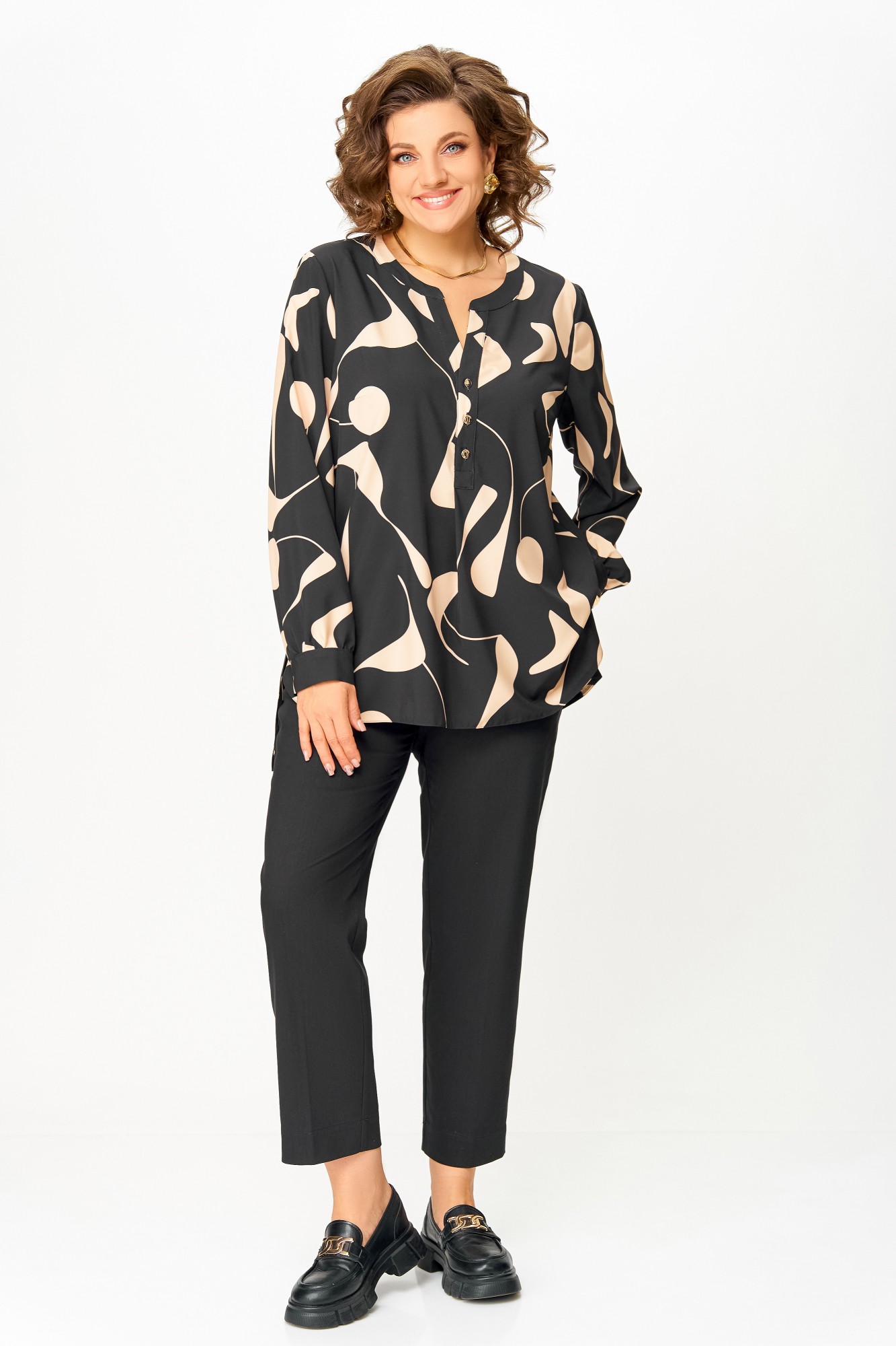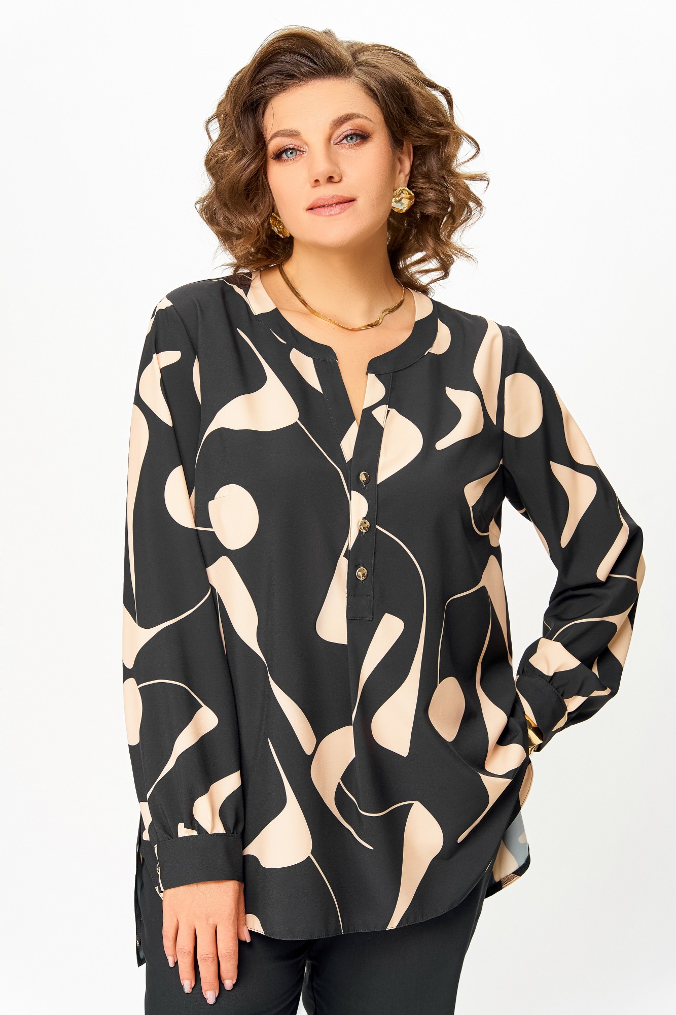 Блузка Swallow 851 Чёрный, бежевый принт