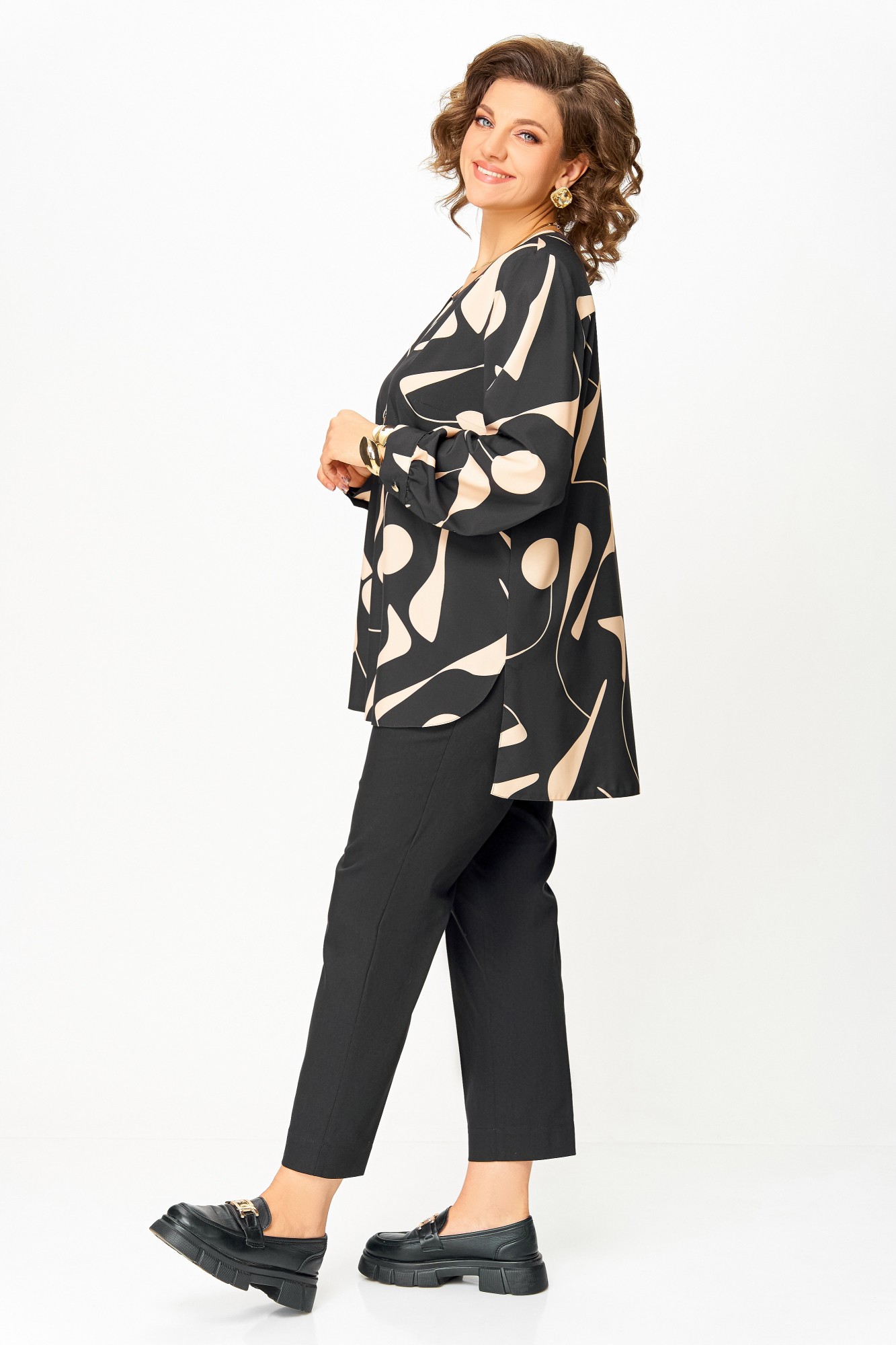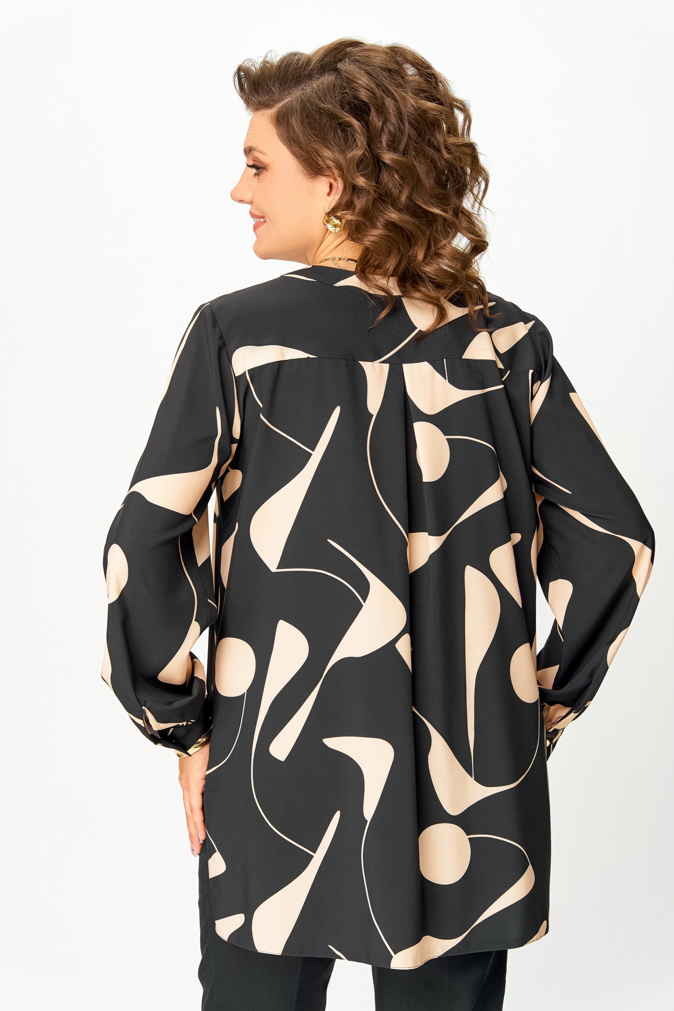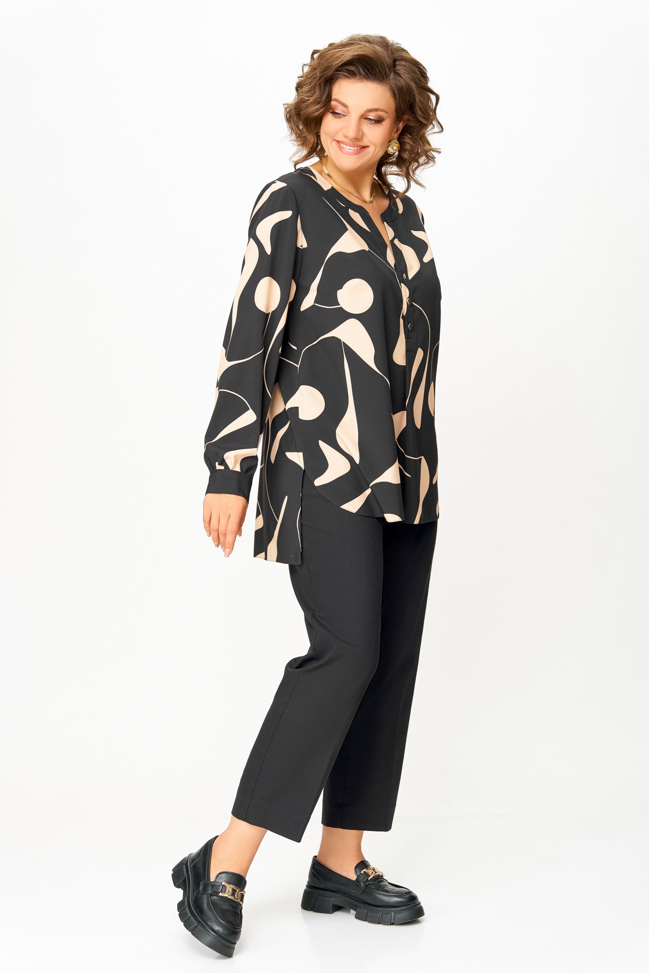 Блузка Swallow 851 Чёрный, бежевый принт