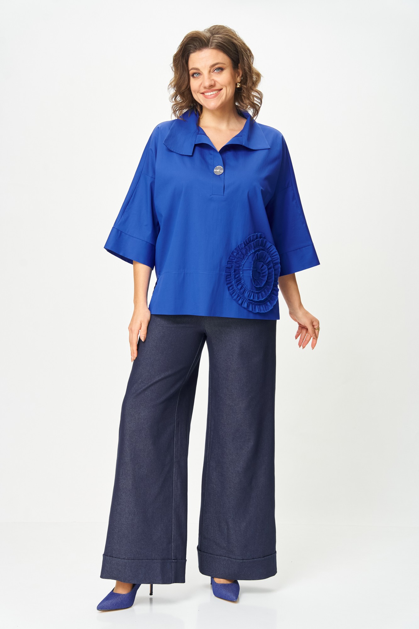 Женская хлопковая блуза в стиле «бохо» прекрасно вольется в повседневную жизнь и станет одной из любимых базовых вещей в Вашем гардеробе. Блуза свободного кроя. Перед цельный с планкой-застежкой до груди. Спинка с плечевой кокеткой, переходящей в рукав. Рукав 3/4 с притачной манжетой по низу. Из-под кокетки спинки — запах из двух нижних деталей блузы, фигурный низ, по бокам изделия разрезы. По низу переда широкая подгибка. Изделие хорошо сочетается как с брюками, так и с юбками, с классической и спортивной обувью.