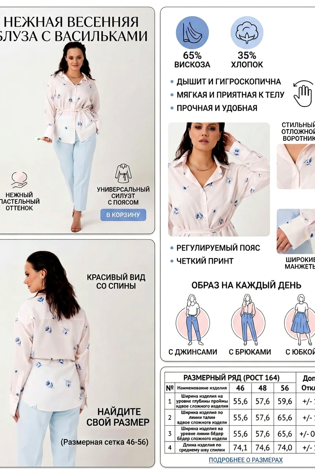 Идеально подойдёт: для офиса, повседневных образов и лёгких, женственных комплектов.
