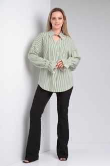Блузка MODEMA 551 -1 бело-зеленая полоска