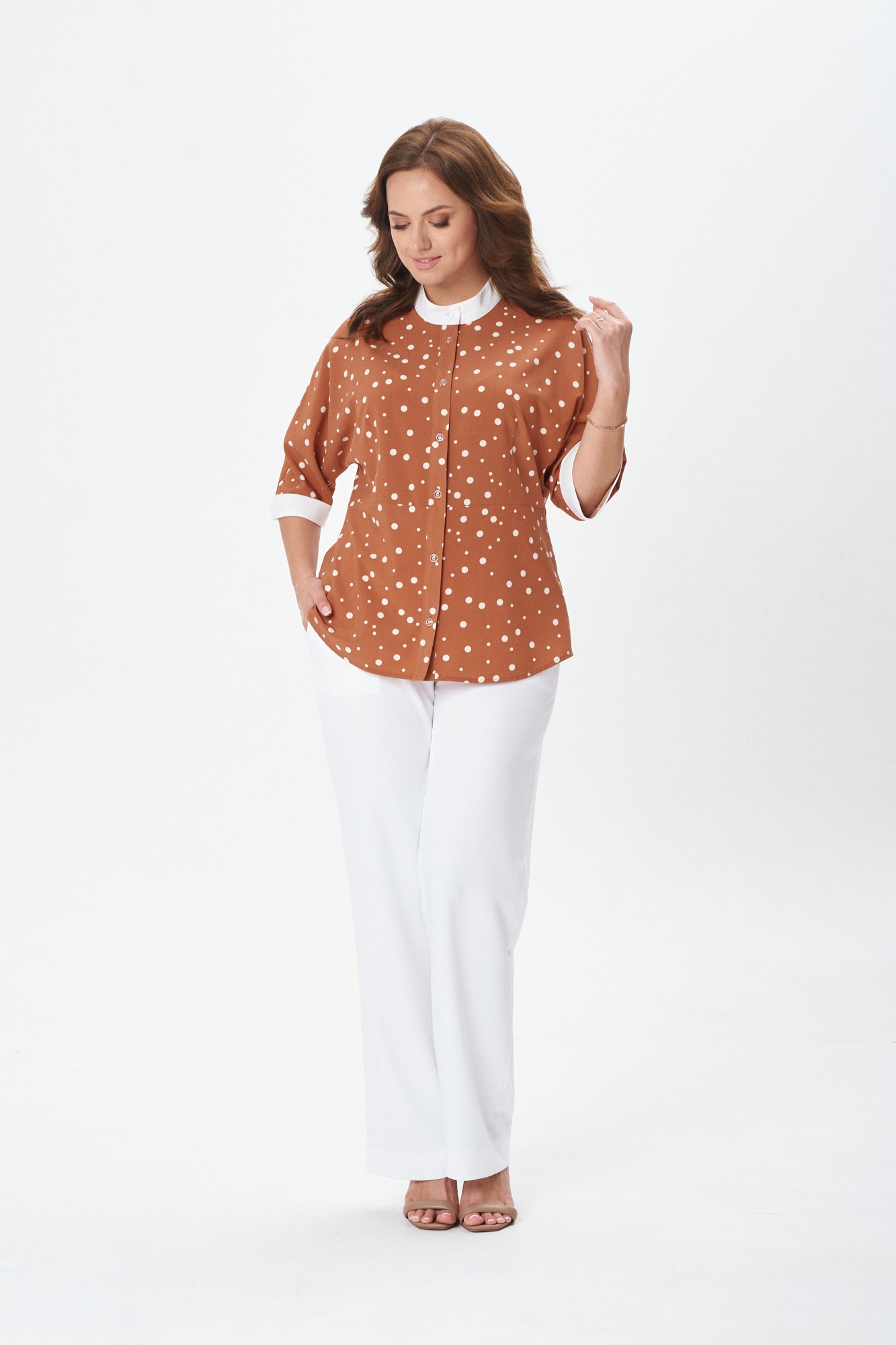 Блузка MODEMA 559 горох на коричневом