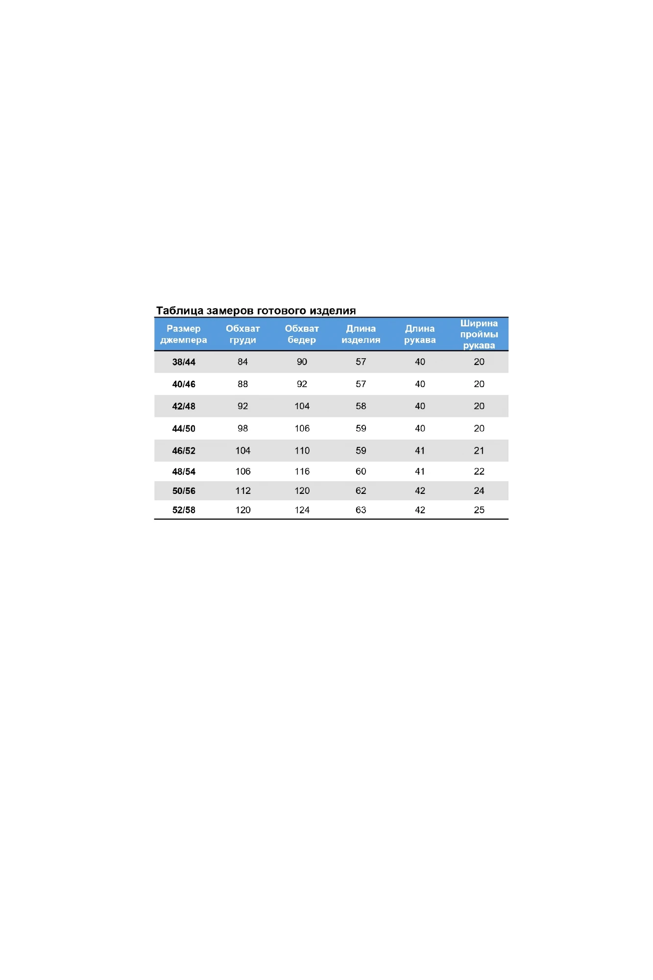 Таблица размеров