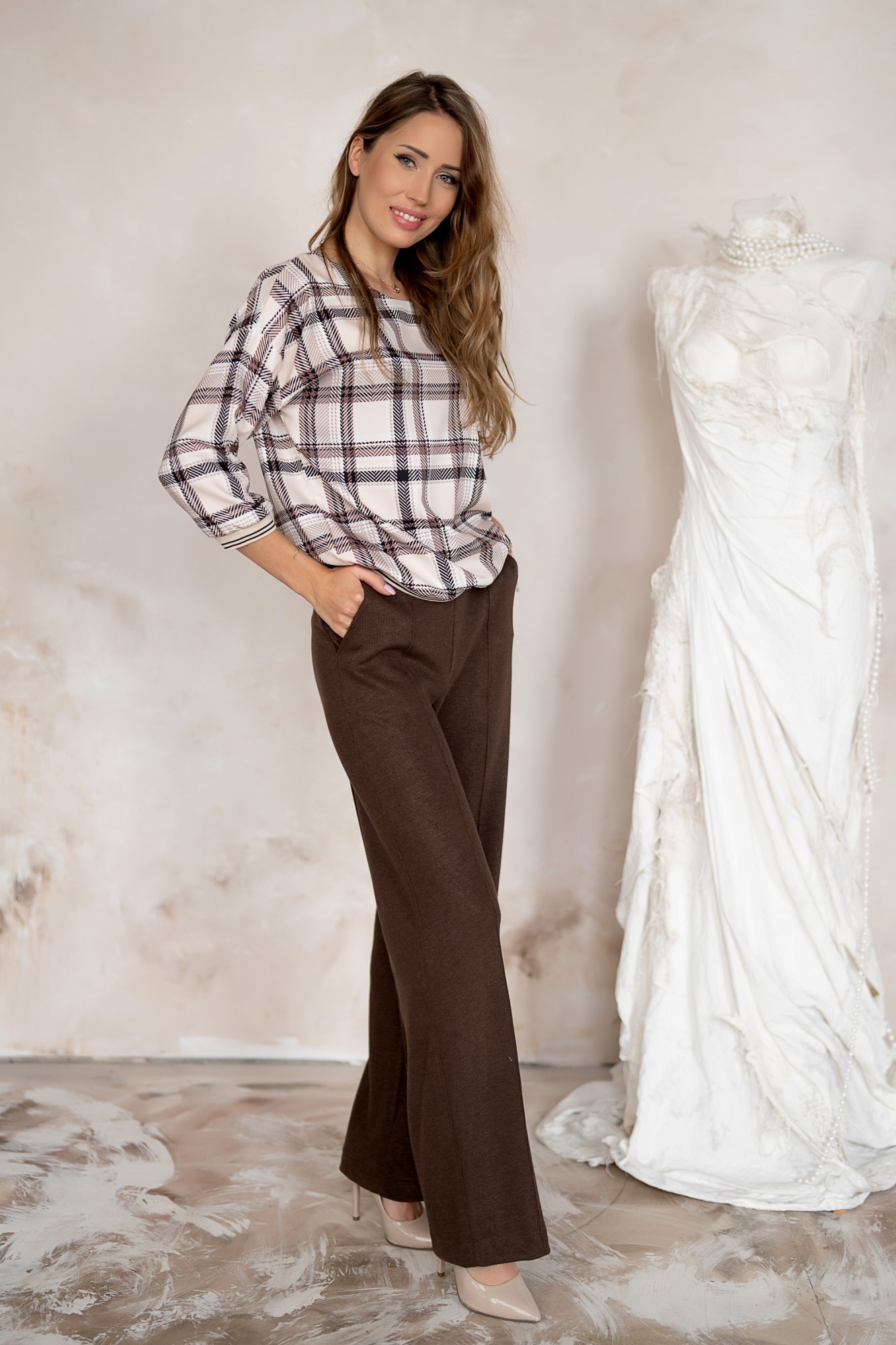 Блузка Nika.pl 03084 клетка беж
