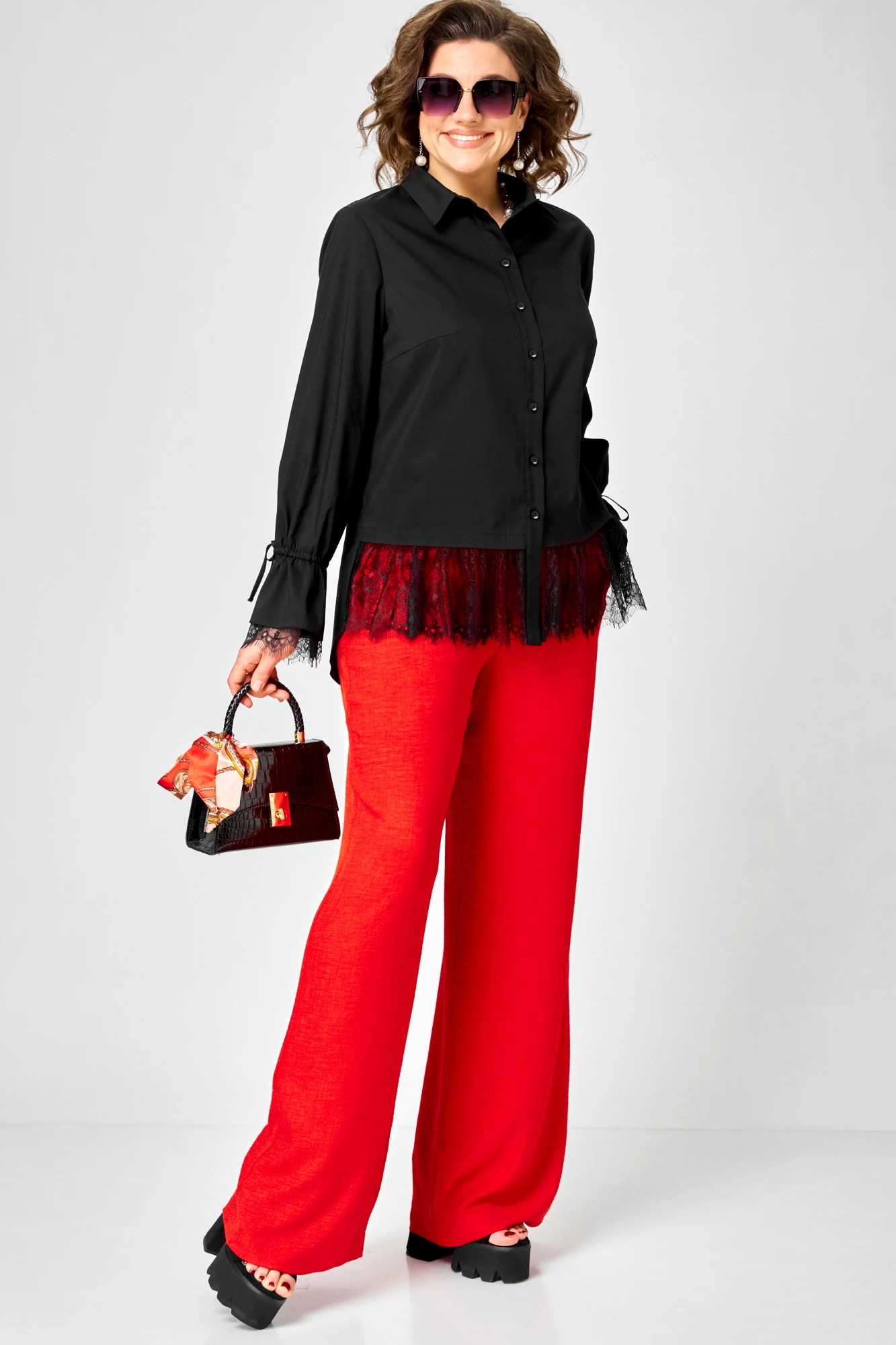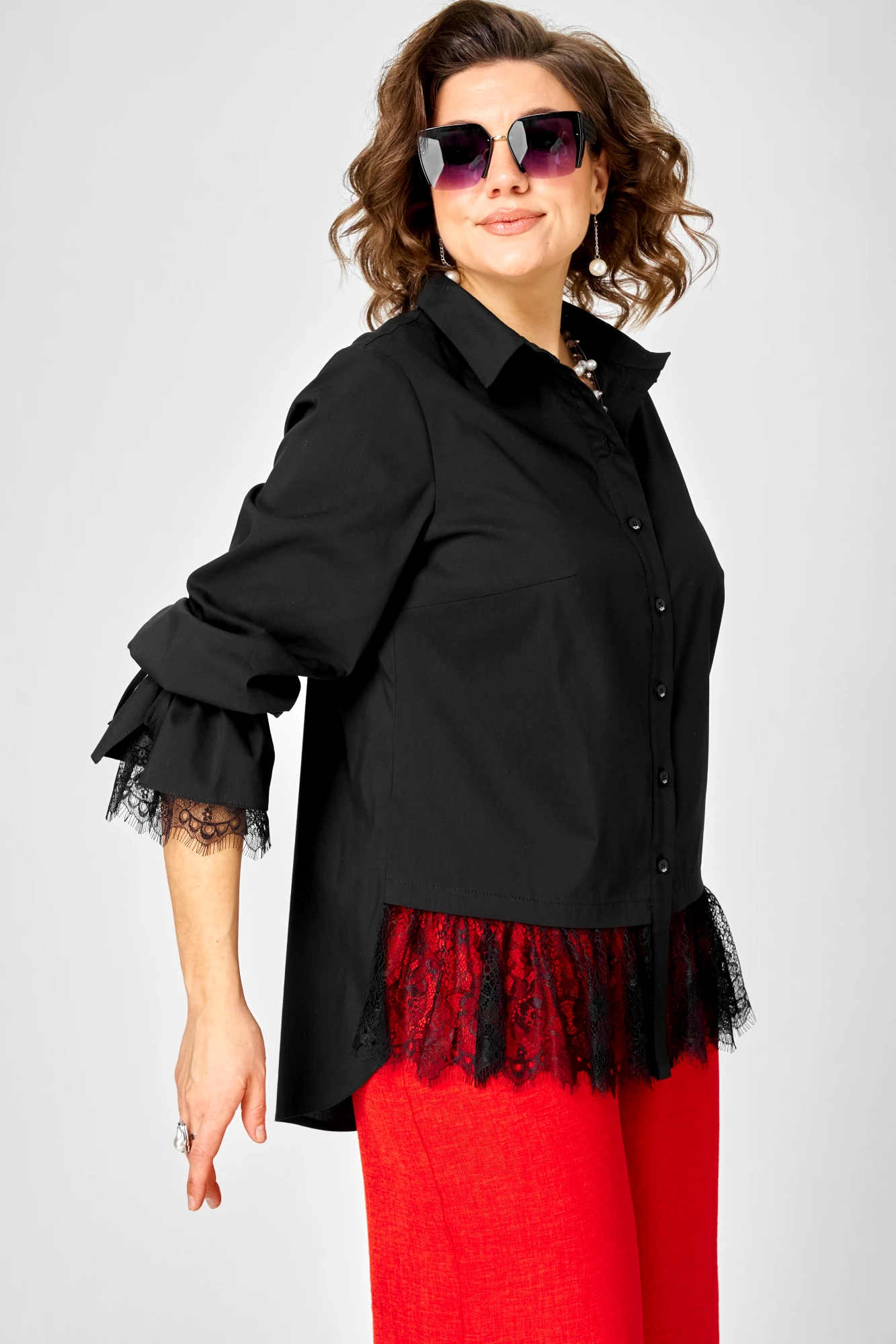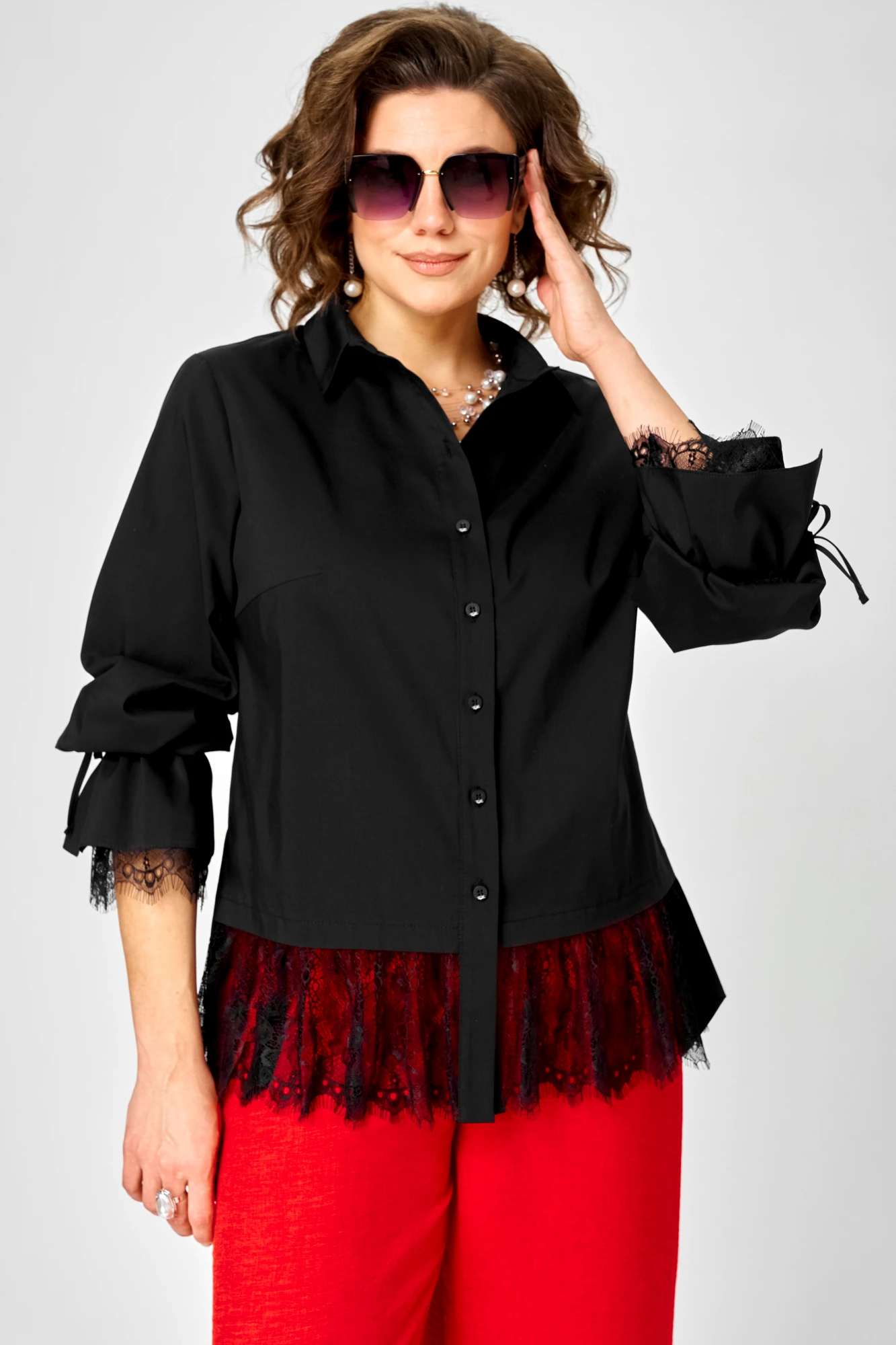 Блузка EVA GRANT 5002 черный, кружево