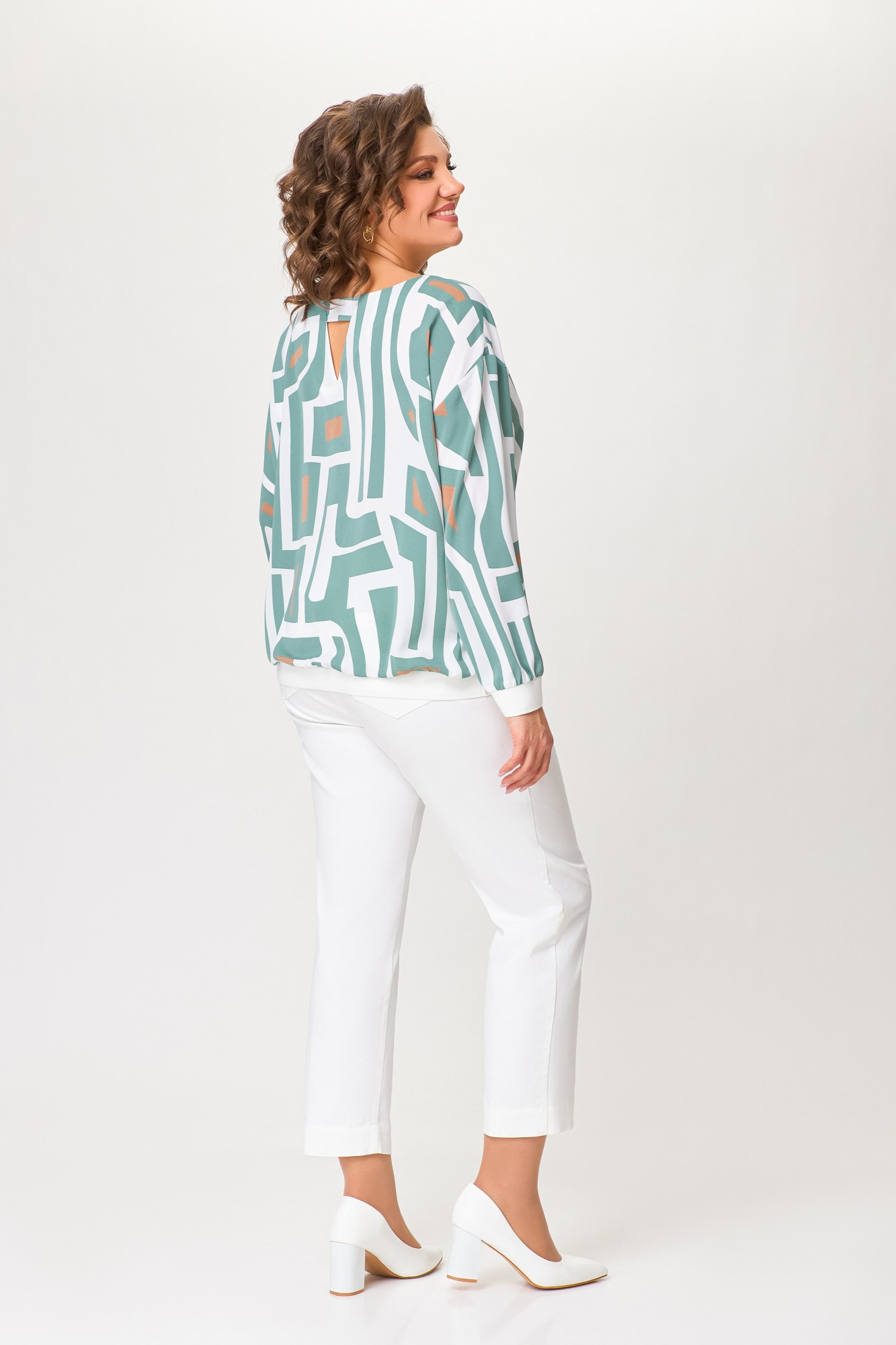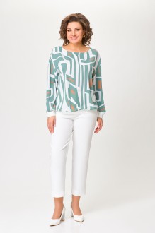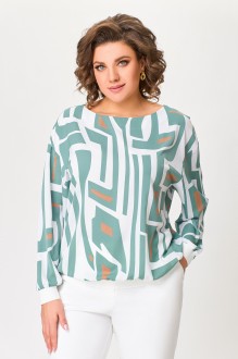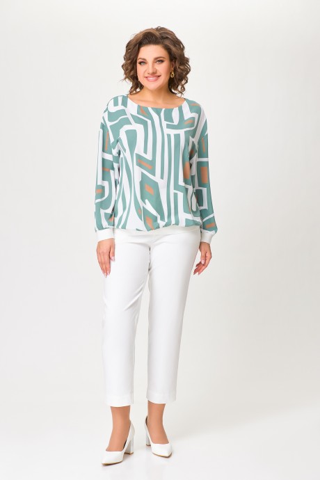 Блузка Swallow 830 Мятно-белый принт с коричневым