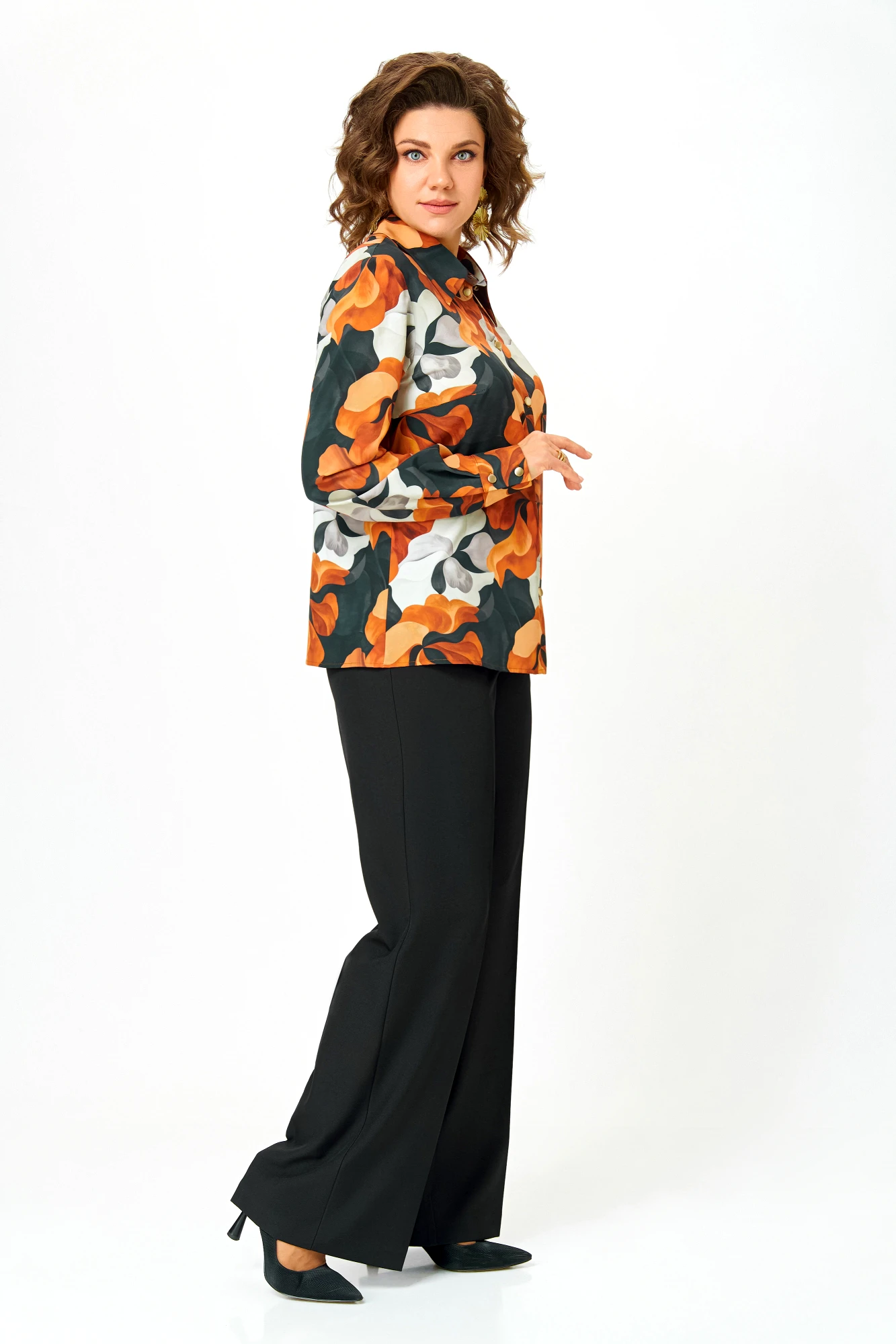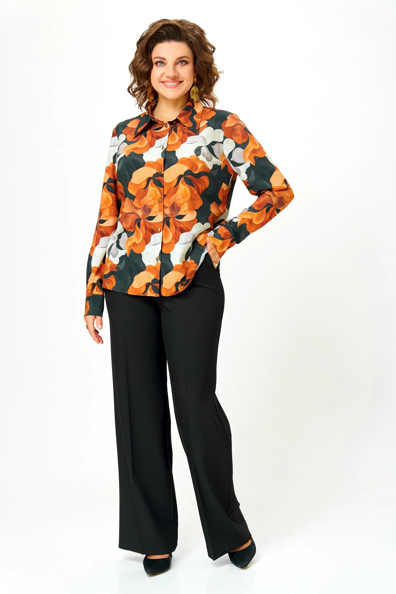 Блузка Swallow 884 .1 Чёрно-рыжий принт