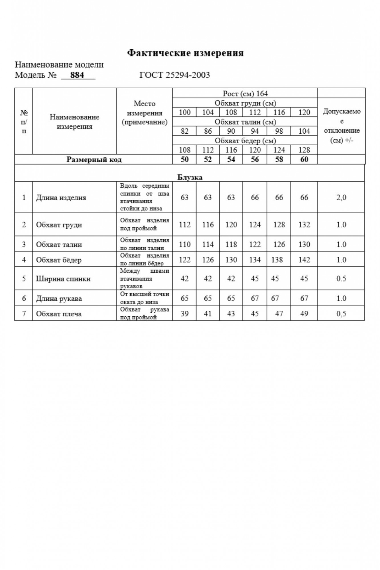 Длина рукава – 66 (+/-1) см.