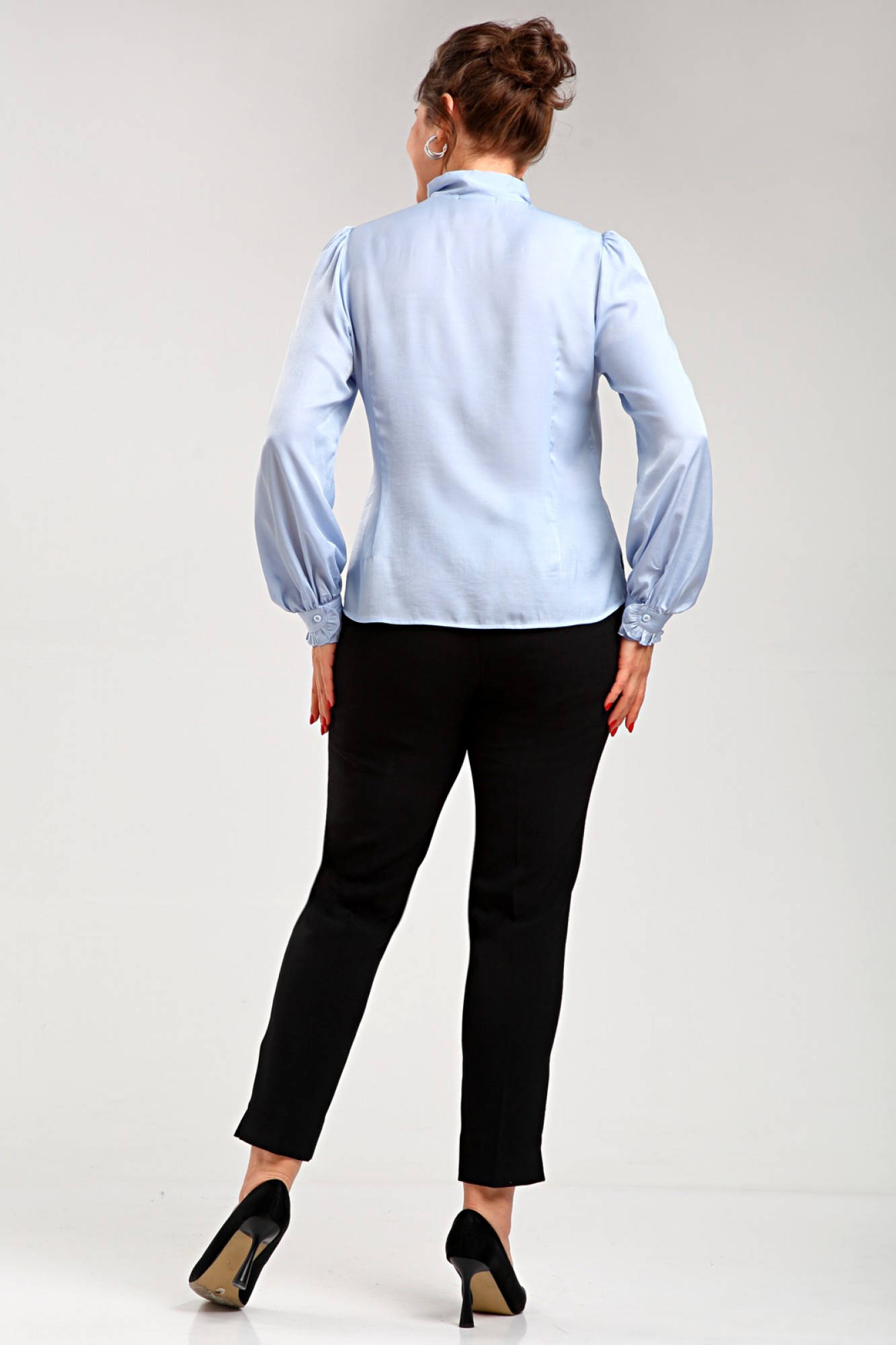 Эта женская блуза выполнена в элегантном прямом силуэте, что делает её идеальным выбором как для офисного стиля, так и для повседневных образов. Изящные вытачки на талии и нагрудные вытачки по полочке придают блузе утончённый силуэт и подчеркивают фигуру, создавая гармоничный контур. Спинка также оснащена талевыми вытачками, что обеспечивает комфортную посадку и свободу движений. Рукава блузы имеют оригинальное присборивание по окату и внизу у манжет, что добавляет нотку романтики и игривости в общий образ. Центральная застежка на подборт выполнена с изюминкой: в верхней части, рядом со стойкой, она оформлена в виде элегантной «слезки», которая дополнена нежной рюшей. Двойная стойка придаёт блузе лёгкость и воздушность, а присобранная впереди деталь с застёжкой на две пуговицы добавляет изысканности и оригинальности. Эта блуза станет универсальным элементом вашего гардероба, легко сочетаясь с юбками, брюками и даже шортами. Она идеально подходит для создания как классических, так и более креативных образов. Благодаря высококачественным материалам и продуманному дизайну, эта блуза гарантирует комфорт на протяжении всего дня. Идеальный выбор для активных дней или уютных встреч с друзьями!