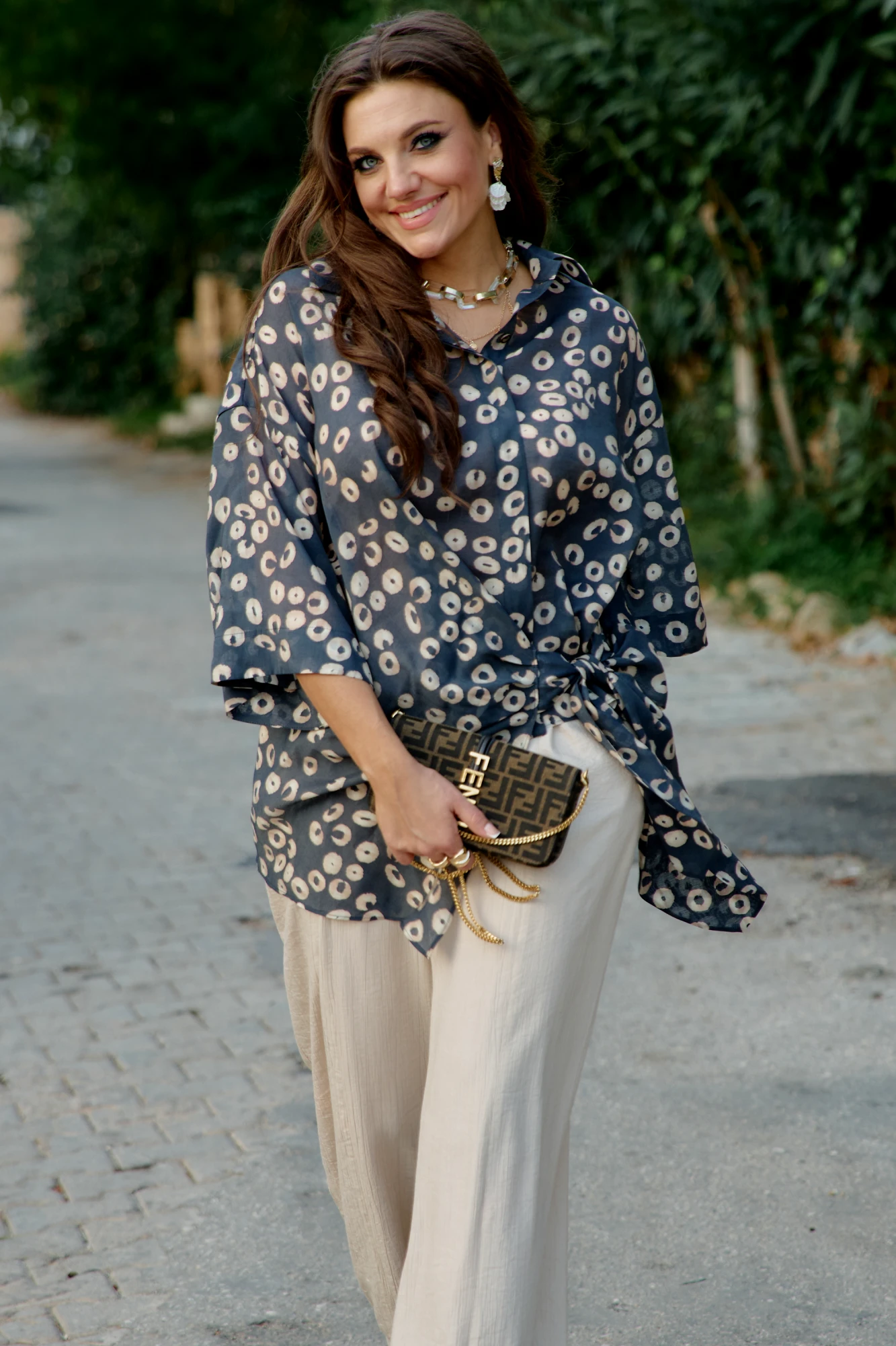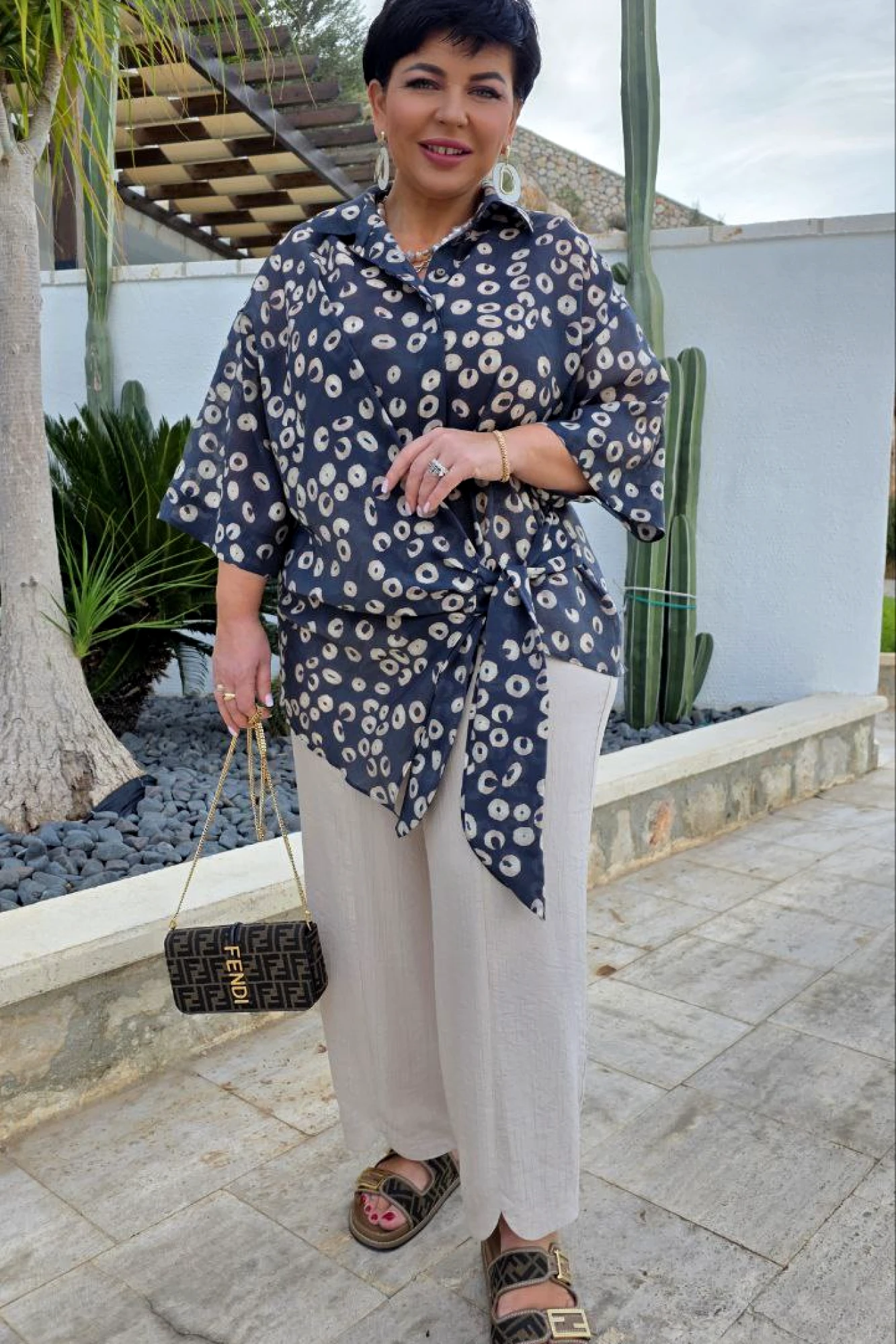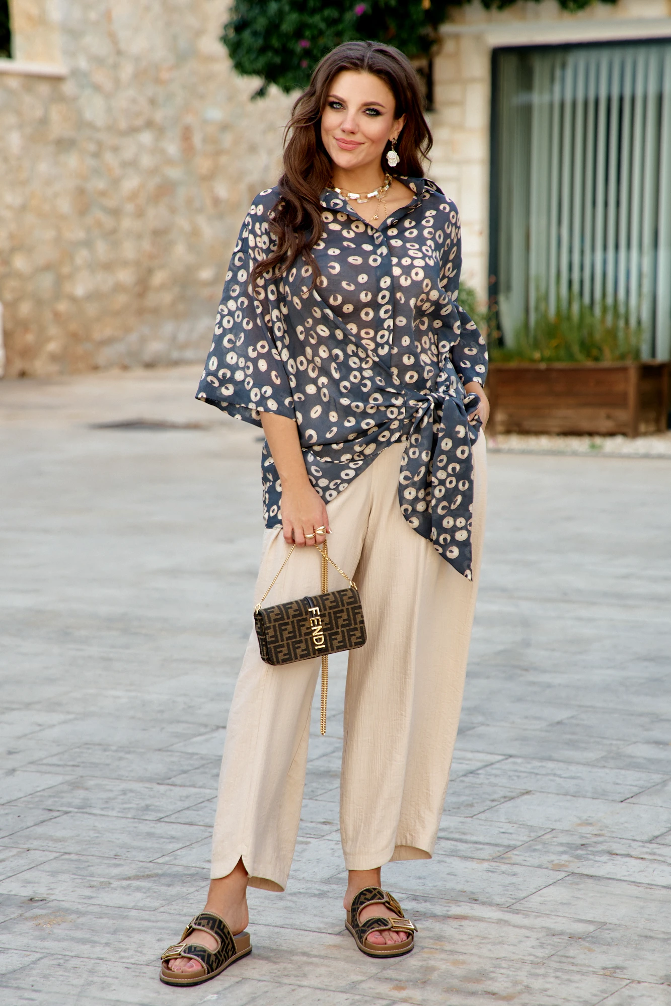 Блузка Vittoria Queen 28613 бл серо-синяя