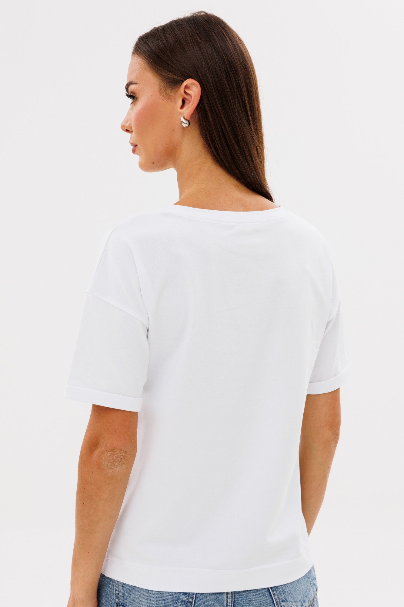 Футболка свободного кроя. Удлиненный рукав, с подворотом. Принт методом термопереноса, цифровая печать. Ткань кулирная гладь , качество Пенье, плотность 200 г.м2
