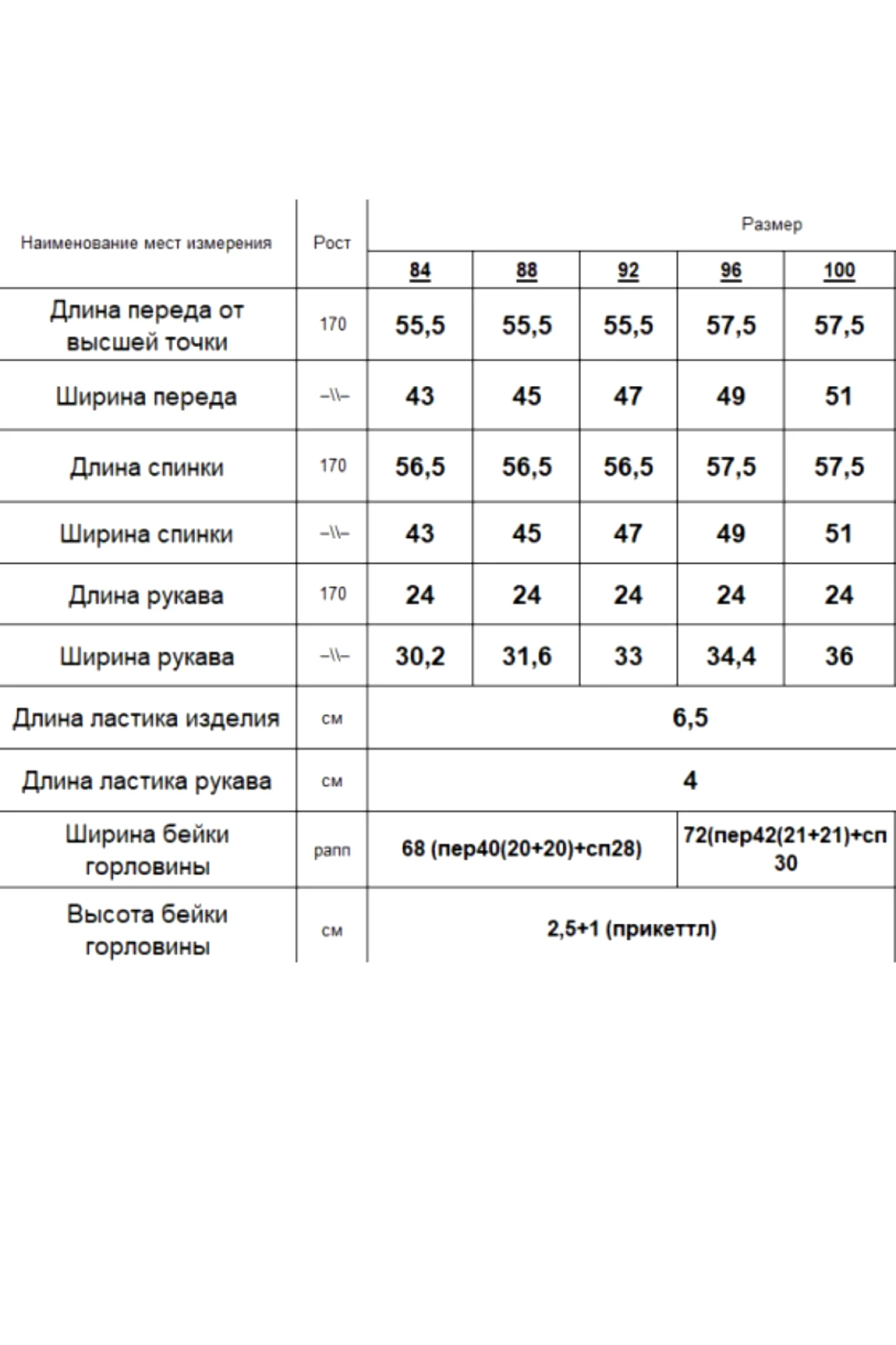 Таблица размеров