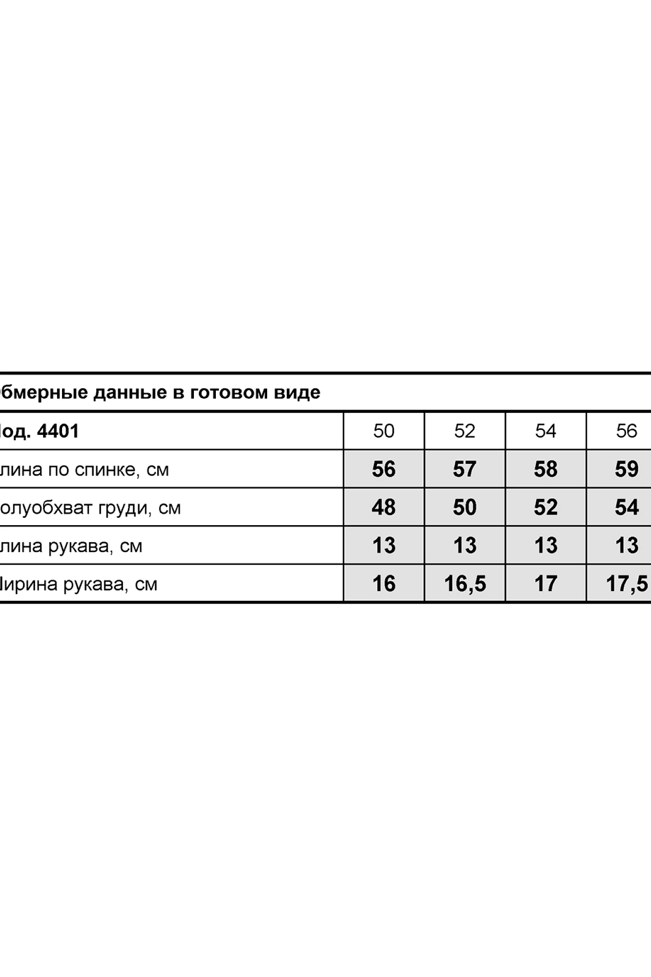 Таблица размеров