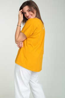 Футболка свободного кроя со спущенной линией плеча, удлинённой спинкой. Имеются декоративные элементы.