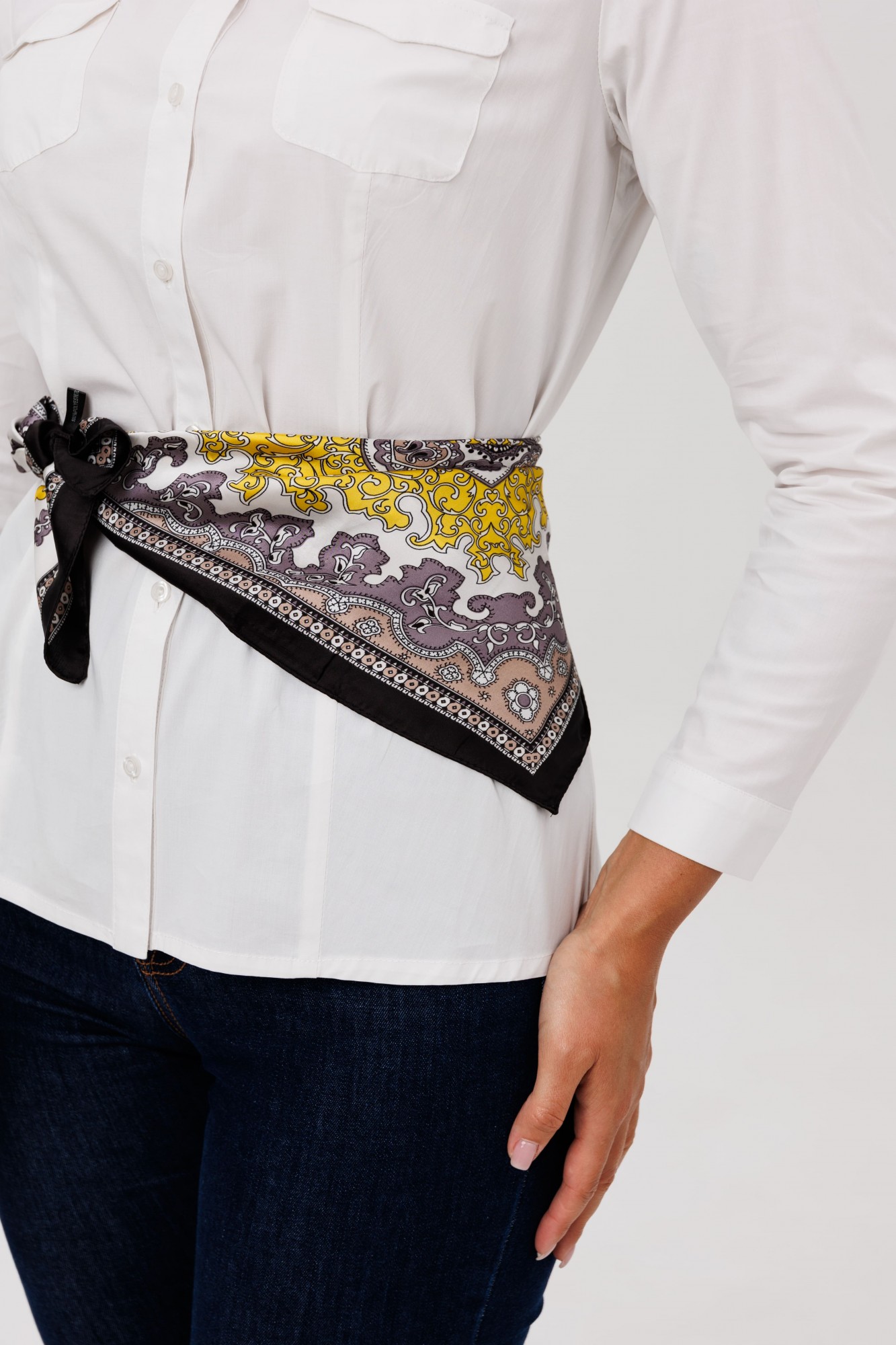 Классическая блуза отличается строгим и лаконичным дизайном. Ее передняя часть оформлена нагрудными вытачками, идущими от низа, и дополнена накладными карманами с закругленными краями. Спинка модели имеет талевые вытачки и цельнокроеную кокетку, которая плавно переходит на полочку, обеспечивая идеальную посадку по фигуре.