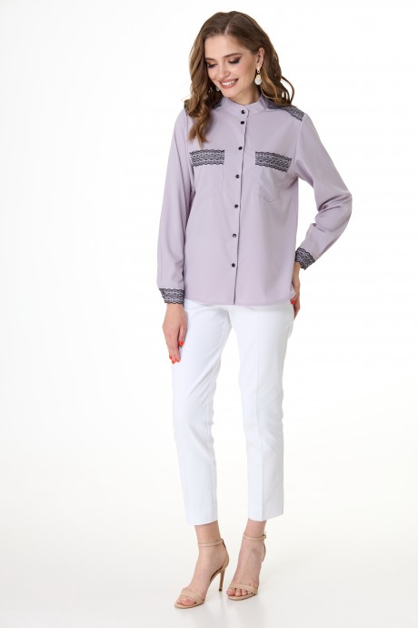 Блуза с отделкой кружевом пудрового оттенка послужит как повседневной моделью так и частью вечернего образа.
