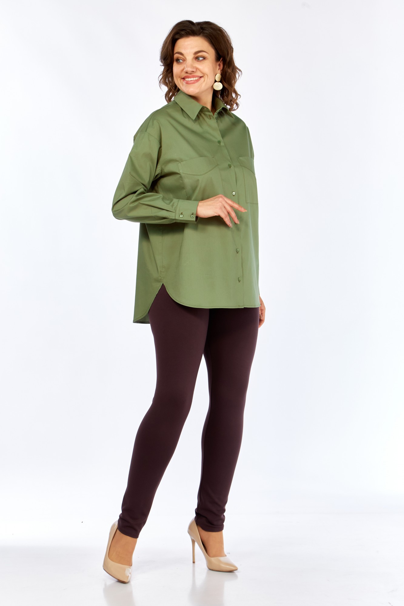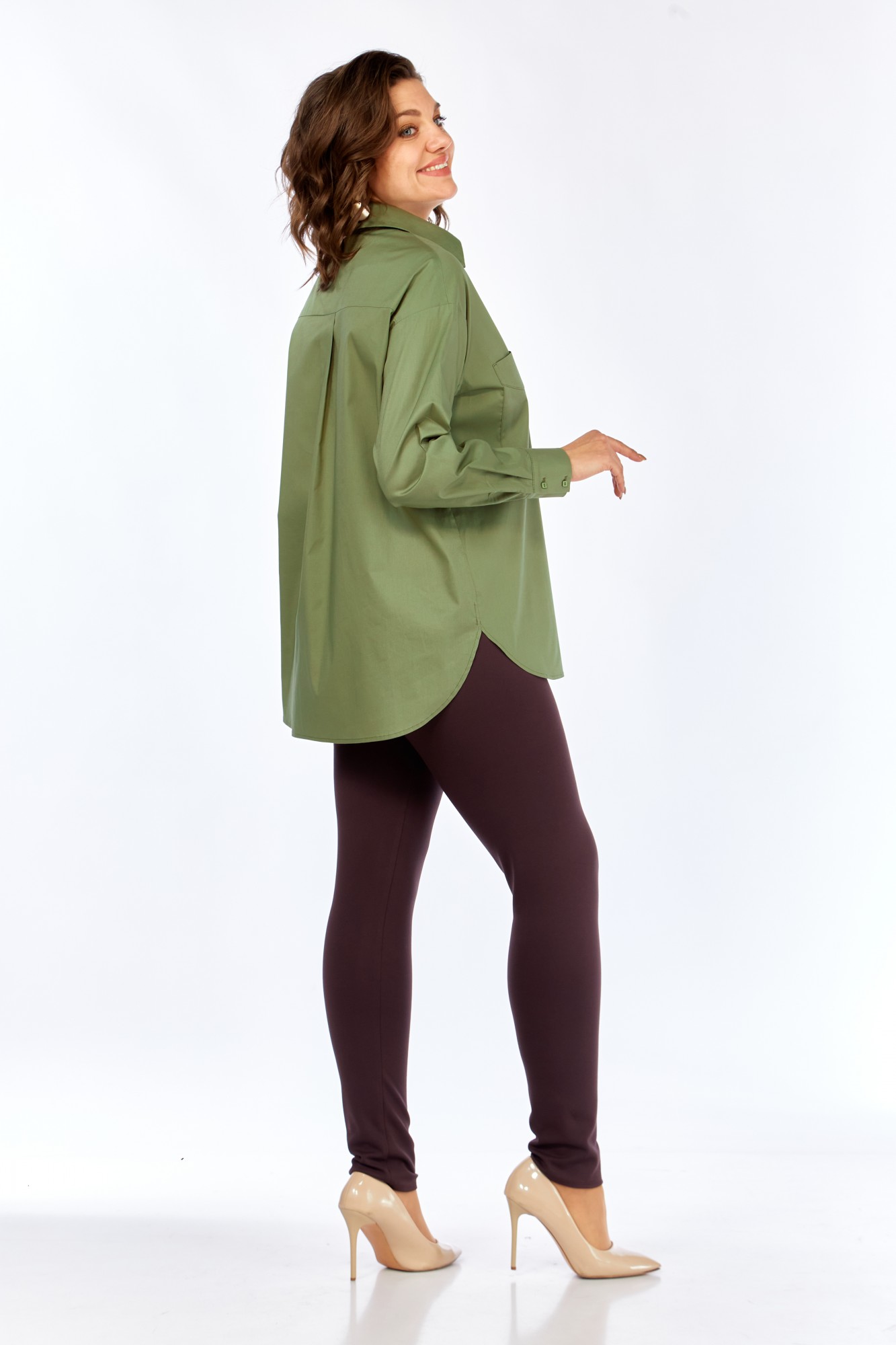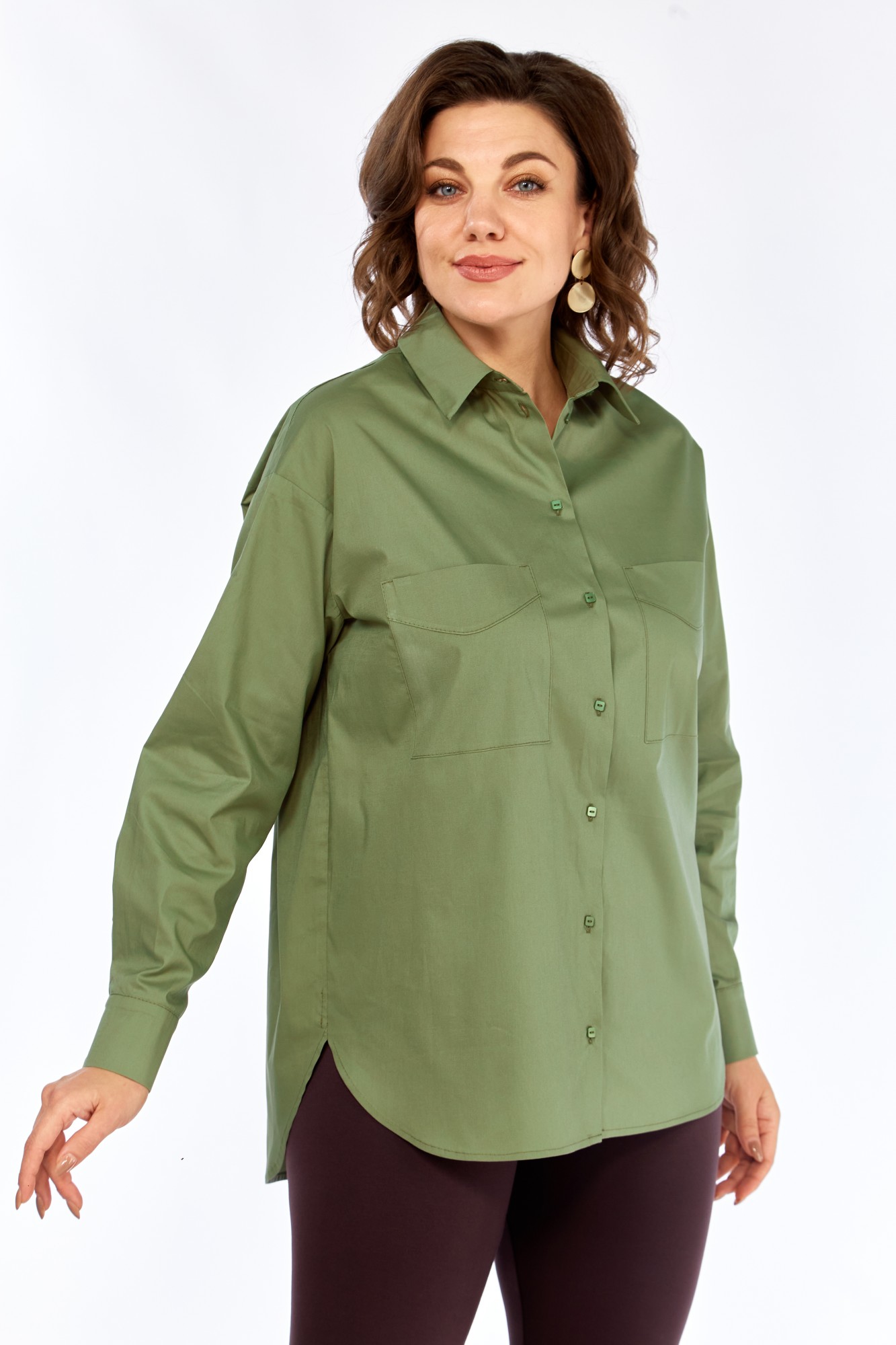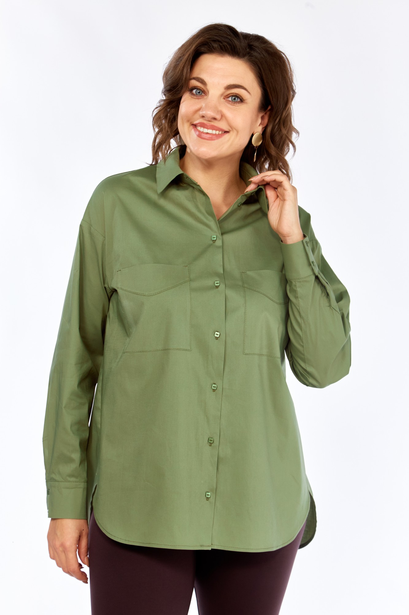 Рубашка свободного силуэта. Рукав рубашечный с разрезом и складками, заканчивается манжетой, которая застегивается на 2 петли и пуговицы. Плечо спущенное. На спинке двойная кокетка, от кокетки по центру спинки идет встречная складка. Ткань поплин, тянется по ширине.