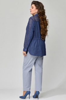 Рубашка "Иста" без подкладки, выполнена из джинса, с кружевной отделкой. По талии рубашки - кулиса, застежка однобортная с отделочной планкой, воротник рубашечного типа, с отделочной стойкой. Кнопки в рубашке обтянуты отделочной тканью. По полочке рельефы и кокетка, карман прорезной. Рукав в рубашке трехшовный с кружевом, низ рукава обработан манжетой на застежку. По спинке рубашки - рельефы и кокетка, в боковых швах - закруглённые разрезы, низ рубашки обработан швом в подгибку.