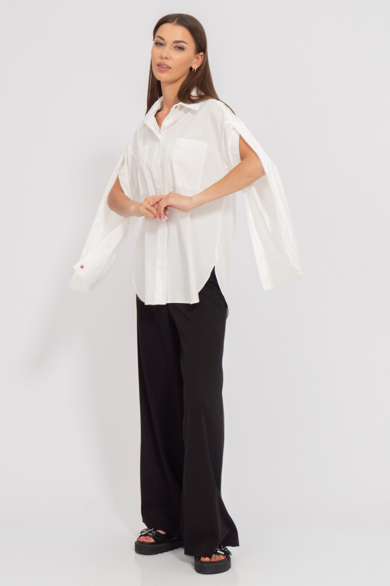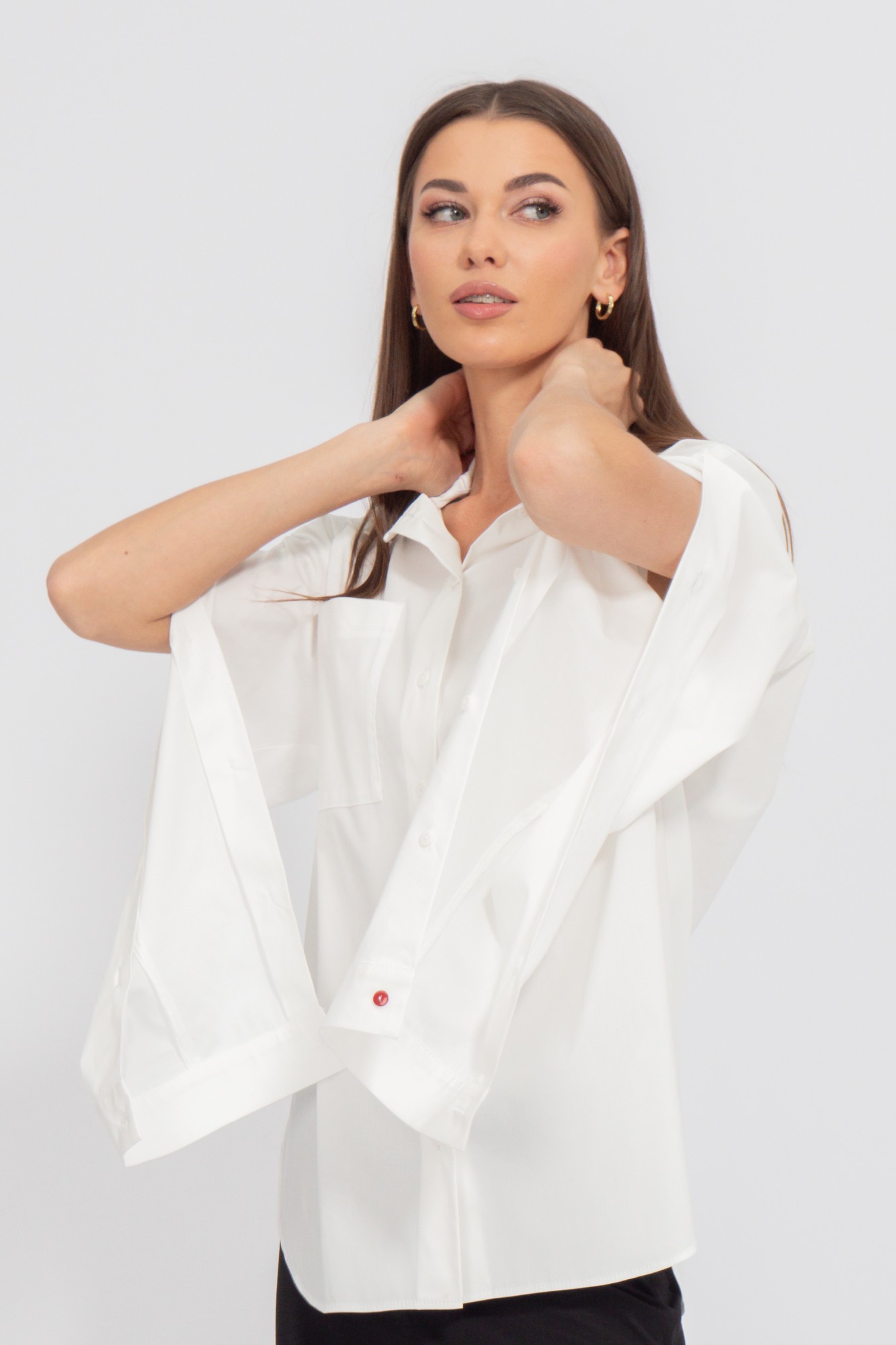 Блуза свободного силуэта из классической хлопковой ткани с рапашным рукавом на пуговицах - отличный вариант для тех кто любит экспериментировать со своим стилем. Эти блузы выполнены из высококачественного натурального материала, который обеспечивает комфорт и воздухопроницаемость. Свободный силуэт позволяет создавать разнообразные образы, сочетая блузу с юбками, брюками или джинсами. Хлопковая ткань гипоаллергенна и приятна к телу, что делает блузы идеальным вариантом для повседневной носки.