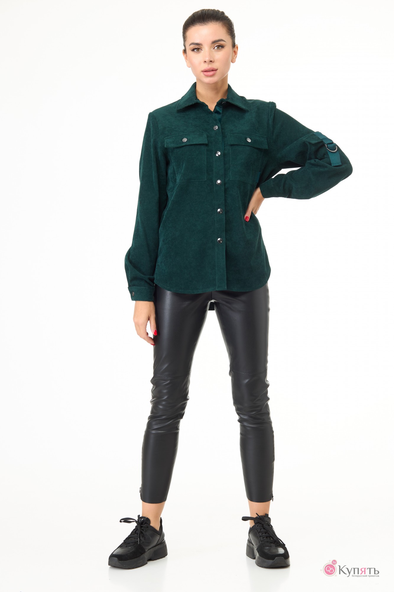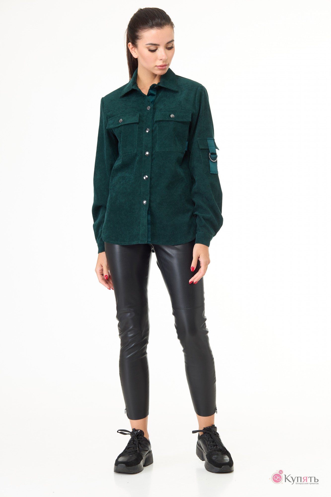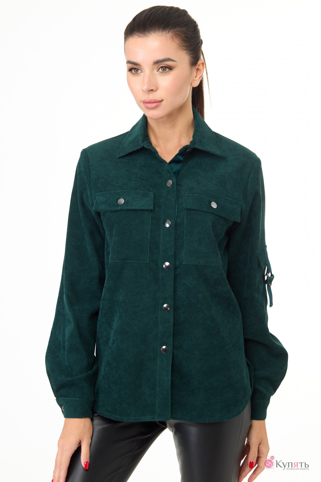 Рубашка прямого силуэта из хорошо растяжимой ткани «вельвет» красивого изумрудного цвета.
