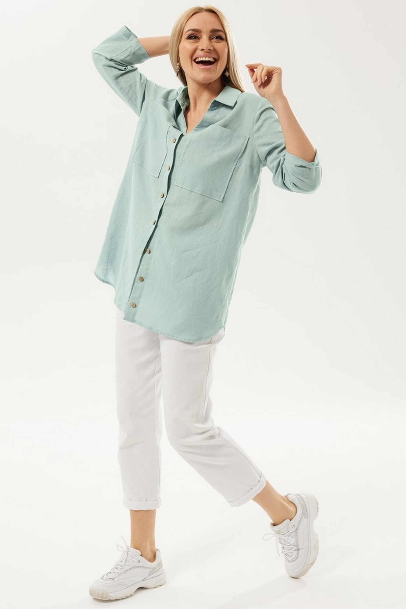 Женская льняная oversize-рубашка Ma Сhérie свободного силуэта.