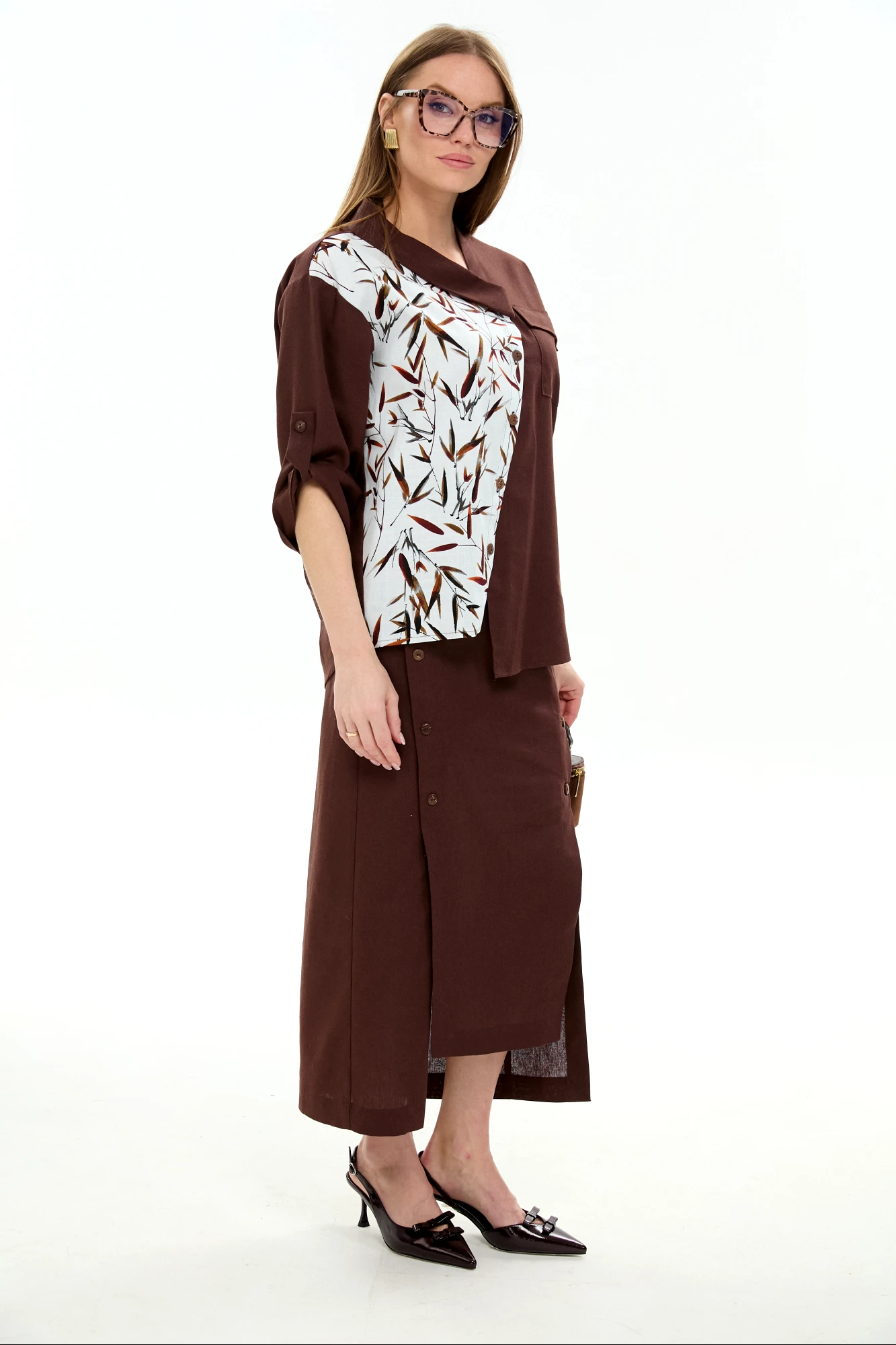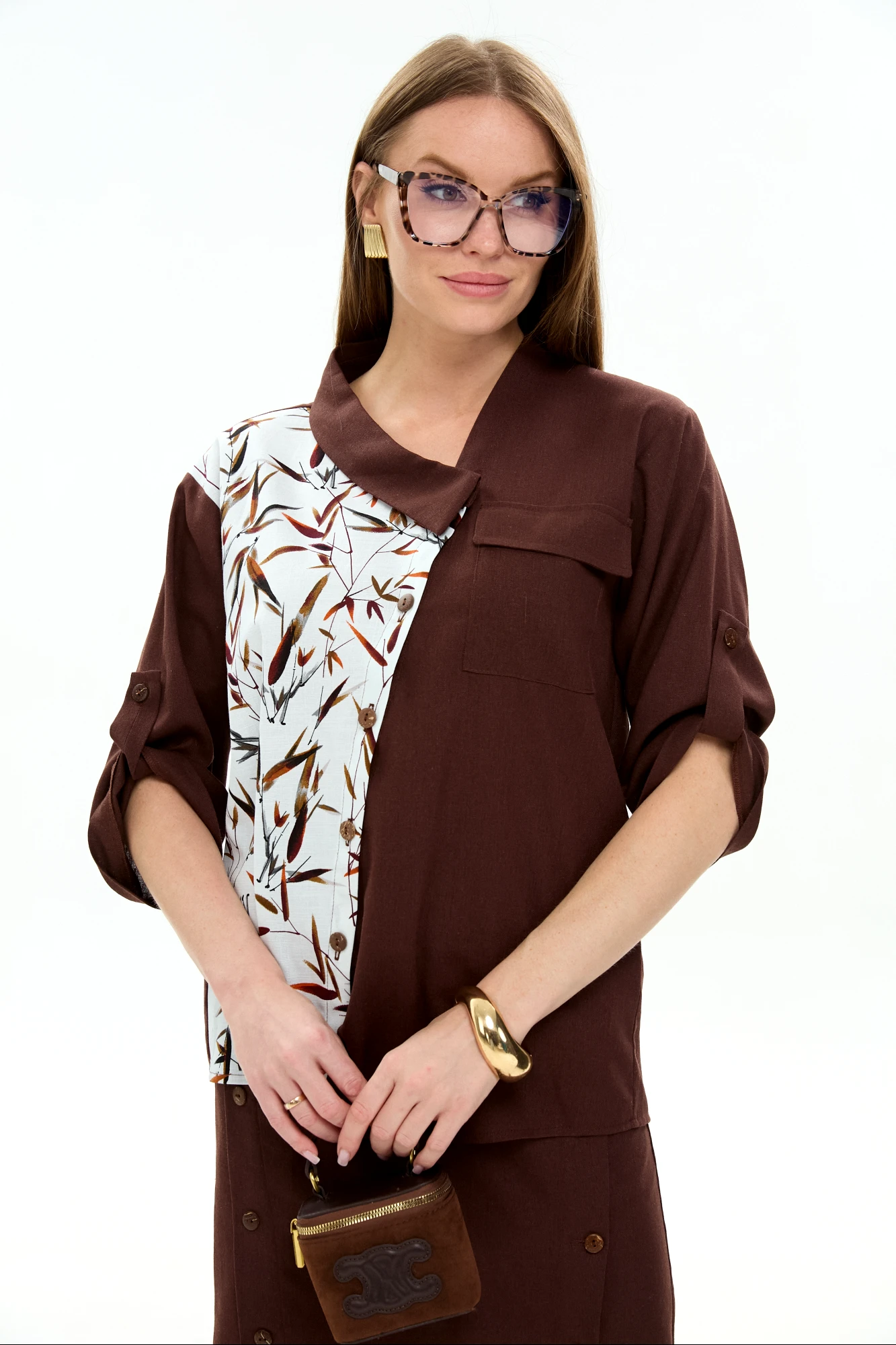 Рубашка NikVa н902 -15 шоколад и листья мультиколор