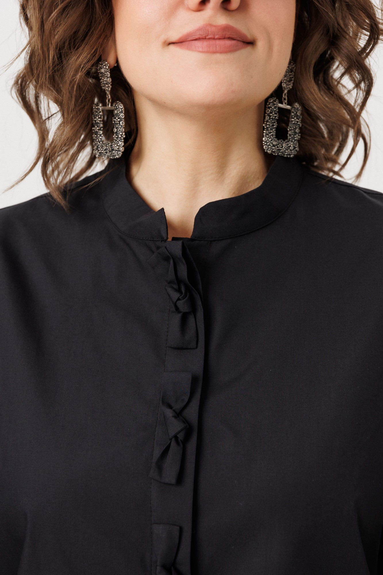 Коллекция азиатских мотивов в современном прочтении. Эта блуза от Анелли— воплощение изысканной простоты и тонкой эстетики, где каждая деталь выверена и несет в себе глубокий смысл. Прямой силуэт, ниспадающий мягкими складками, обладает умиротворяющей гармонией и скрывает все лишнее, создавая идеальный контур. Выразительным акцентом служит элегантная стойка, подчеркивающая линию шеи и придающая образу собранность и утонченность. Спущенная линия плеча смягчает образ, добавляя ему непринужденной элегантности и художественного шарма. Лаконичный рукав три четверти открывает самое изящное место на запястье, делая жест более выразительным и грациозным. Неброская потайная застежка обеспечивает безупречно чистую линию полотна, сохраняя целостность замысла. А по бокам расположены деликатные разрезы, которые открываются при движении, позволяя ткани красиво колыхаться и добавляя динамики вашему шагу. Финальный штрих, превращающий вещь в настоящее искусство, — это воздушные бантики. Эта блуза — больше, чем просто предмет гардероба. Это высказывание. Она способна преобразить самый сдержанный лук, наполнив его смыслом, светом и безупречным вкусом. Она станет вашим тайным оружием, источником спокойной уверенности и неоспоримой привлекательности.