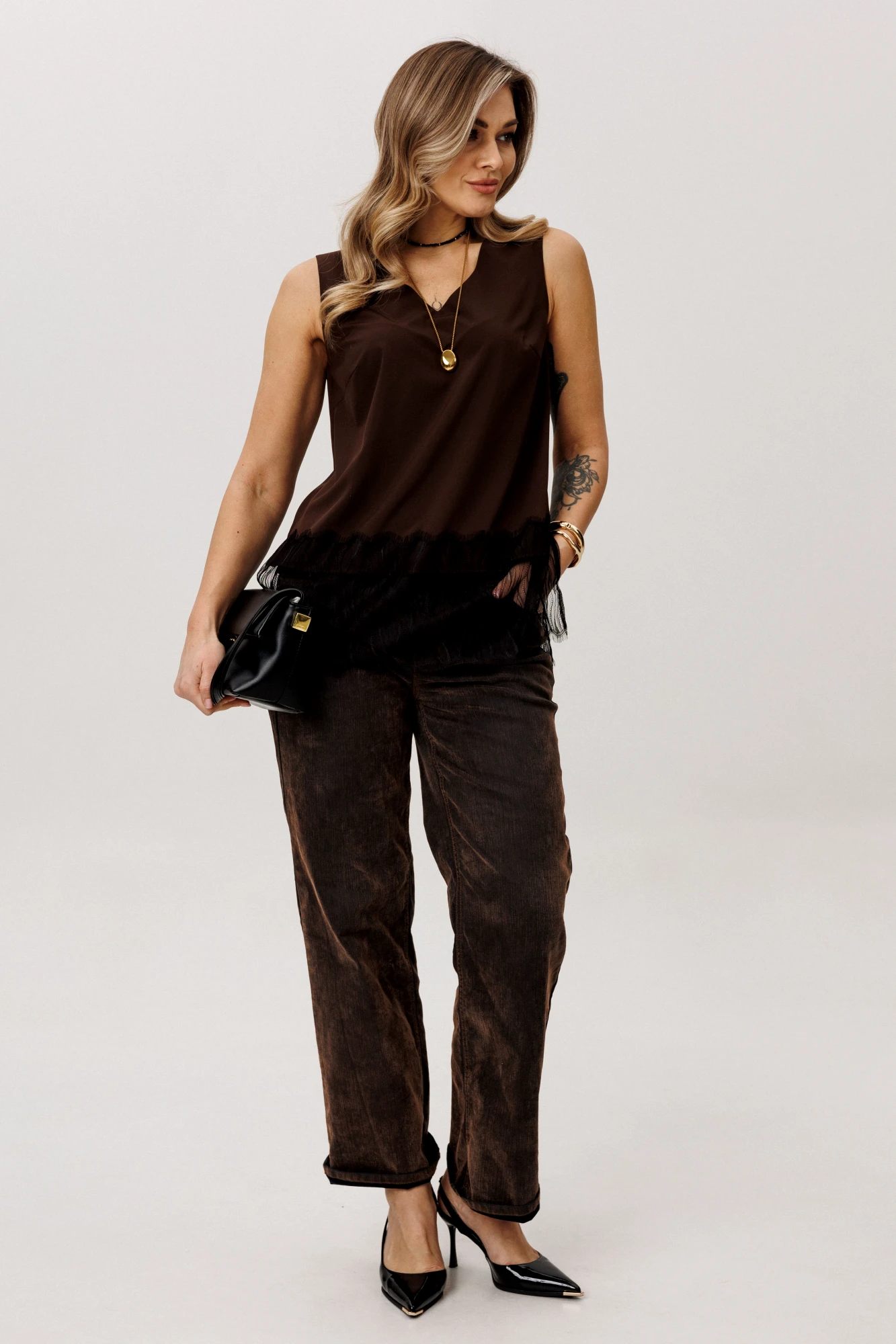 На модели в топе цвета «ледяной какао» шикарная рубашка 1663..