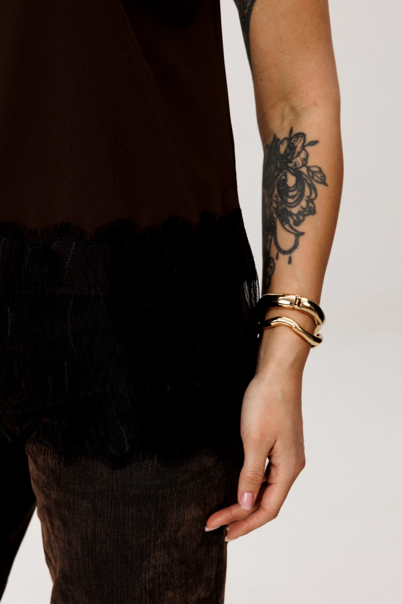 Но настоящая поэзия скрыта внизу: великолепное кружево, окаймляющее край, добавляет ноту романтики и загадочности. Он создан для того, чтобы его носить и как изюминку образа, кокетливо выглядывающую из-под строгого жакета или уютного свитера, и как самостоятельный акцент для особого случая.