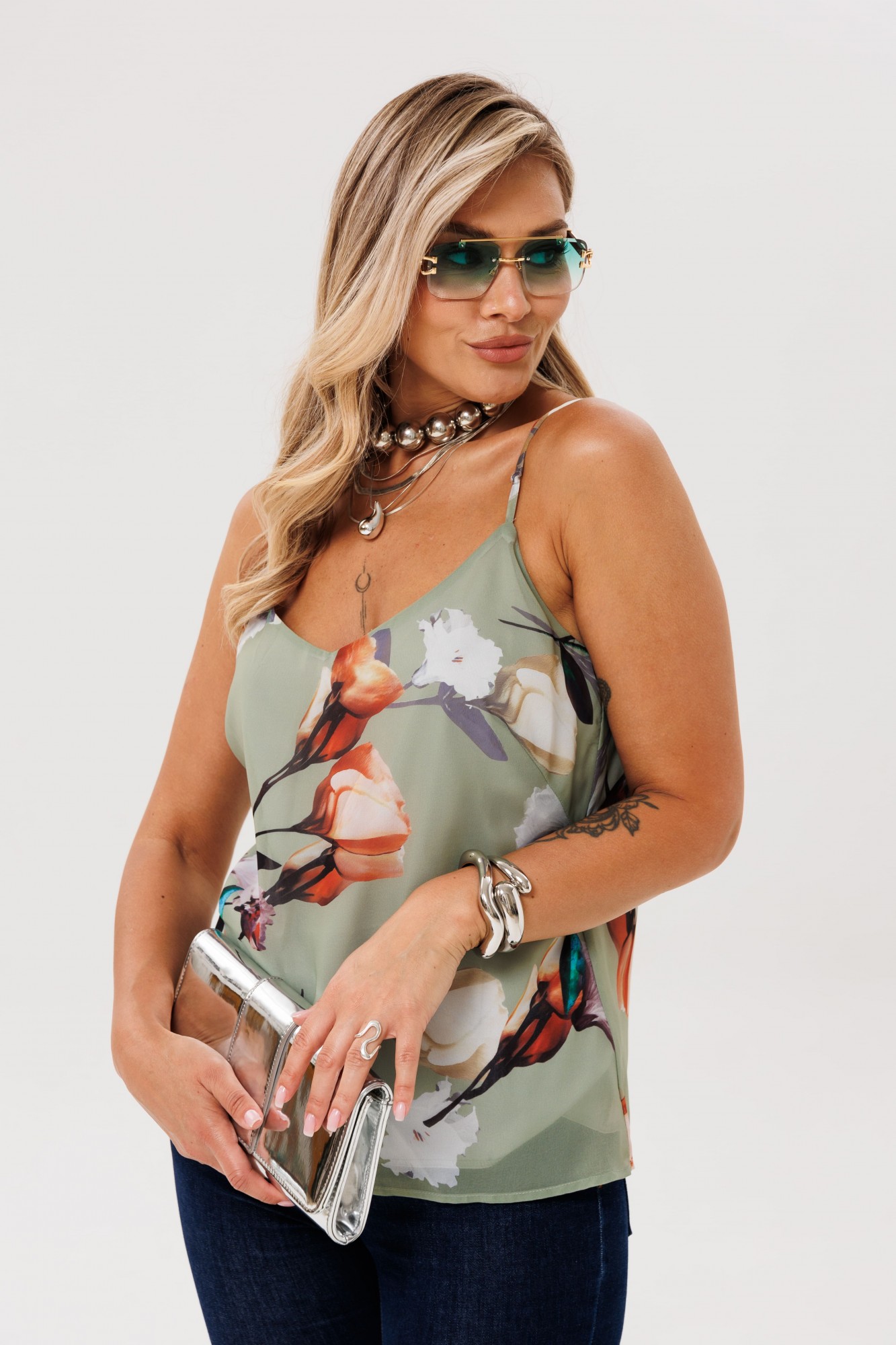 Лаконичность фасона делает его прекрасным холстом для создания образов: от строгого делового до динамичного спортивного. Однако именно в романтичном луке топ раскрывается полностью, даря ощущение нежности и утонченной грации.