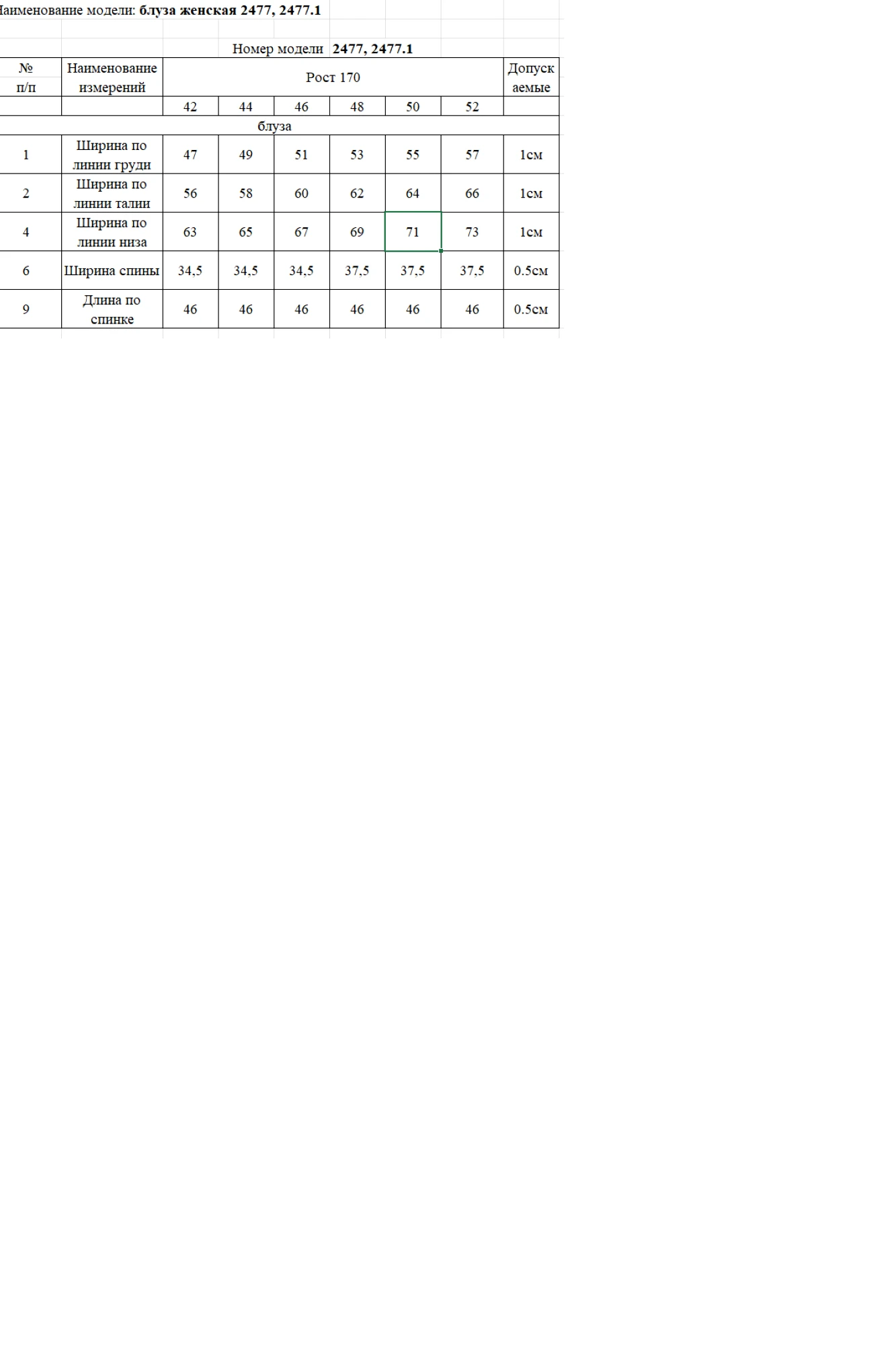 Таблица размеров