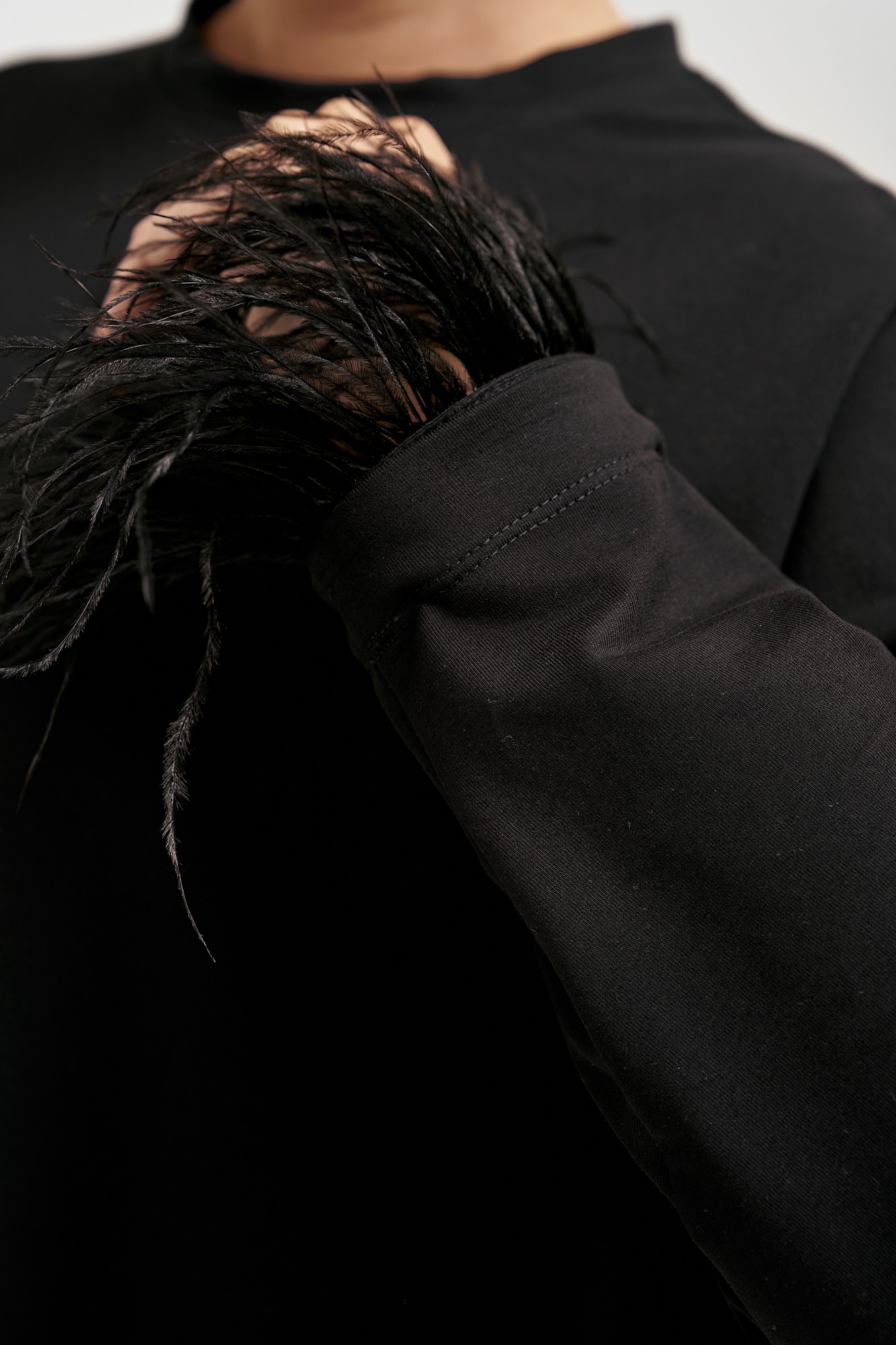 Свободный наряд хорошо сочетается с любой дамской сумочкой, клатчем, шейным платком, браслетами, бусами и сережками. Зауженный, расклешенный или асимметричный низ создает акцент на плавной линии бедер и стройных ножках леди.