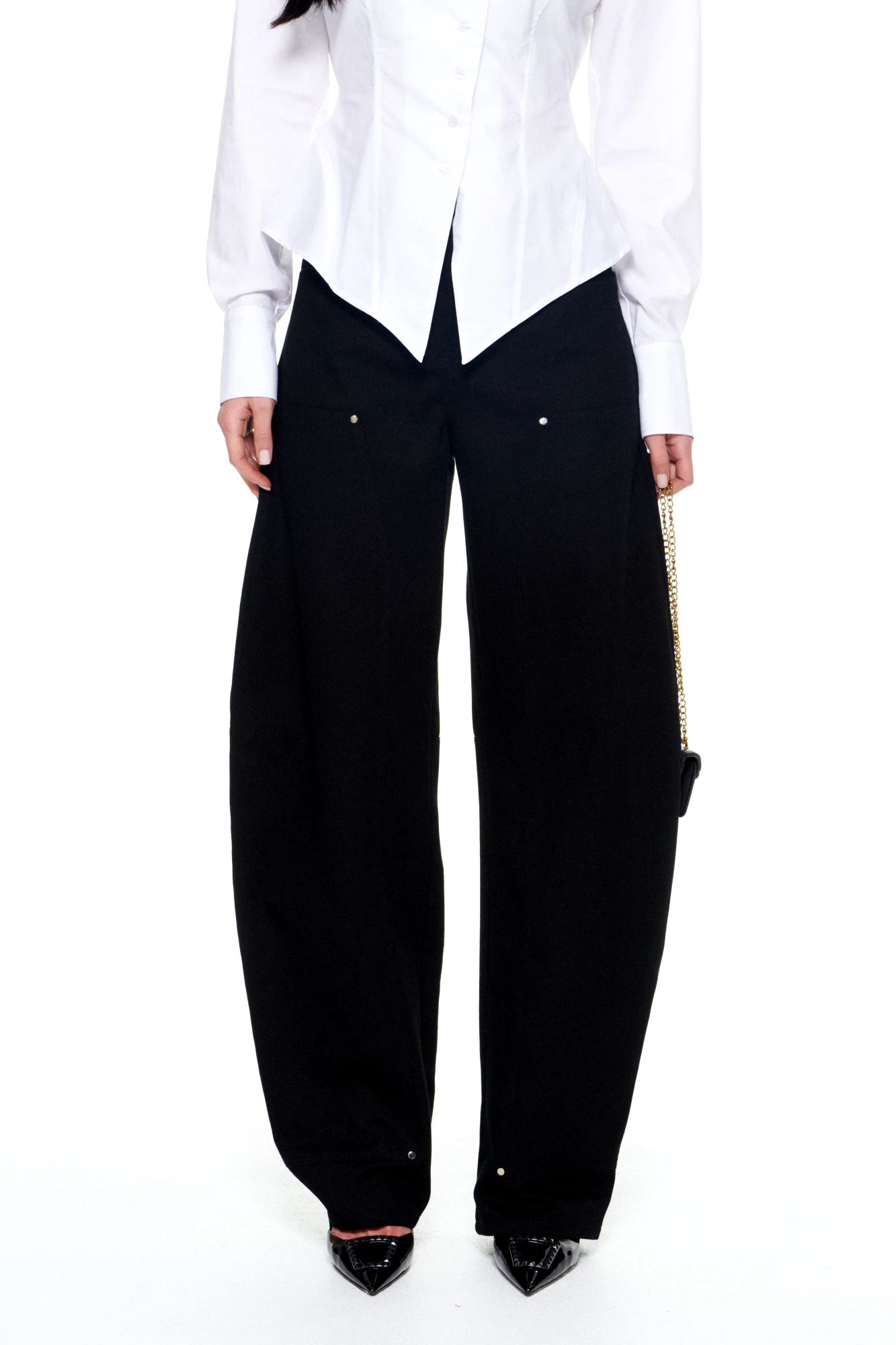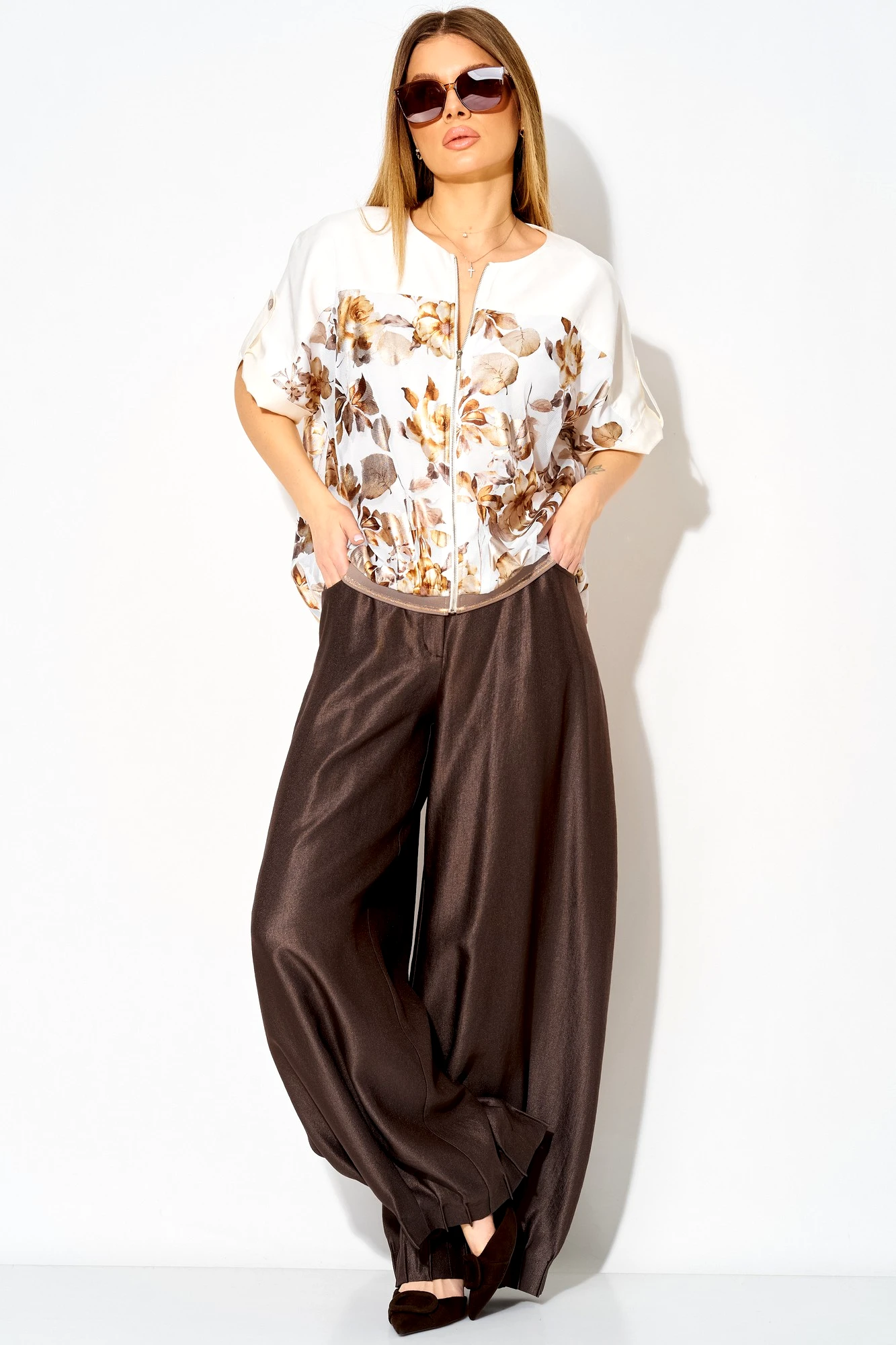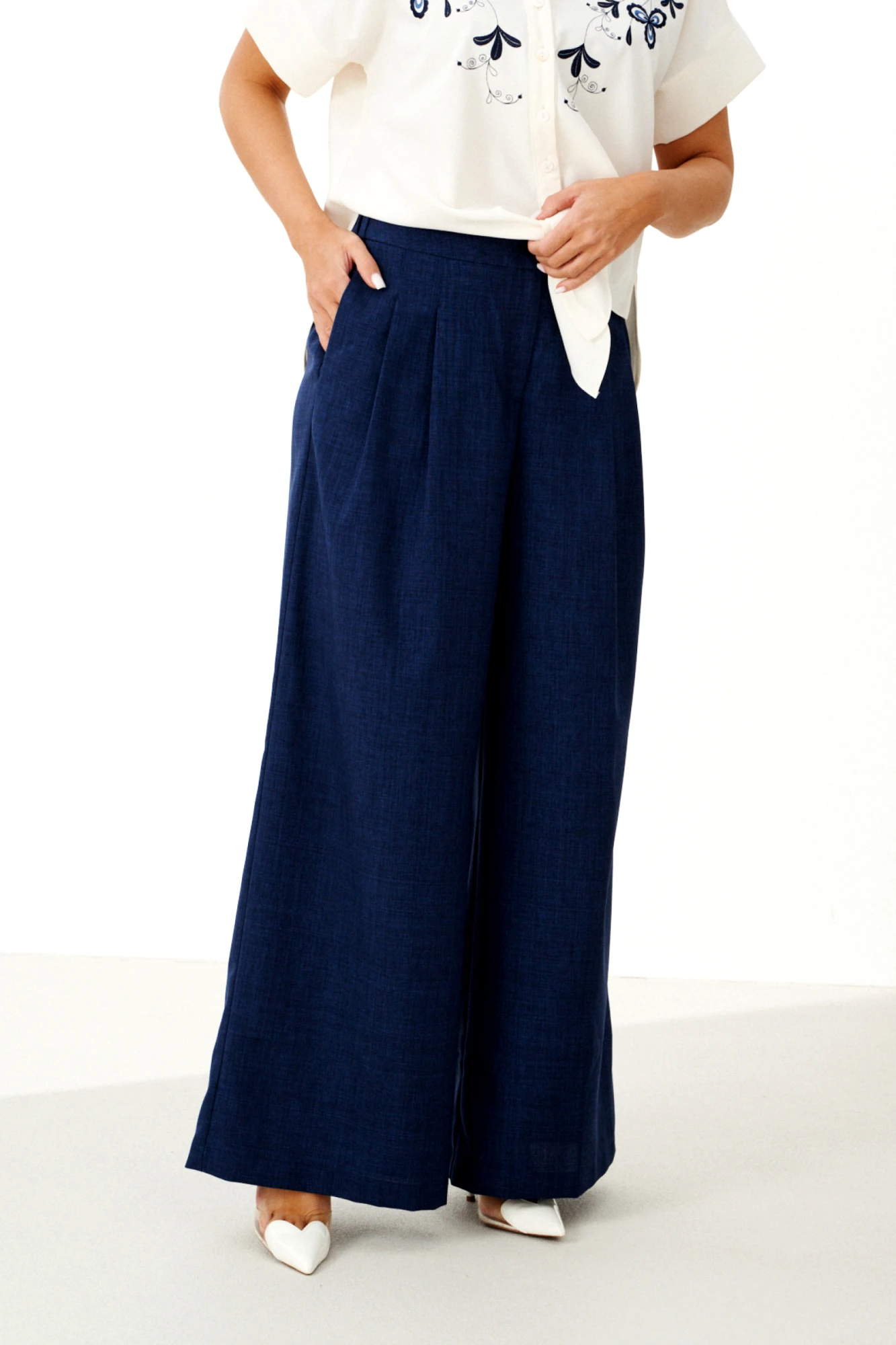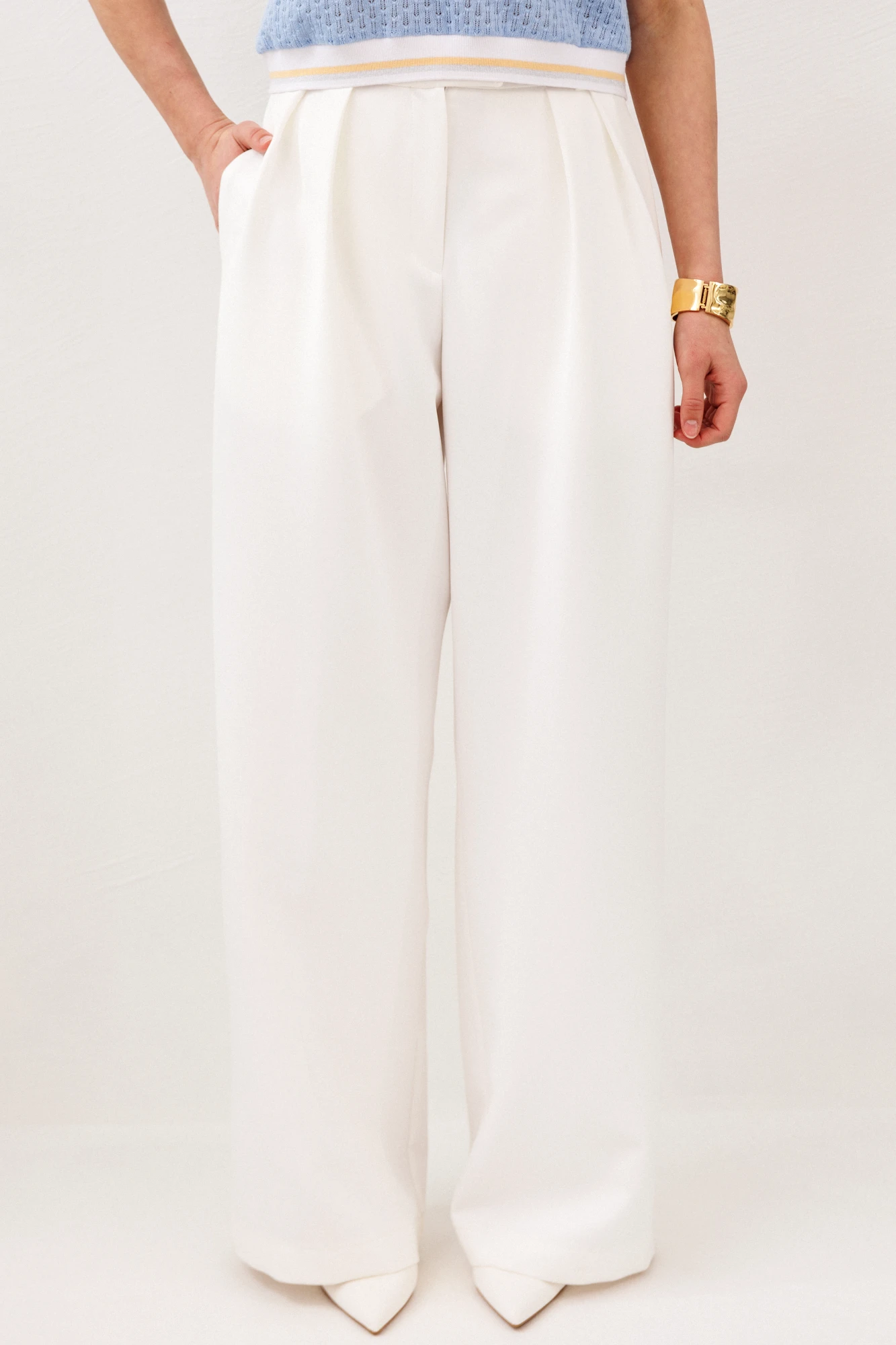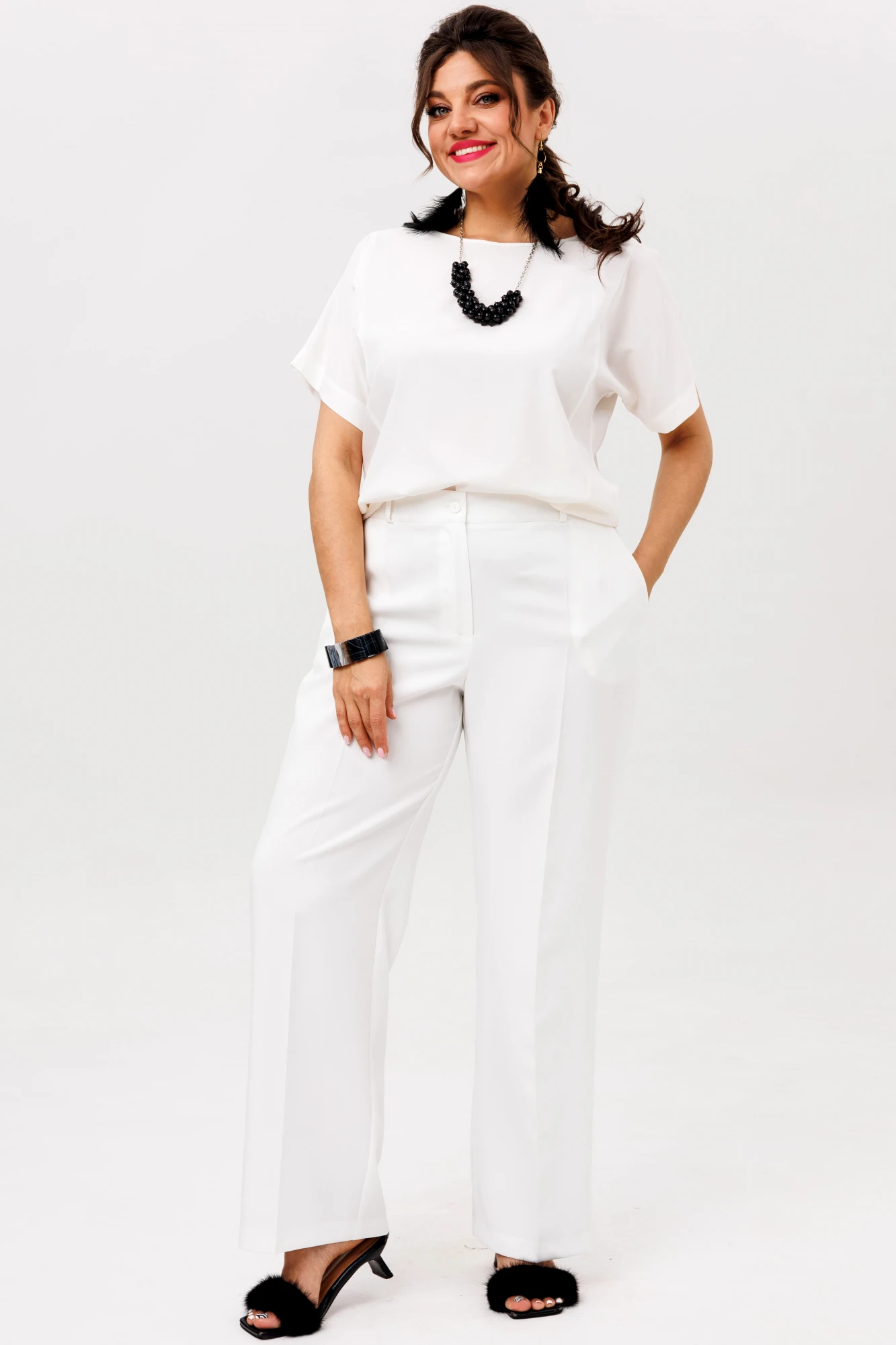 Модные широкие брюки способны визуально скрыть недостатки телосложения, такие как полные бедра или широкая талия. Это фасон классических брюк прямого покроя, без лишних декоративных деталей. Обычно такие брюки выбирают уверенные в себе женщины. Эти брюки хорошо смотрятся с обувью на каблуке. С таким фасоном отлично выглядит заправленная блуза с пиджаком. Такую же модель белого цвета белого цвета можно надеть не только на важные переговоры, но и на праздничное мероприятие. Счастливые обладательницы красивых форм и безупречного тела могут позволить себе молодежные, обтягивающие брюки с заниженной талией. Такие модели можно часто видеть на «Голливудских звездах». Как правило, эти брюки идеально вписываются в любой комплект одежды. Этот фасон хорошо смотрится с массивной, вязаной кофтой, пальто и куртками. Сейчас стало модно украшать такие модели пиджаками с массивными рисунками и легкой, повседневной обувью.