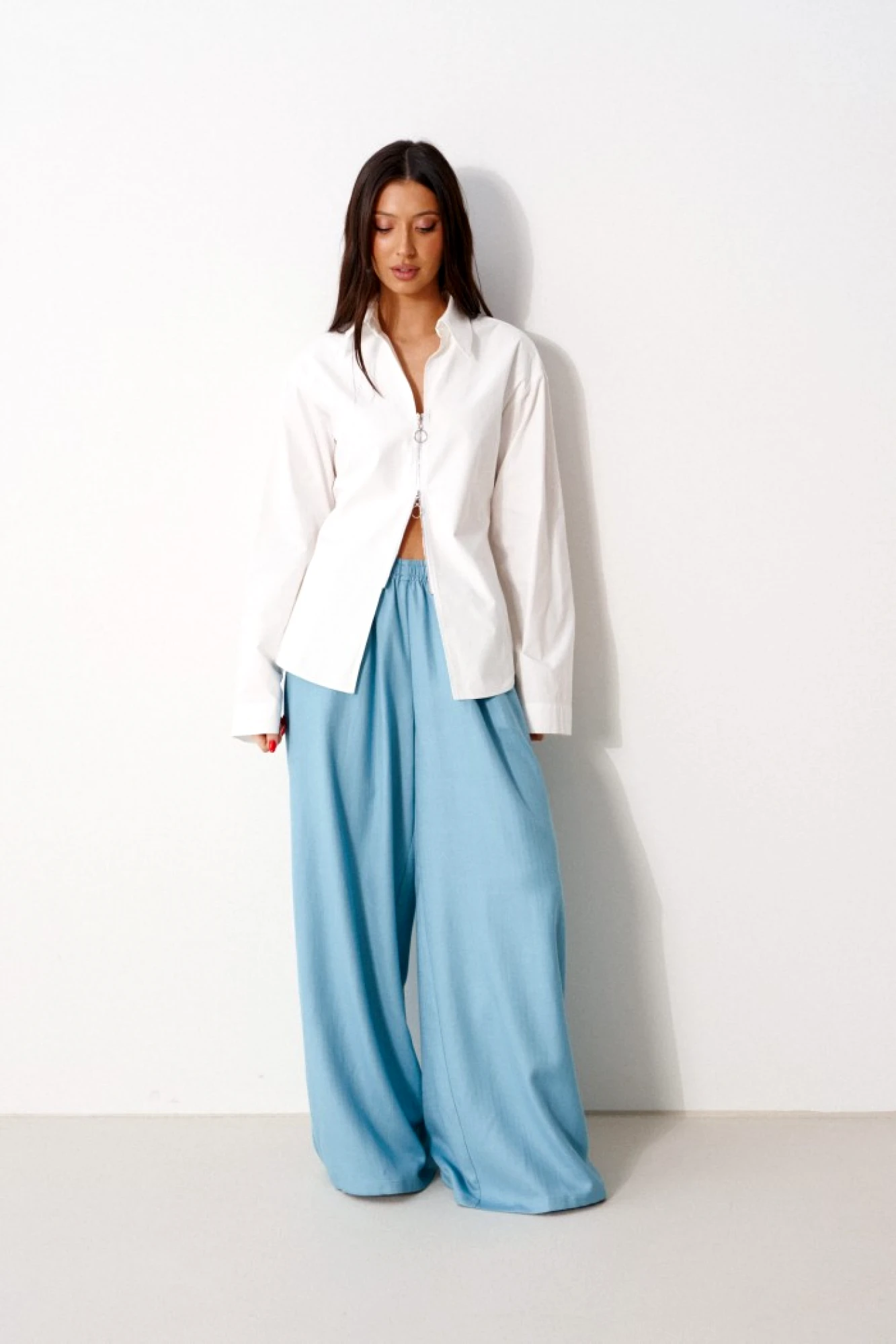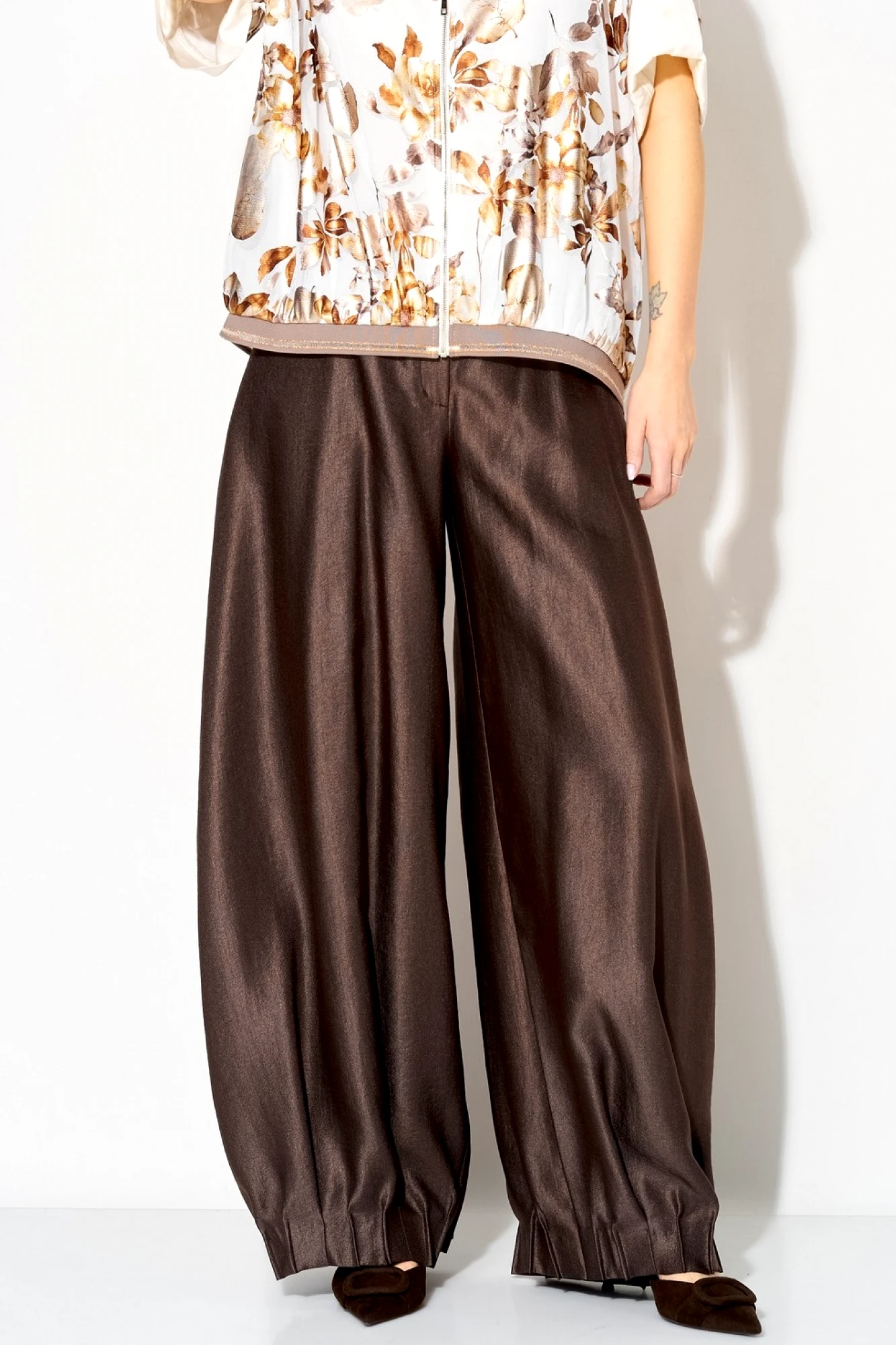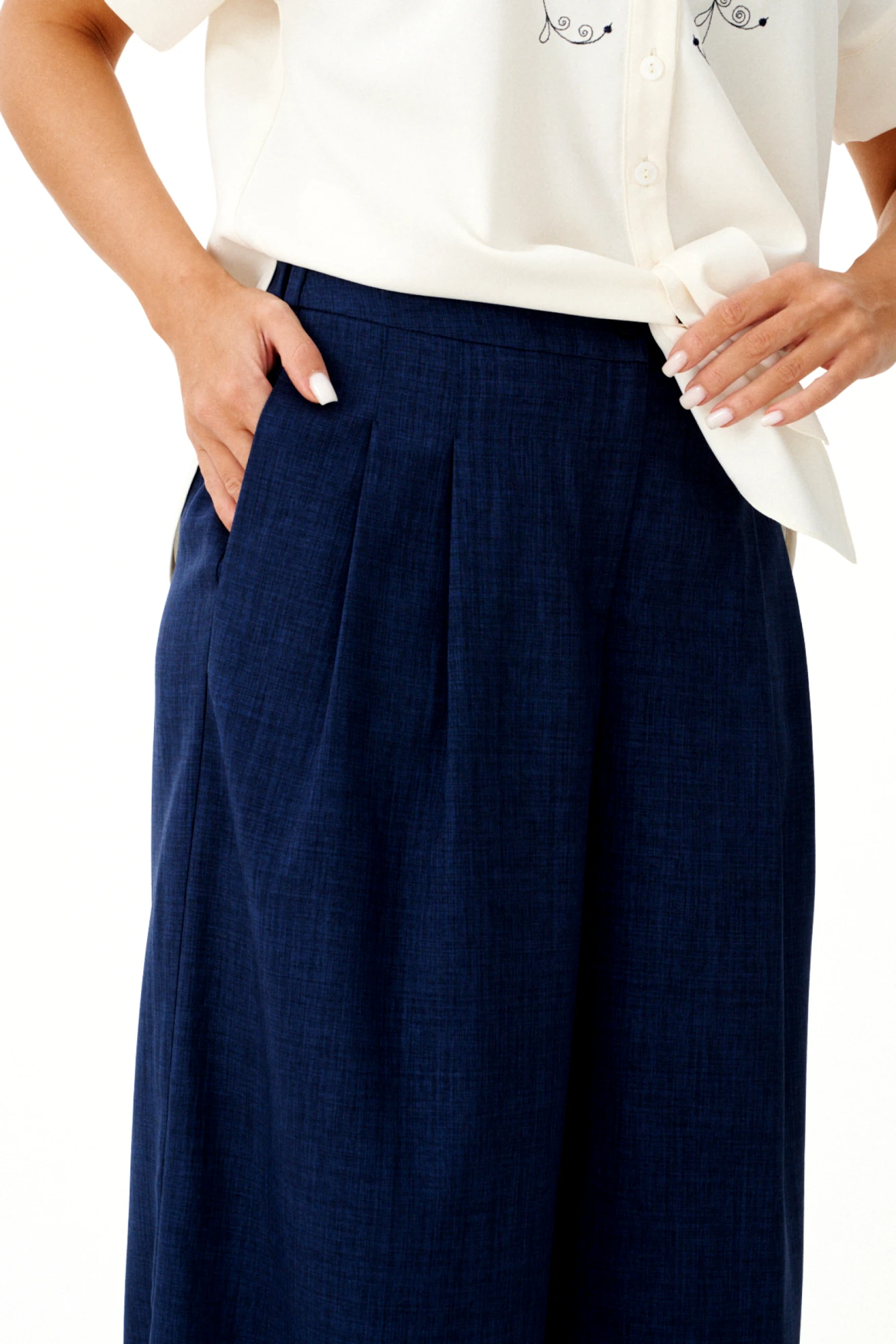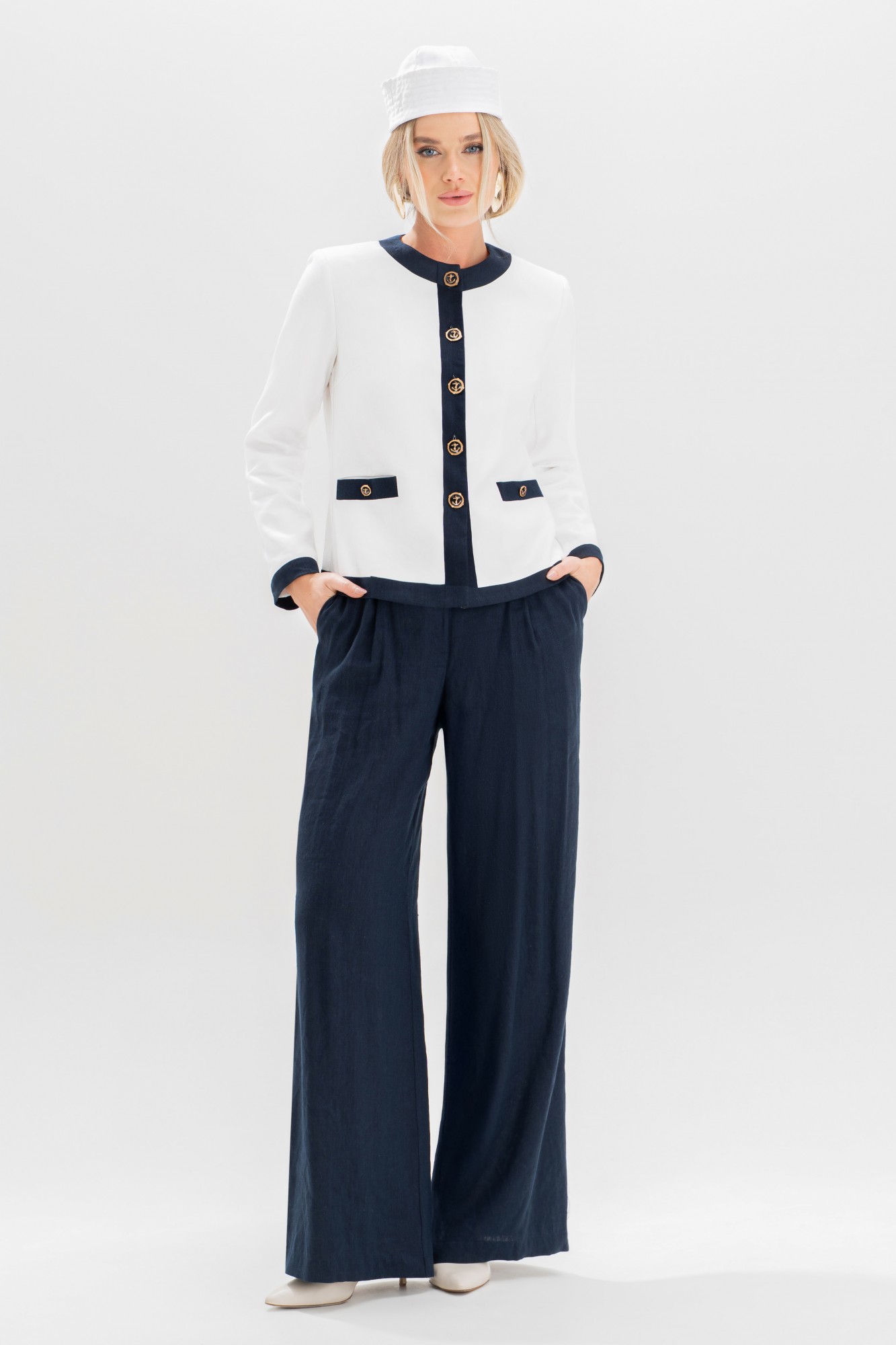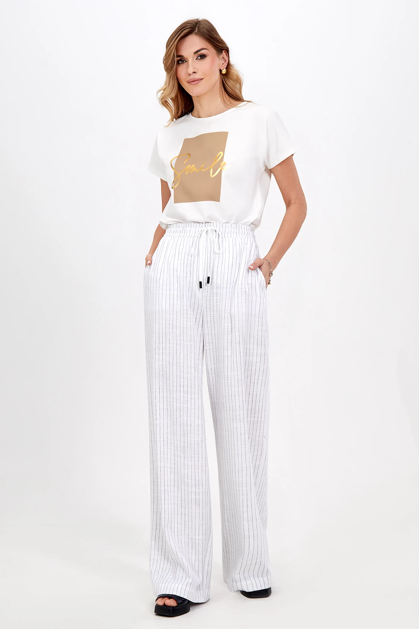 Модные широкие брюки способны визуально скрыть недостатки телосложения, такие как полные бедра или широкая талия. Это фасон классических брюк прямого покроя, без лишних декоративных деталей. Обычно такие брюки выбирают уверенные в себе женщины. Эти брюки хорошо смотрятся с обувью на каблуке. С таким фасоном отлично выглядит заправленная блуза с пиджаком. Такую же модель белого цвета белого цвета можно надеть не только на важные переговоры, но и на праздничное мероприятие. Счастливые обладательницы красивых форм и безупречного тела могут позволить себе молодежные, обтягивающие брюки с заниженной талией. Такие модели можно часто видеть на «Голливудских звездах». Как правило, эти брюки идеально вписываются в любой комплект одежды. Этот фасон хорошо смотрится с массивной, вязаной кофтой, пальто и куртками. Сейчас стало модно украшать такие модели пиджаками с массивными рисунками и легкой, повседневной обувью.