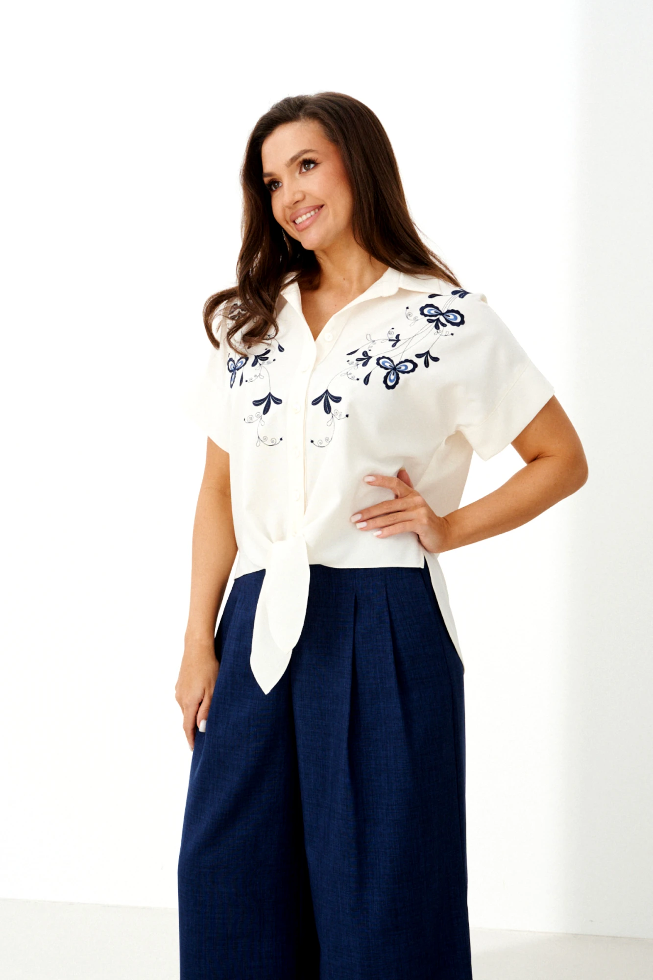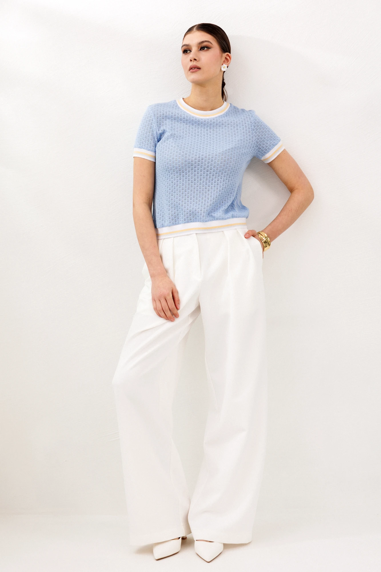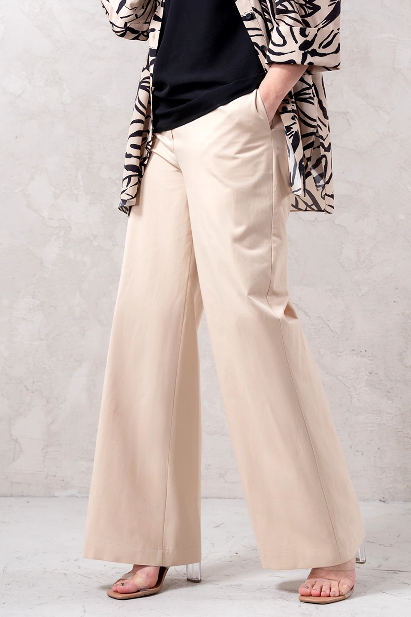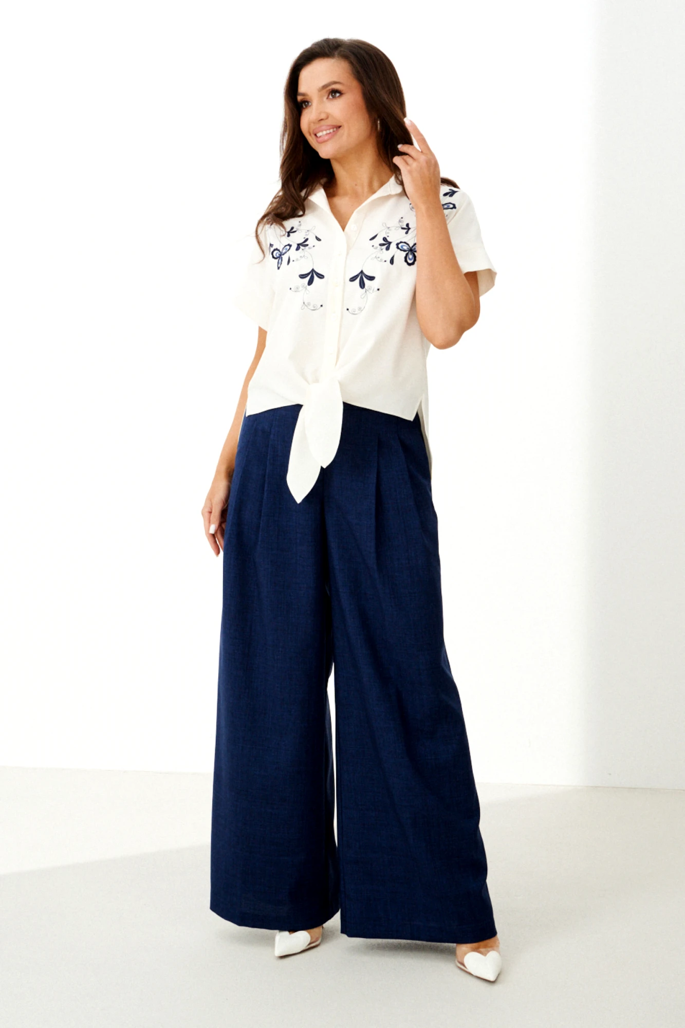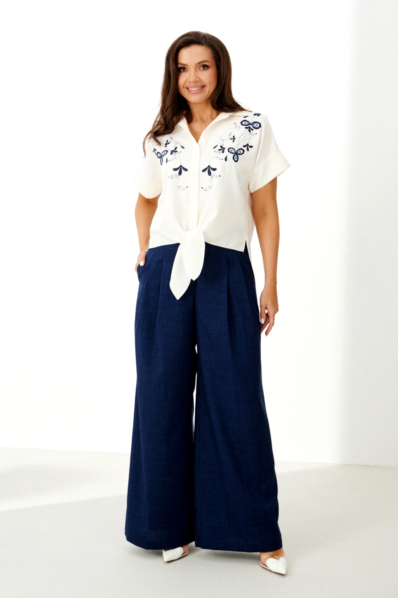 Модные широкие брюки способны визуально скрыть недостатки телосложения, такие как полные бедра или широкая талия. Это фасон классических брюк прямого покроя, без лишних декоративных деталей. Обычно такие брюки выбирают уверенные в себе женщины. Эти брюки хорошо смотрятся с обувью на каблуке. С таким фасоном отлично выглядит заправленная блуза с пиджаком. Такую же модель белого цвета белого цвета можно надеть не только на важные переговоры, но и на праздничное мероприятие. Счастливые обладательницы красивых форм и безупречного тела могут позволить себе молодежные, обтягивающие брюки с заниженной талией. Такие модели можно часто видеть на «Голливудских звездах». Как правило, эти брюки идеально вписываются в любой комплект одежды. Этот фасон хорошо смотрится с массивной, вязаной кофтой, пальто и куртками. Сейчас стало модно украшать такие модели пиджаками с массивными рисунками и легкой, повседневной обувью.
