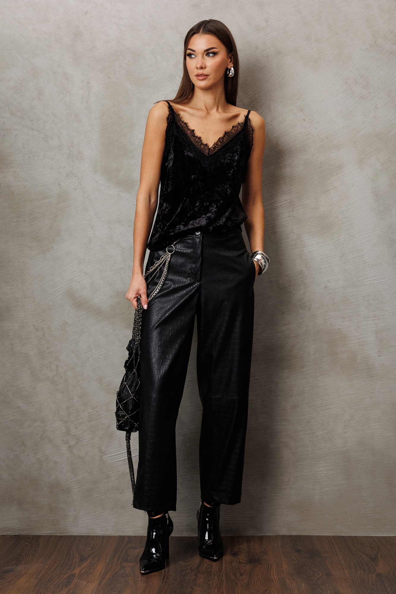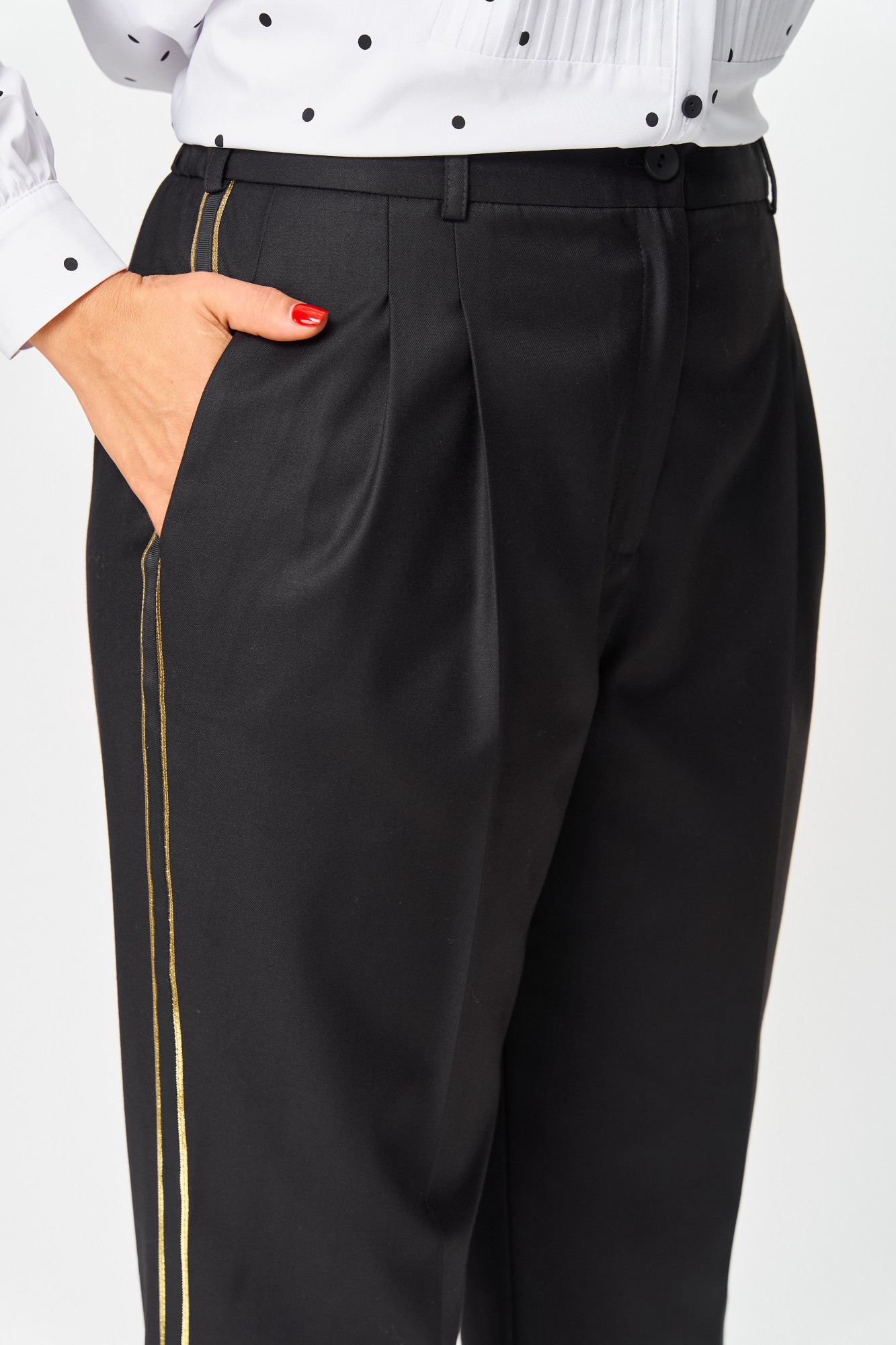 Традиционные брюки с завышенной талией не собираются покидать пик своей популярности уже не первый год. Подойдут любой девушке, но, правда, такой фасон лучше сочетать с облегающим верхом. Осенью и зимой принято носить такие брюки с короткими куртками. И конечно же, есть правило, для девушек с широкими бедрами: не стоит заправлять свитер и блузу в брюки.