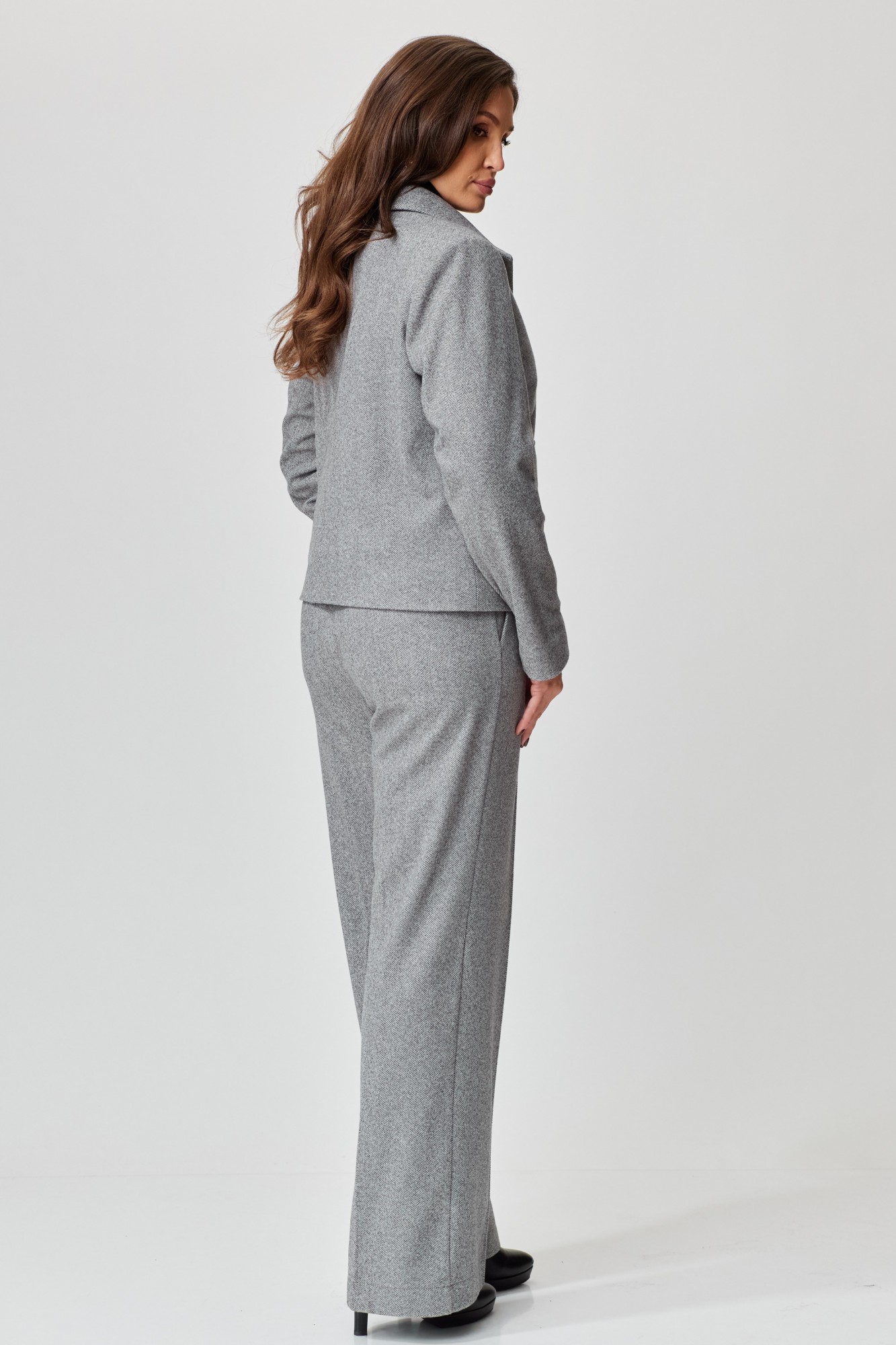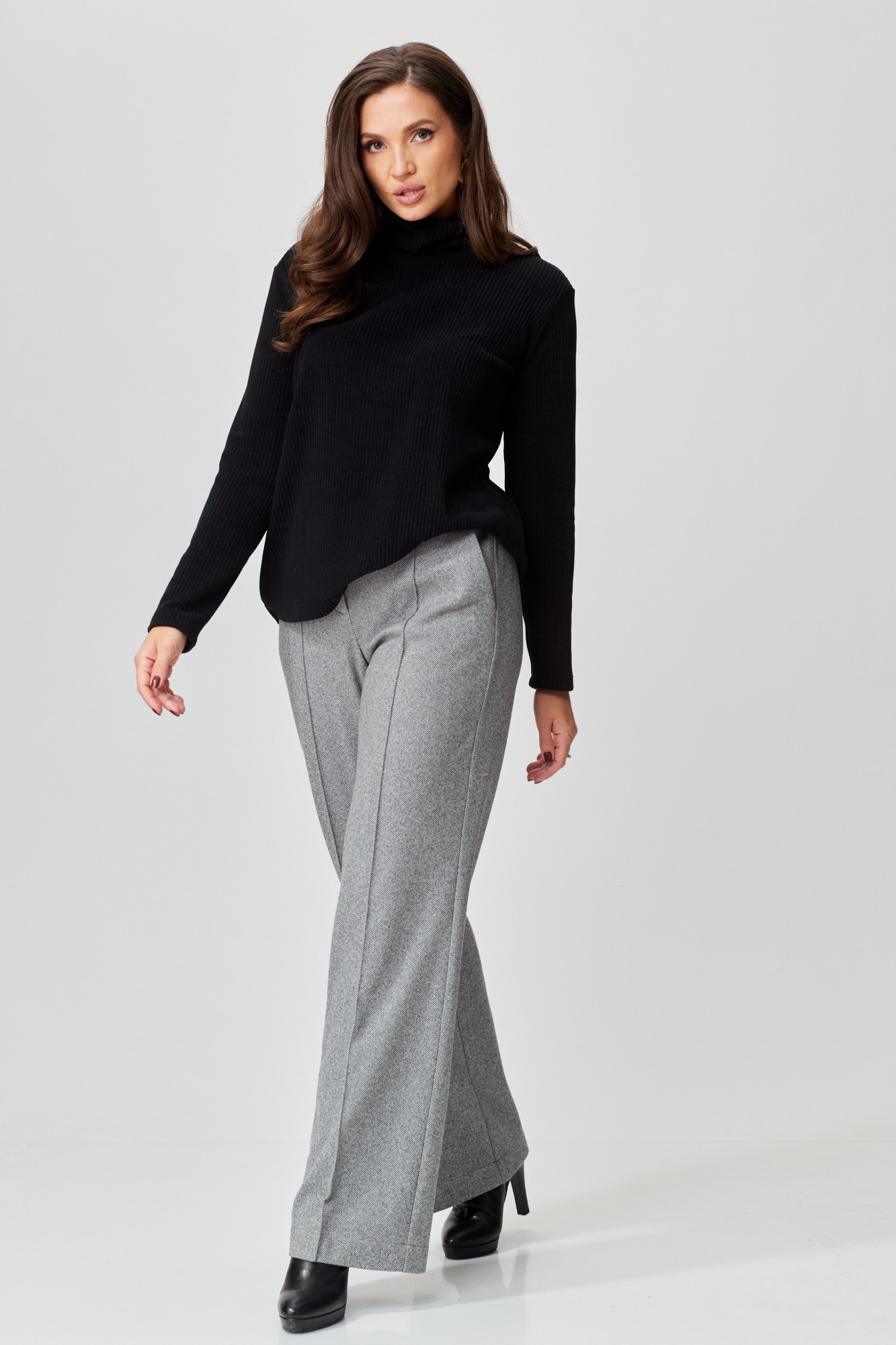 Брюки прямые палаццо, по переду с карманами, с застежкой на тесьму-молнию, задние половинки с талевыми вытачками. Изделие на поясе с эластичной резинкой сзади