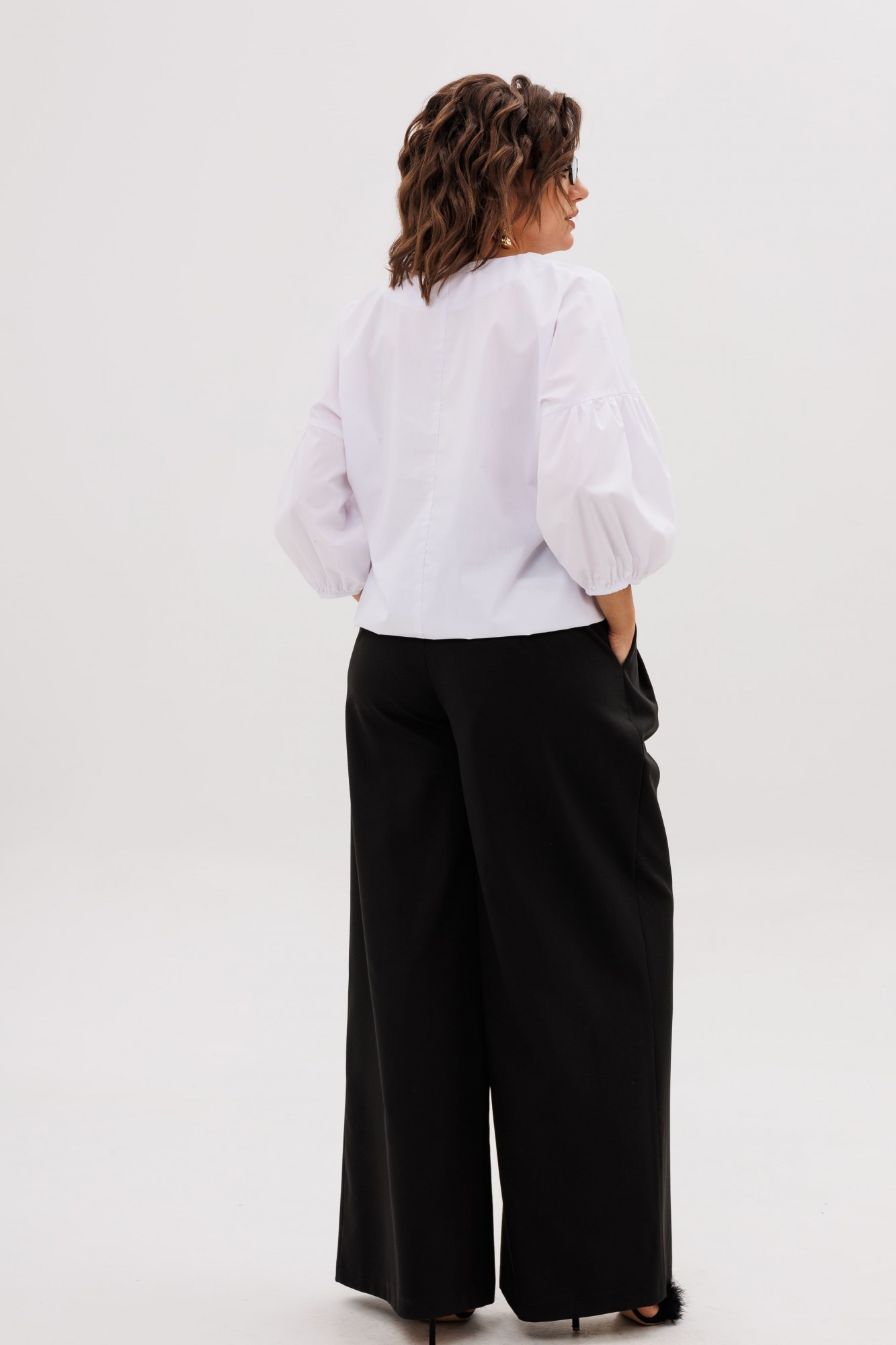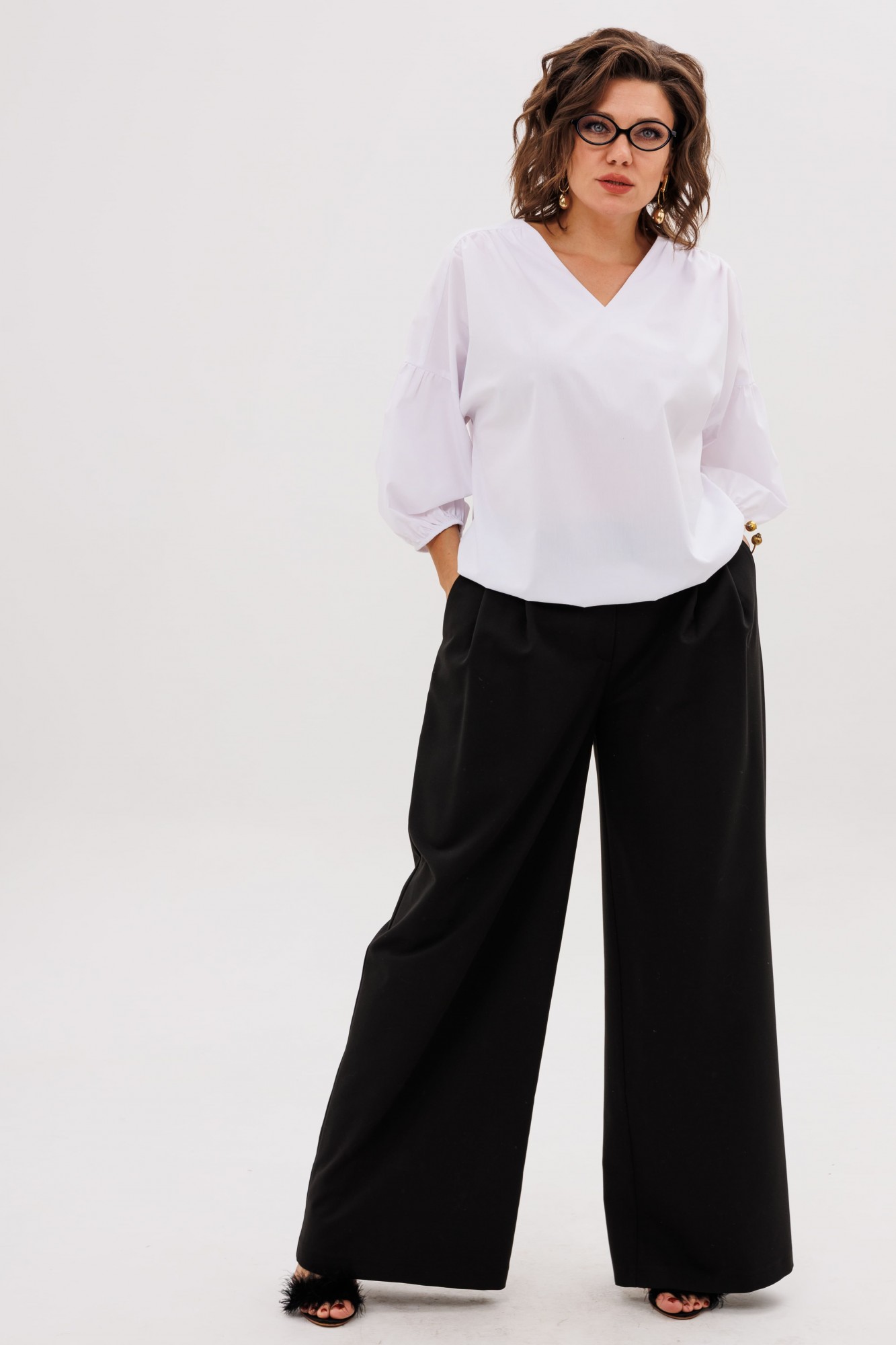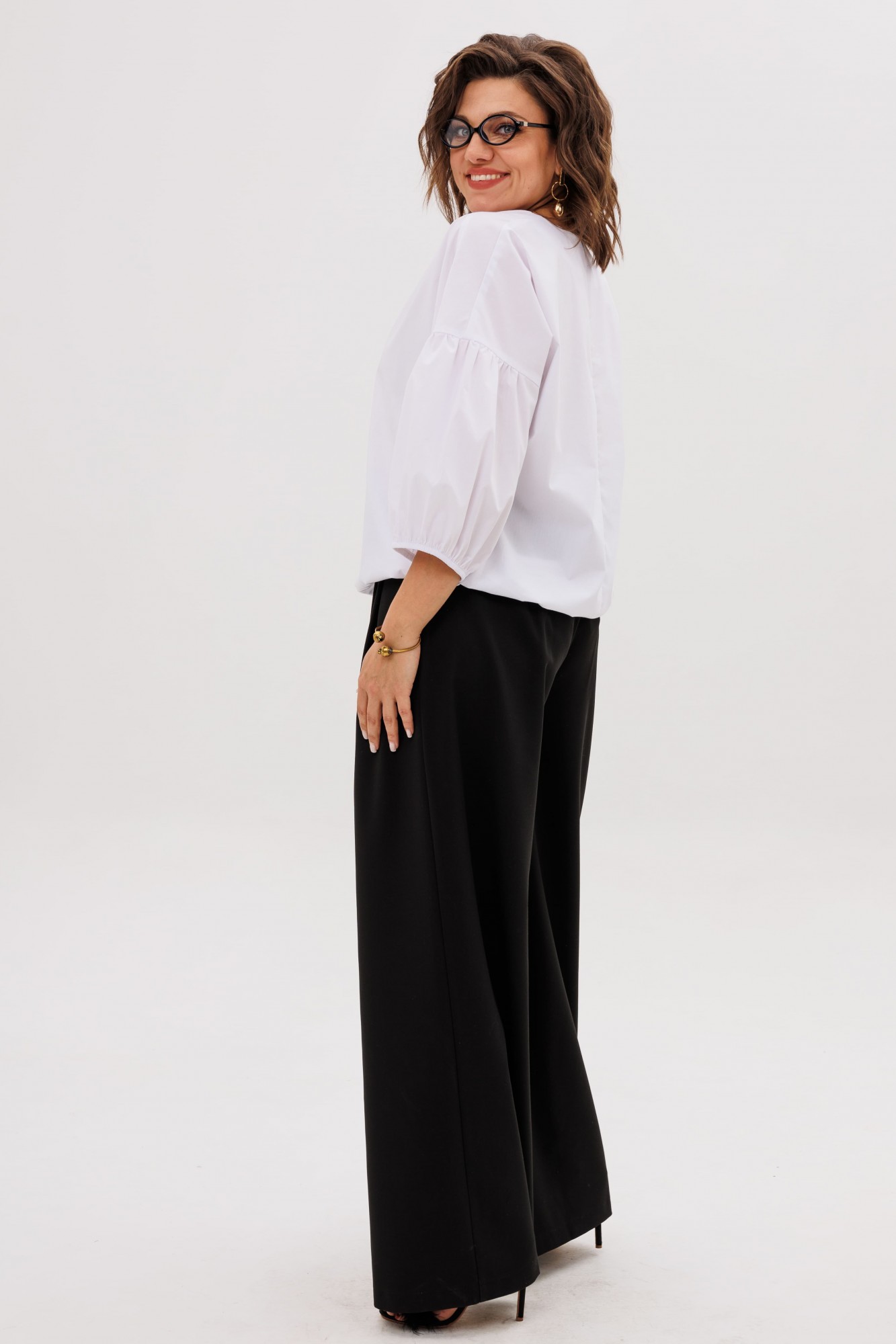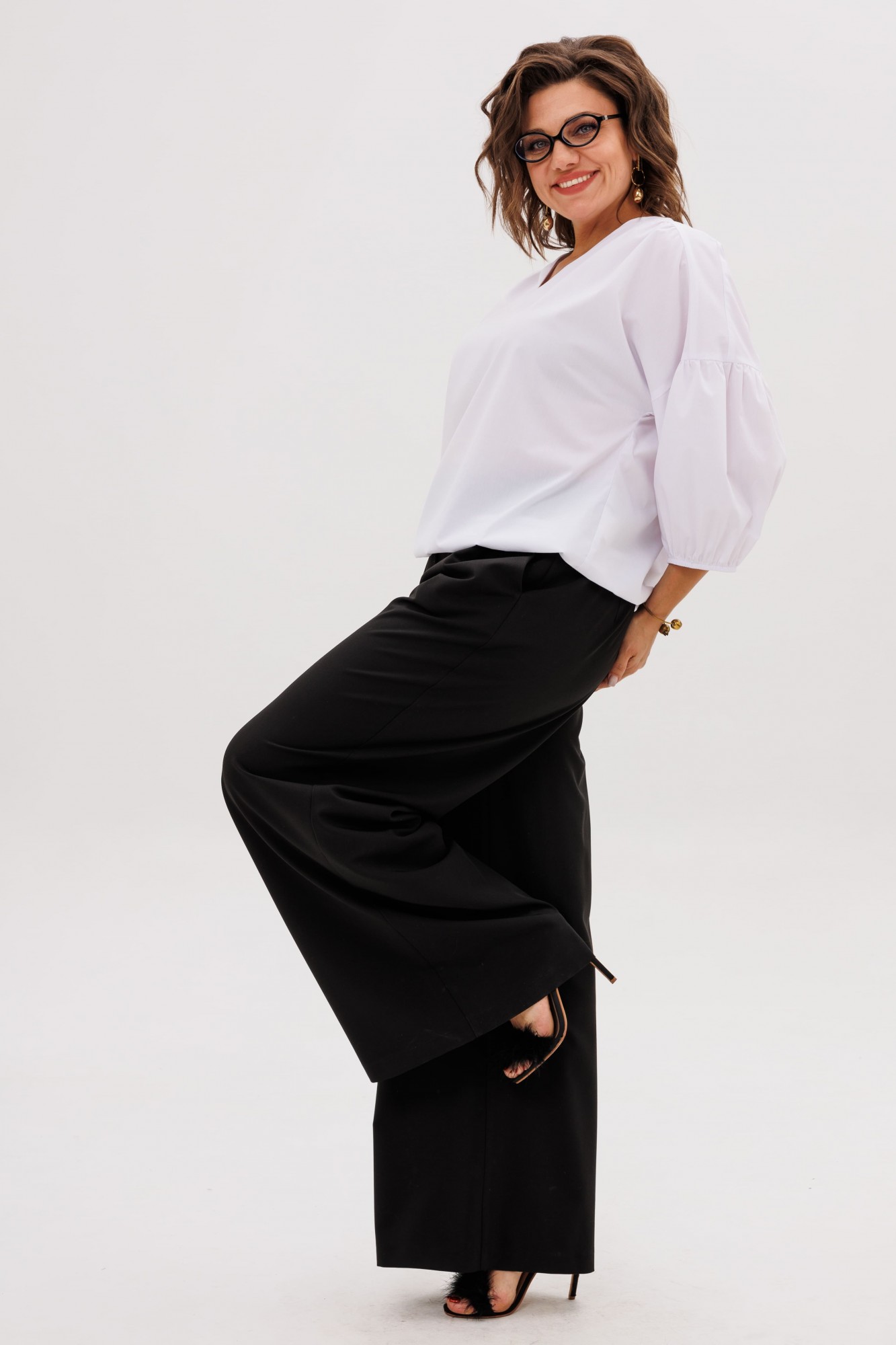Элегантные брюки-палаццо с современным силуэтом. Модель отличается безупречным кроем с высокой посадкой, который подчеркивает талию и создает выразительный удлиненный контур. Широкие, ниспадающие мягкими складками штанины дарят образу воздушность и непринужденную пластику.