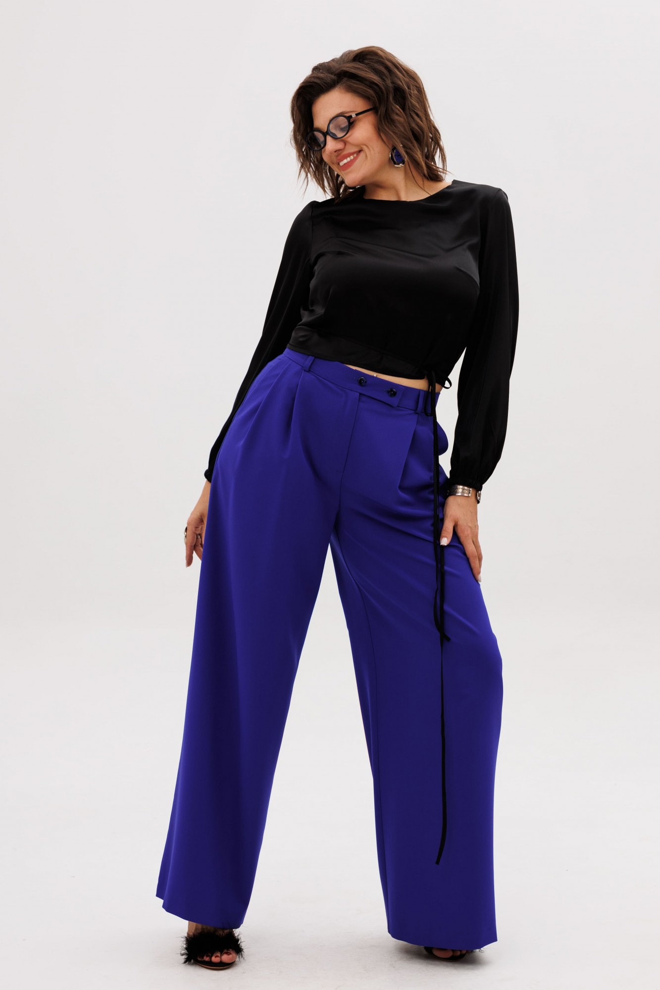 Элегантные брюки-палаццо с современным силуэтом. Модель отличается безупречным кроем с высокой посадкой, который подчеркивает талию и создает выразительный удлиненный контур. Широкие, ниспадающие мягкими складками штанины дарят образу воздушность и непринужденную пластику.