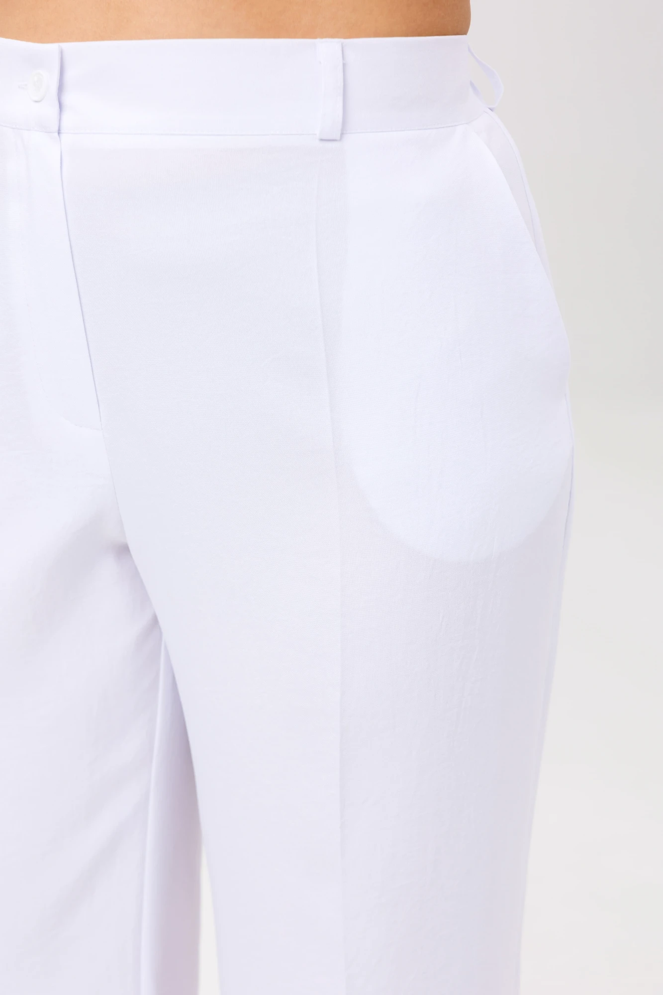 Плавное сужение к низу гармонично балансирует с объёмом в бёдрах, а эластичная вставка на поясе обеспечивает идеальную посадку с комфортом. Удобная застёжка и продуманное расположение швов создают безупречную линию, а свободный крой в области икр гарантирует, что брюки будут идеально сидеть, не обтягивая и не сковывая движений.
