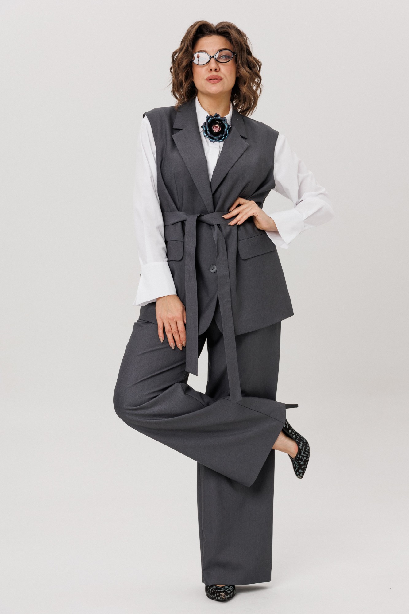 Брюки палаццо – это воплощение дерзкой элегантности и безупречного стиля. Широкие, струящиеся силуэты, мягко ниспадающие от талии, создают эффект роскошного движения с каждым шагом, серый цвет – официальность и в тоже время легкость. Идеальная посадка достигнута за счет эластичной резинки по спинке, которая мягко облегает фигуру, подчеркивая линию талии и обеспечивая комфорт в течение всего дня. Широкие штанины визуально удлиняют ноги, добавляя образу женственности и грации. Функциональность встречает стиль – два аккуратных кармана не только добавляют удобства, но и придают брюкам современный, слегка бунтарский шарм. Ткань высшего качества мягко обволакивает тело, сохраняя форму и безупречный вид даже при активном движении. Эти брюки – выбор тех, кто не боится выделяться. Они сочетают в себе дерзость и утонченность, смелость и элегантность. Наденьте их с облегающим топом и каблуками – и вы покорите вечерний город. Или дополните объемным свитером и массивными украшениями – для эффектного casual-образа с намёком на haute couture. На модели в брюках цвета “пепельный вулкан” блуза 1203.1, жилет 1502. Также, можно собрать образ приобретая костюм 1501 (брюки и жилет). Рост модели 173 см, размер 52. Для того чтобы подобрать для себя идеальный размер, обязательно сверяйтесь с замерами в описании, мы их делаем индивидуально к каждому изделию.