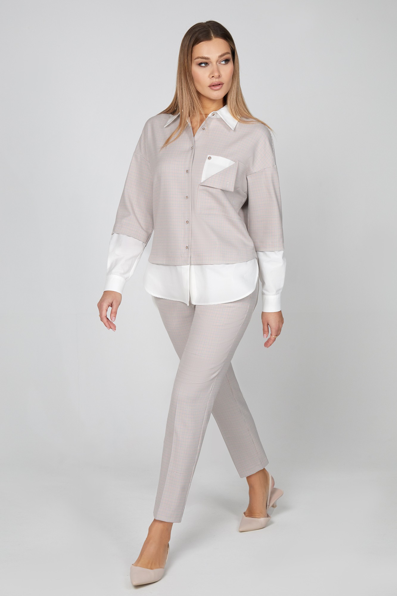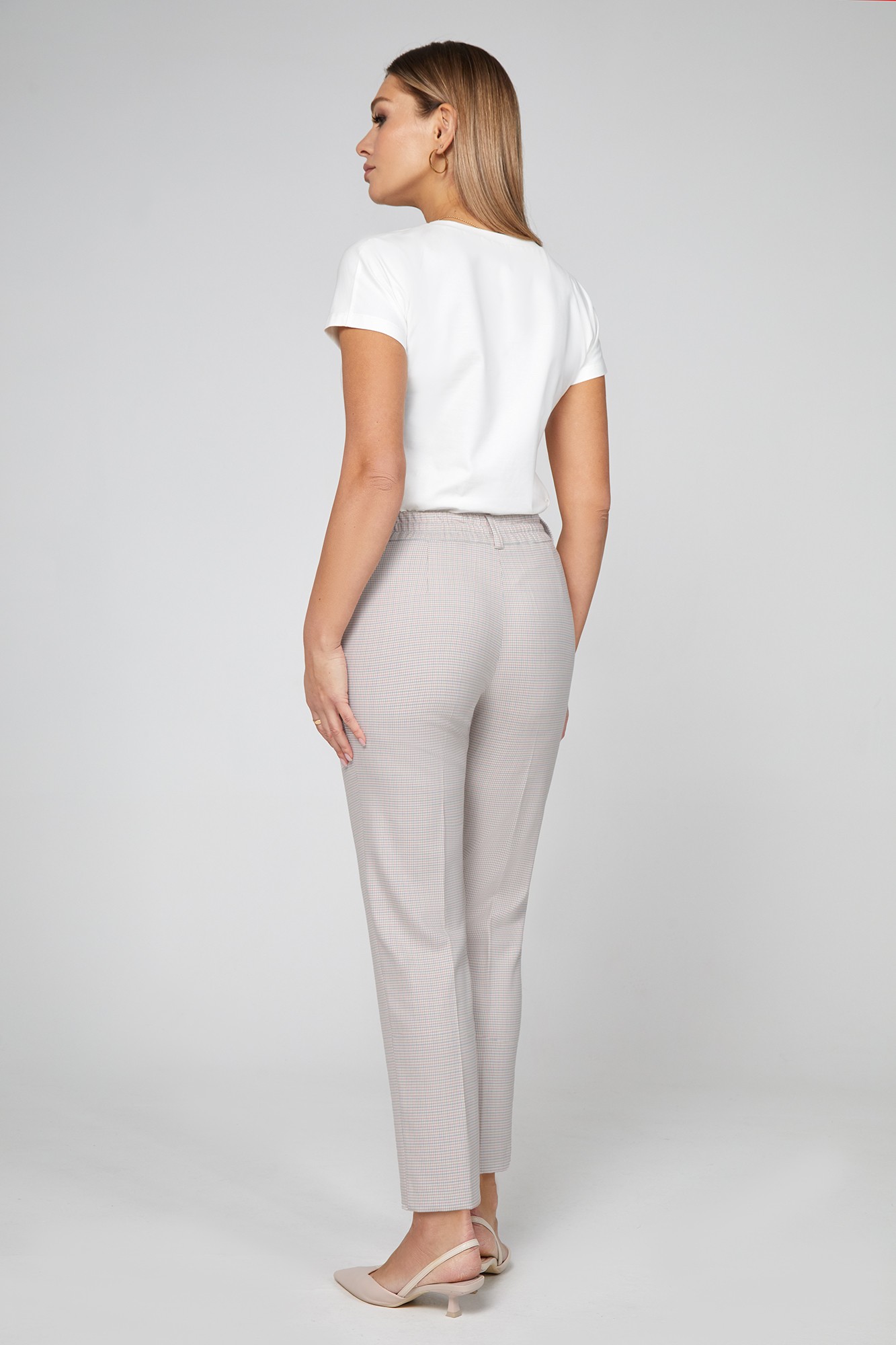 Лаконичные брюки со стрелками выполнены из приятной к телу испанской ткани с добавлением вискозы с интересным контрастным узором в виде мелкой гусиной лапки. Модель на притачном поясе с застежкой на молнию и петлю- пуговицу и дополнена кулисой и практичными вертикальными карманами с листочками. Эластичная часть пояса обеспечивает комфортную посадку на талии. Брюки отлично комплектуются с рубашкой или свитшотом из коллекции, формируя стильный сет на каждый день.