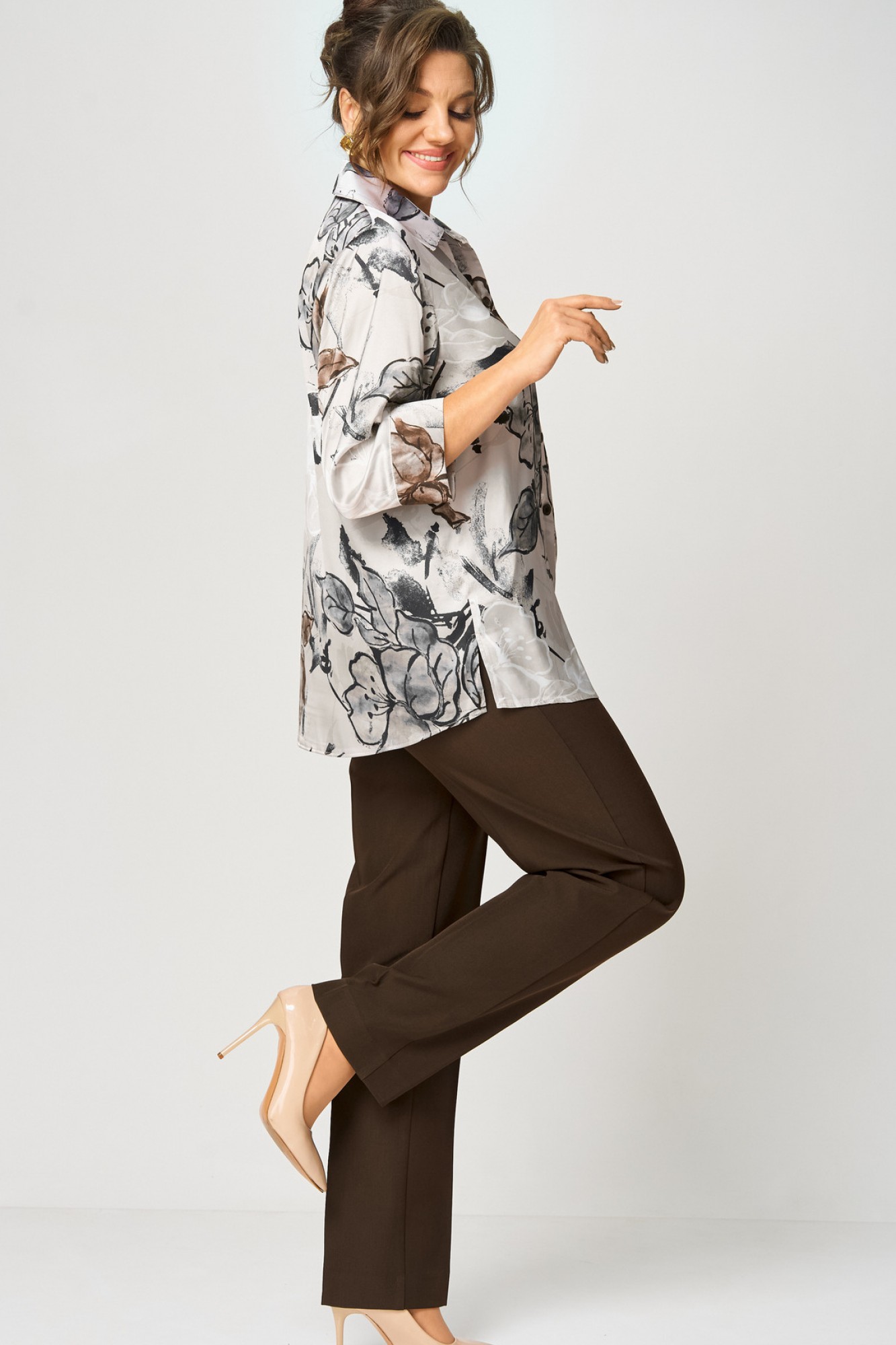 Брюки классические прямые с заутюженными стрелками, которые визуально вытягивают силуэт. Скрытая резинка по бокам гарантирует невероятный комфорт, сохраняя безупречный вид спереди. По переду обработаны карманы с отрезным бочком, застежка на тесьму-молнию и 1 пуговицу. На задних половинках обработаны вытачки и имитация карманов с листочкой.