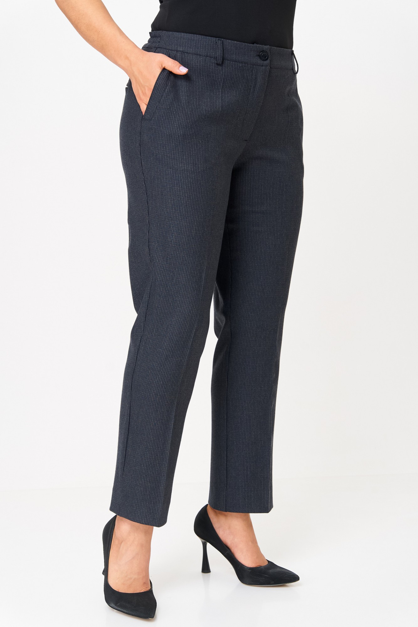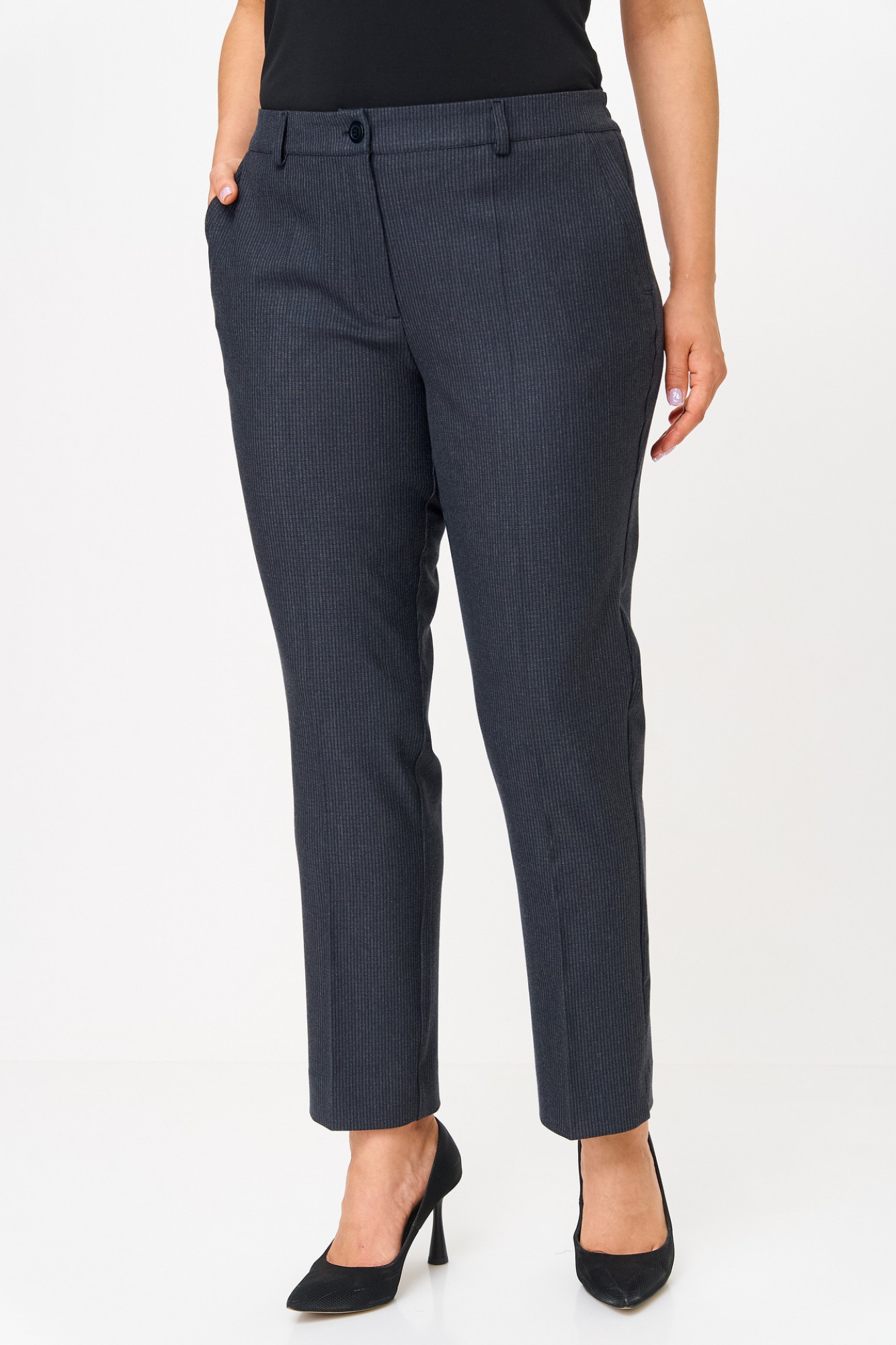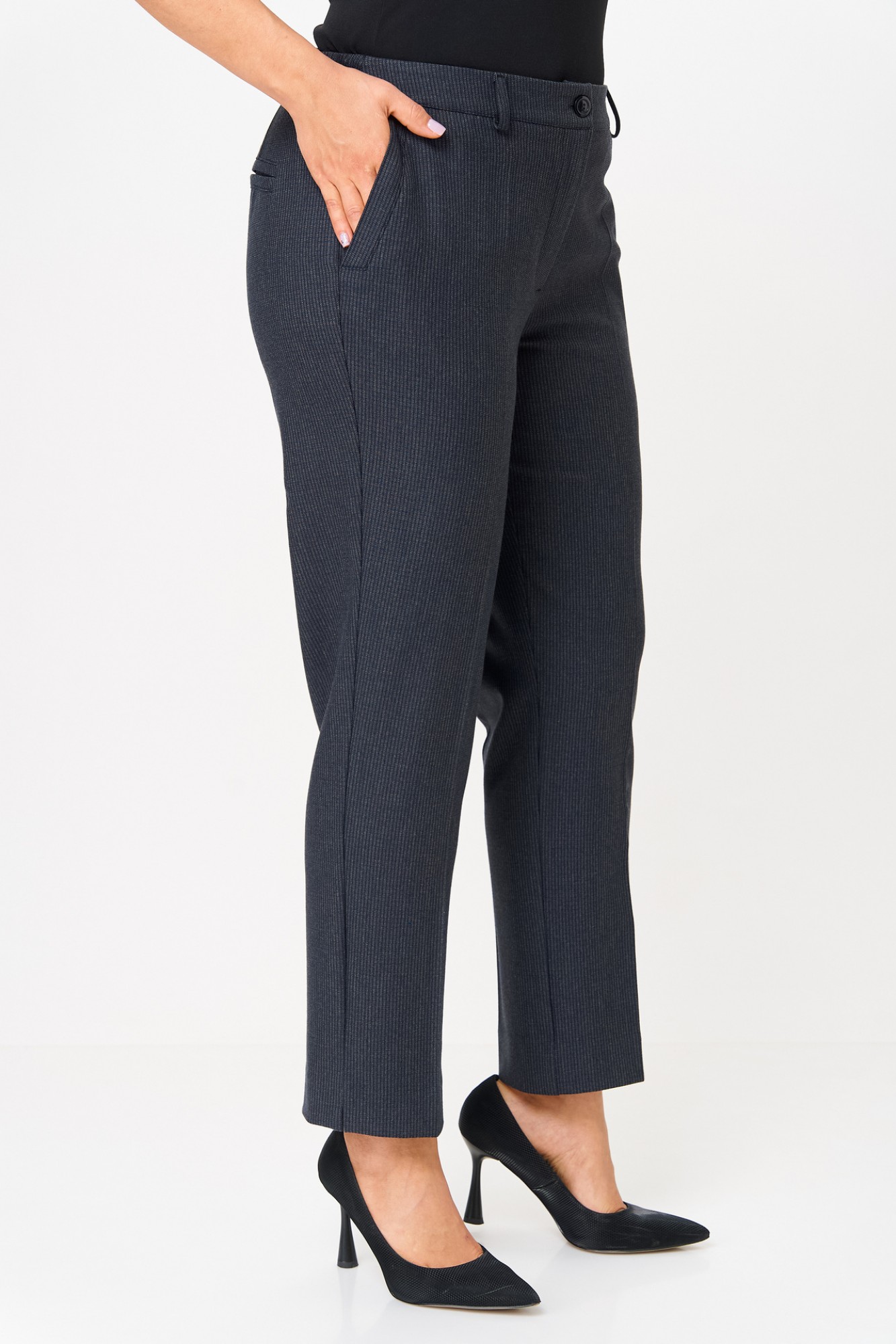 Идеальные брюки для холодного сезона. Прямой крой, плавно сужающийся к низу, и четкие стрелки создают элегантный силуэт. Плотная ткань согреет, а скрытая резинка по бокам обеспечит идеальную посадку без дискомфорта. Стильные разрезы по низу и аккуратная имитация карманов сзади завершают безупречный образ. Это не просто классические брюки, а усовершенствованная модель для холодного времени года.