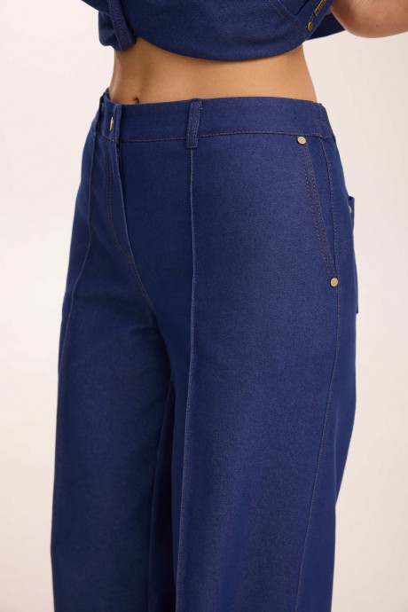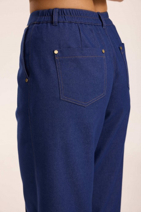 Брюки женские, расширенные. По переду обработана застежка на молнию, обработаны карманы с наклонным входом, отстрочены стрелки. На задних половинках брюк застрочены вытачки, настрочены накладные карманы, декорированные хольнитенами. Верх обработан широким притачным поясом (частично на резинке), застегивающимся на петлю и пуговицу. Декоративные элементы и фурнитура могут отличаться от заявленных на фото. Цвет материала может отличаться по тону в зависимости от настроек вашего монитора!