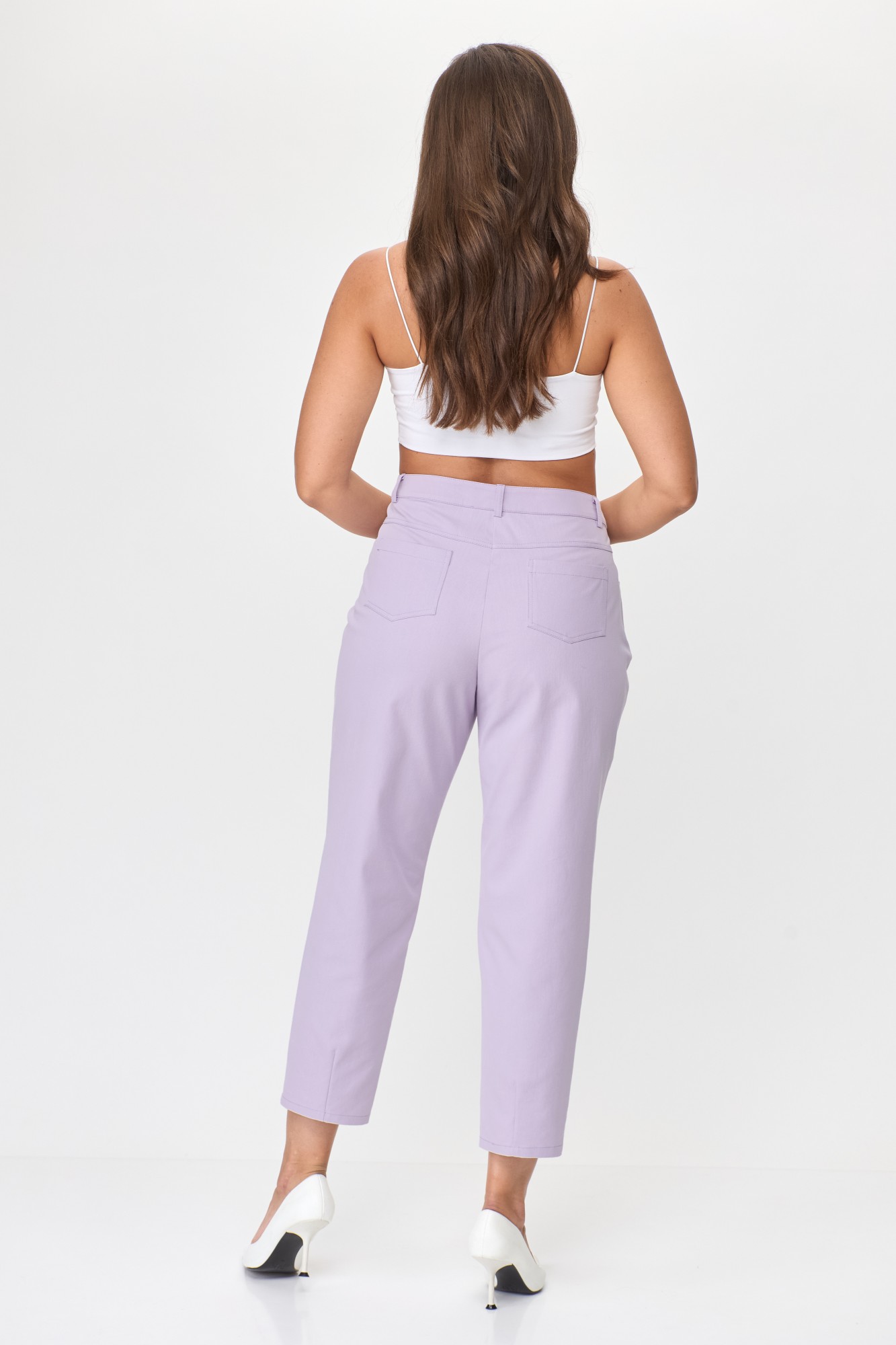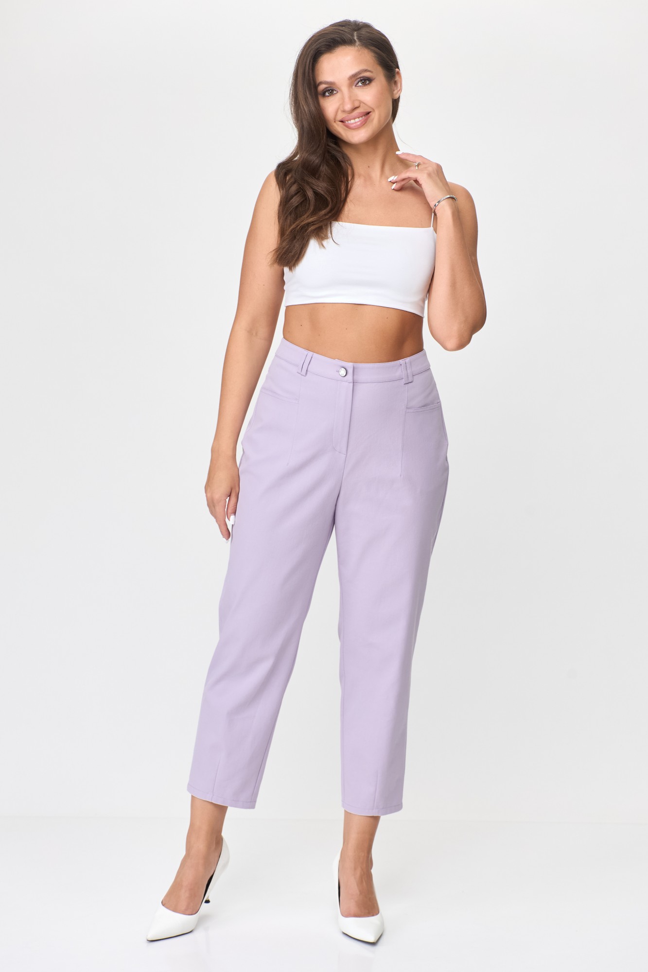 Представляем Вам женские брюки свободного силуэта, укороченные и зауженные к низу. Талия оформлена поясом-обтачкой, а застежка выполнена на тесьму молнию длиной 18см. Брюки имеют цельнокроеный гульфик и отрезной откосок, который зафиксирован отделочной строчкой шириной 3см. По передней половинке расположена талиевая вытачка, в которую входит бочок и подкладка кармана. Бочок отрезной. Задняя половина брюк украшена фигурной кокеткой, и имеет два накладных кармана. По низу брюк выполнены вытачки, а пояс застегивается на металлическую пуговицу. Эти брюки идеальны для создания стильных и элегантных образов. Они подойдут для офисных будней, деловых встреч или прогулок по городу. Брюки, женские брюки, свободного силуэта, укороченные, зауженные к низу, пояс-обтачка, талиевая вытачка, фигурная кокетка, накладные карманы, металлическая пуговица - все это делает эти брюки универсальными и удобными в носке. Не упустите возможность приобрести этот прекрасный товар и добавить его в свой гардероб!