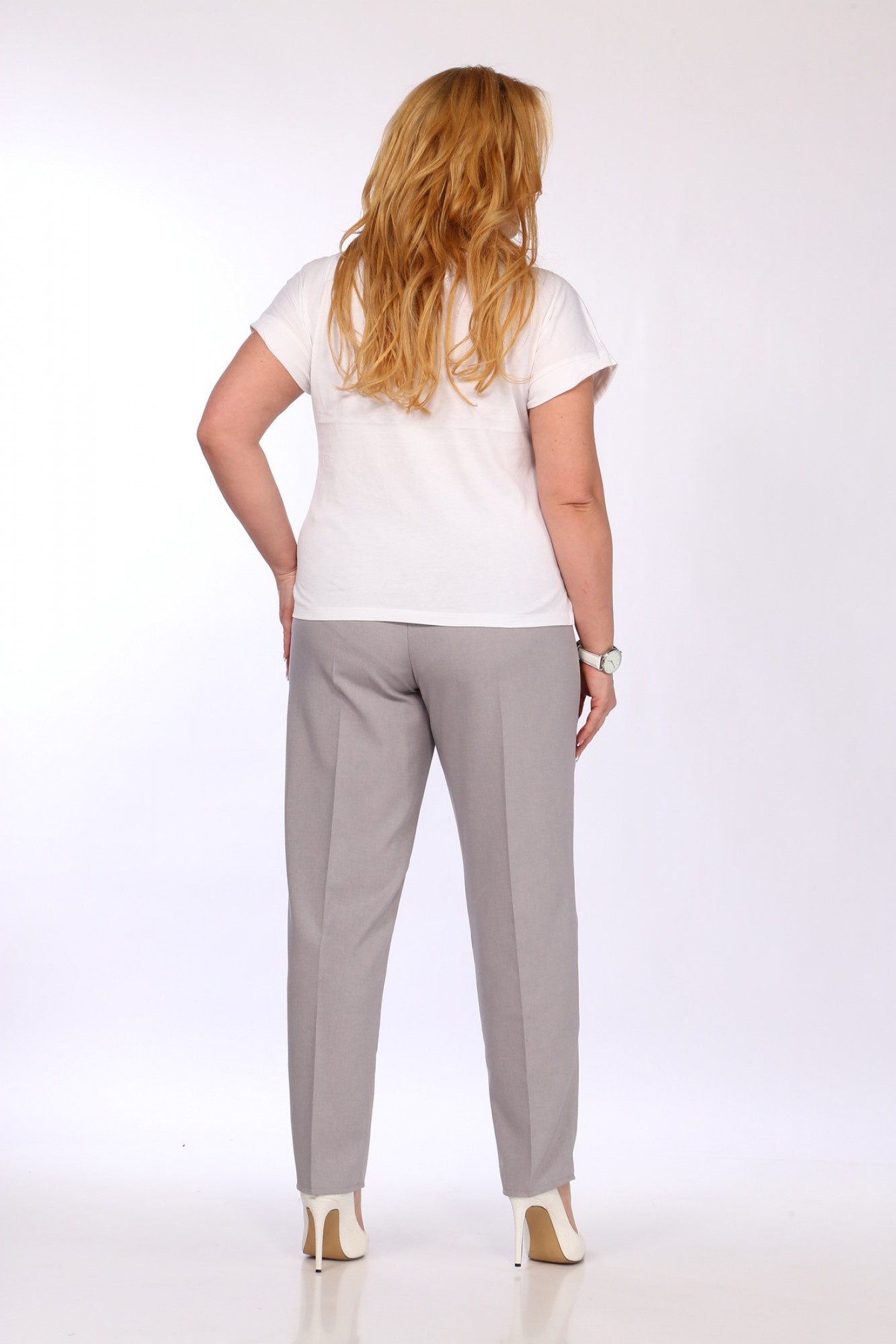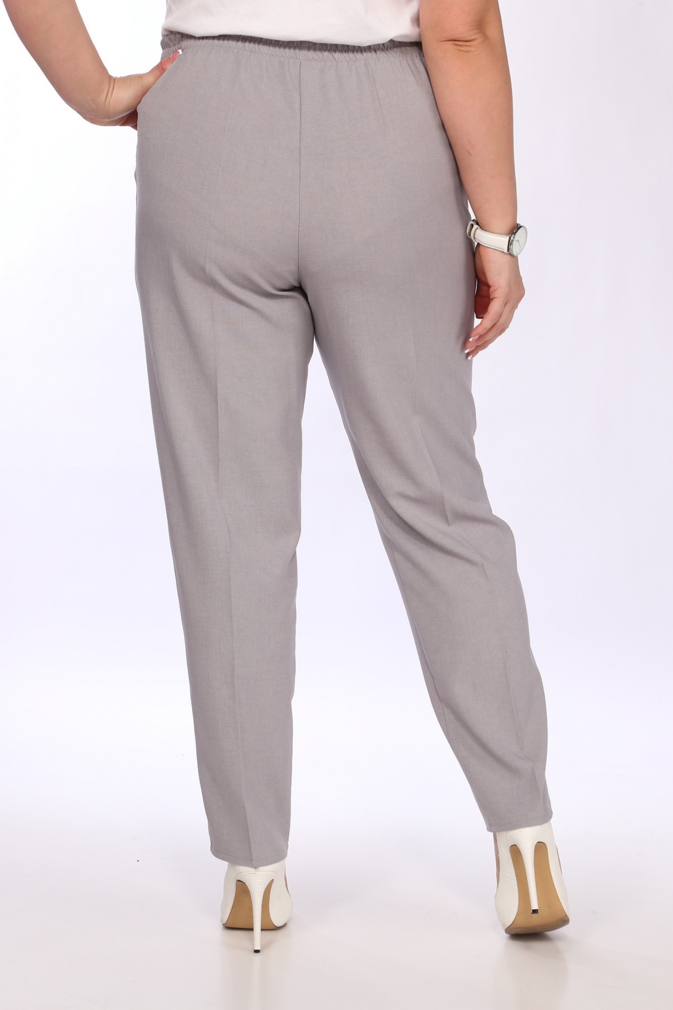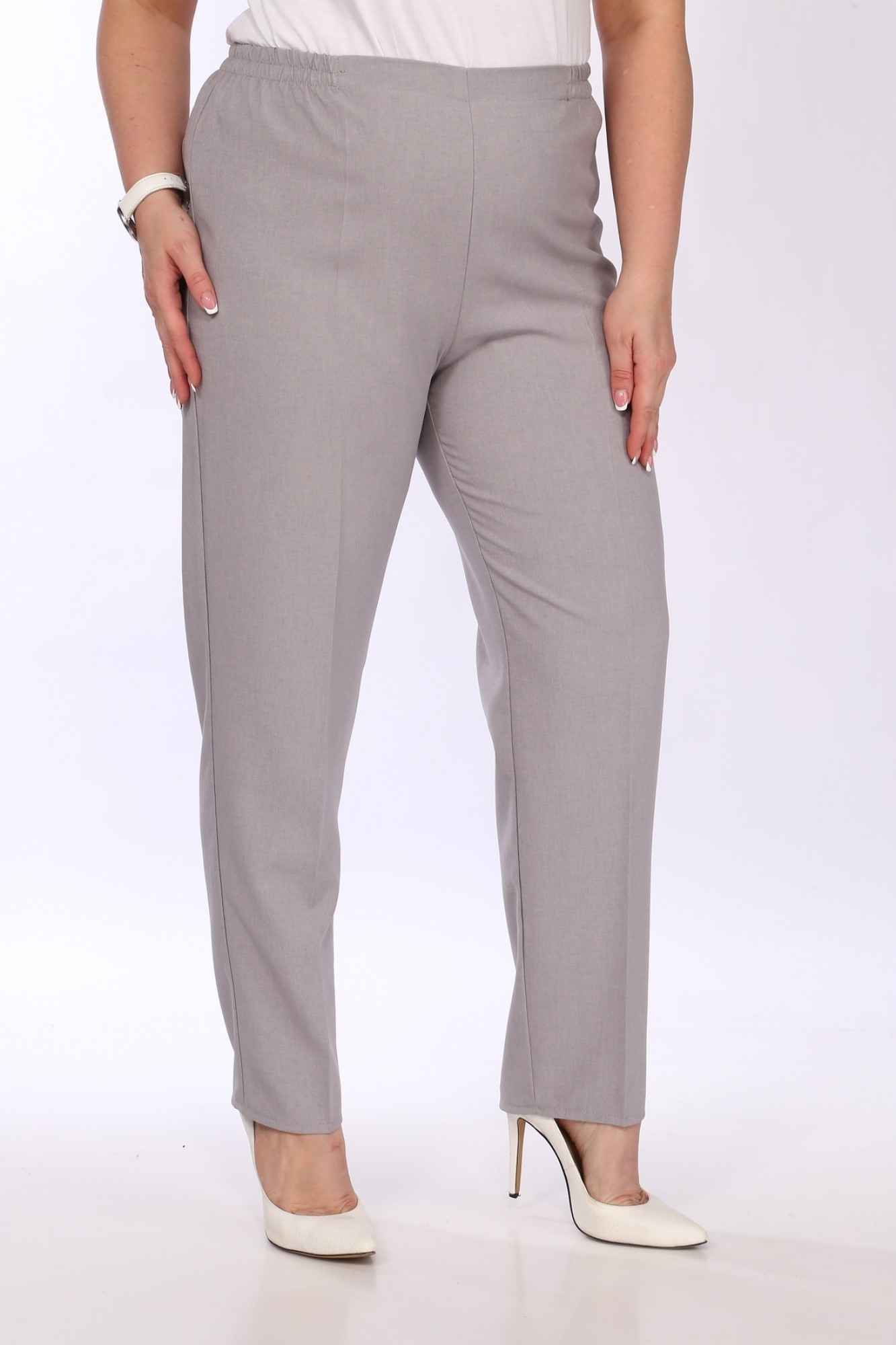 Брюки свободного кроя, прямые, со стрелками. Посадка высокая. Брюки на резинке, без застежки-молнии. Резинка в поясе имеется в боковых швах и полностью на спинке.