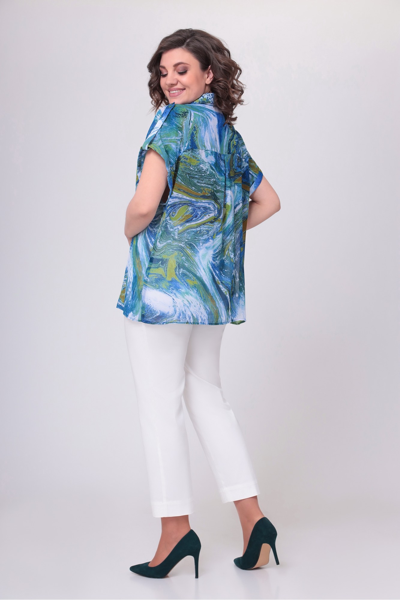 Брюки женские прямого силуэта. Выполнены из турецкого денима. Брюки - с притачным поясом и резинкой по спинке. По переду обработаны боковые карманы. Застёжка - на тесьму-молнию и пробивную пуговицу. По задним половинкам брюк расположены накладные карманы. Длину брюк можно регулировать подворотом. Длина брюк по боковому шву 95см (+/-1см)