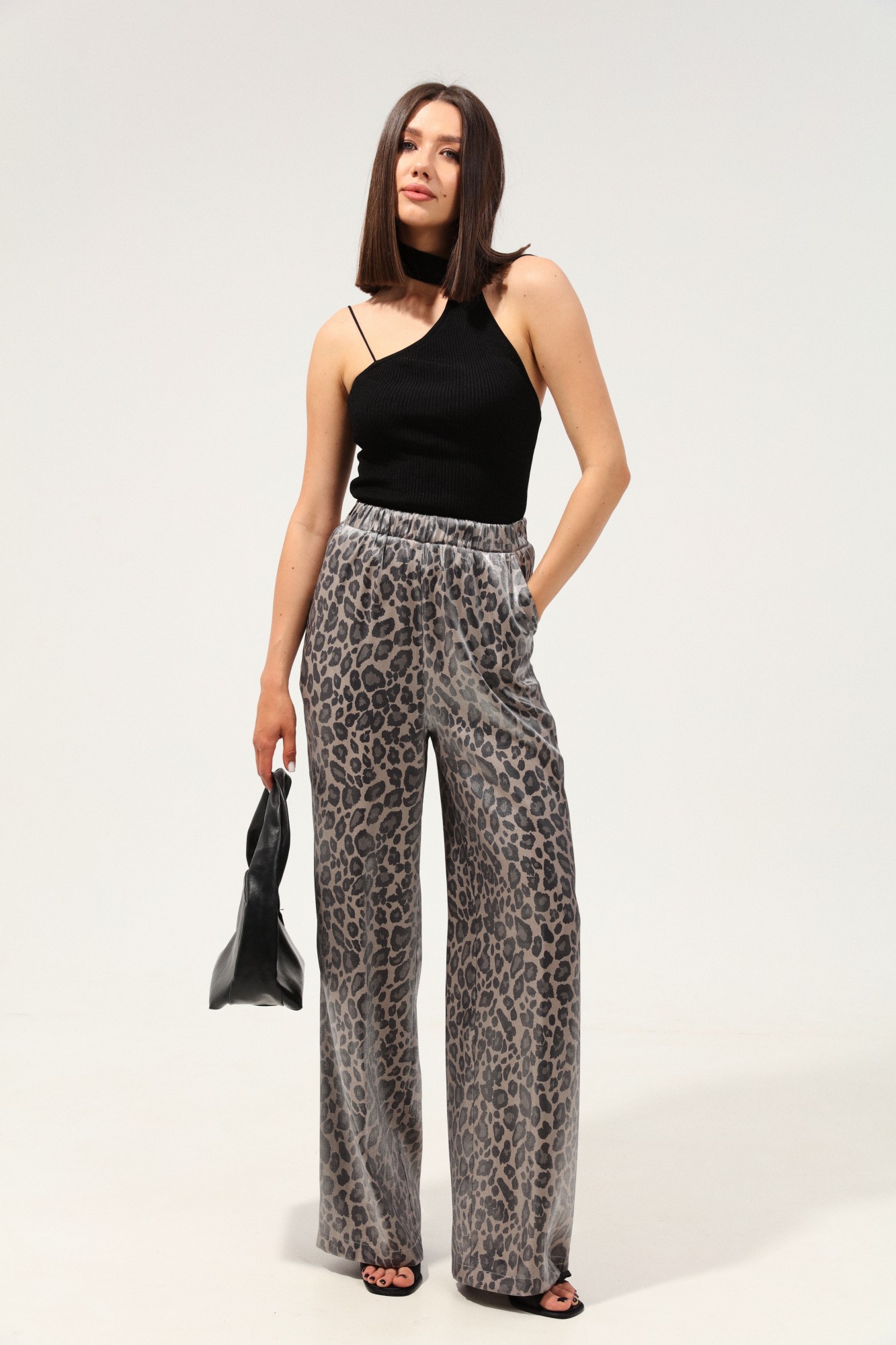 Брюки прямого силуэта с карманами и резинкой по талии. Вход в карман фигурный, наклонный к боковому шву.